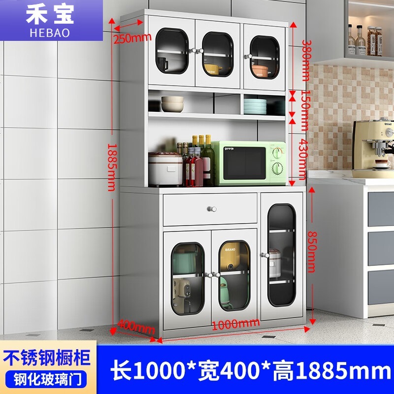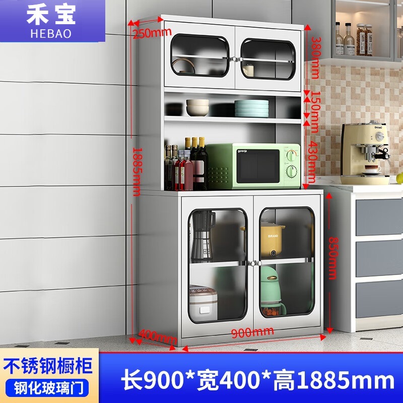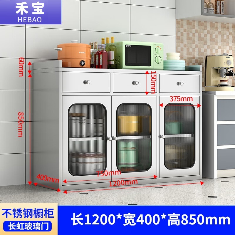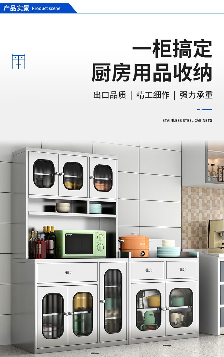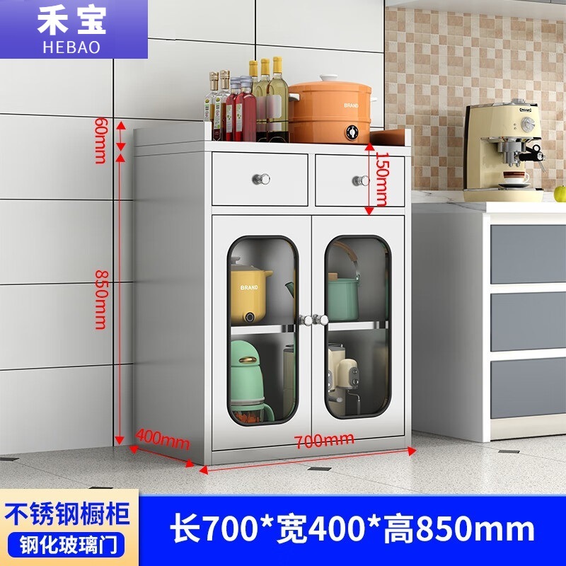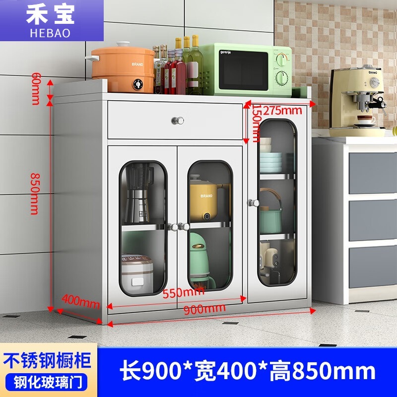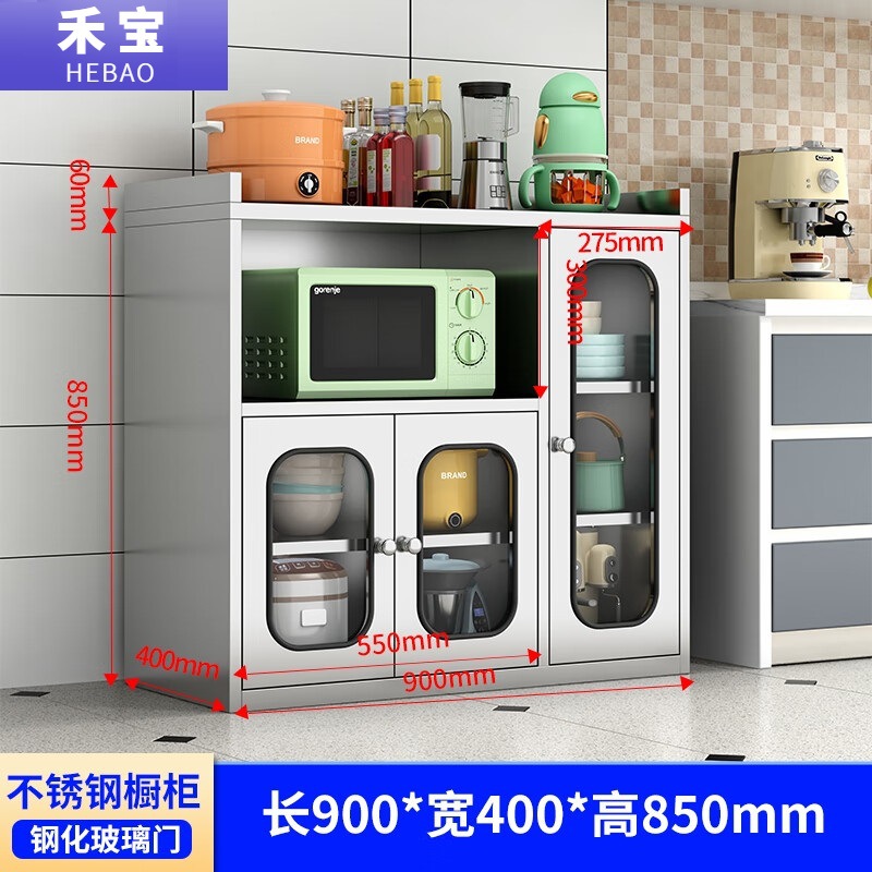 식당 탈의실 주방 보관 다층 식기 냄비 캐비닛 강화 유리 도어 스테인레스 스틸 사이드 보드 캐비닛스토어 가기