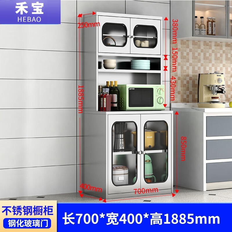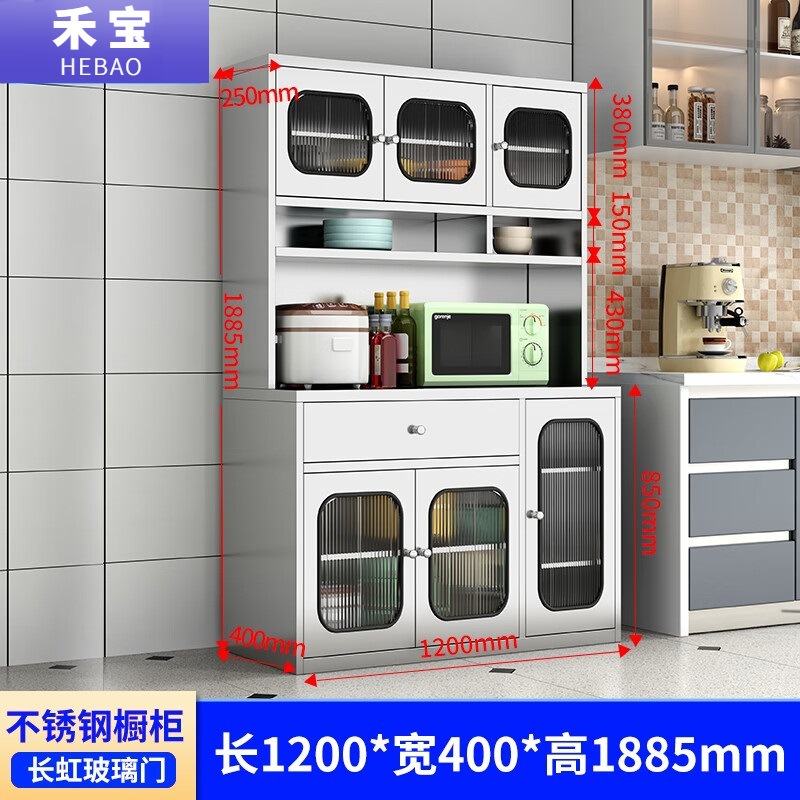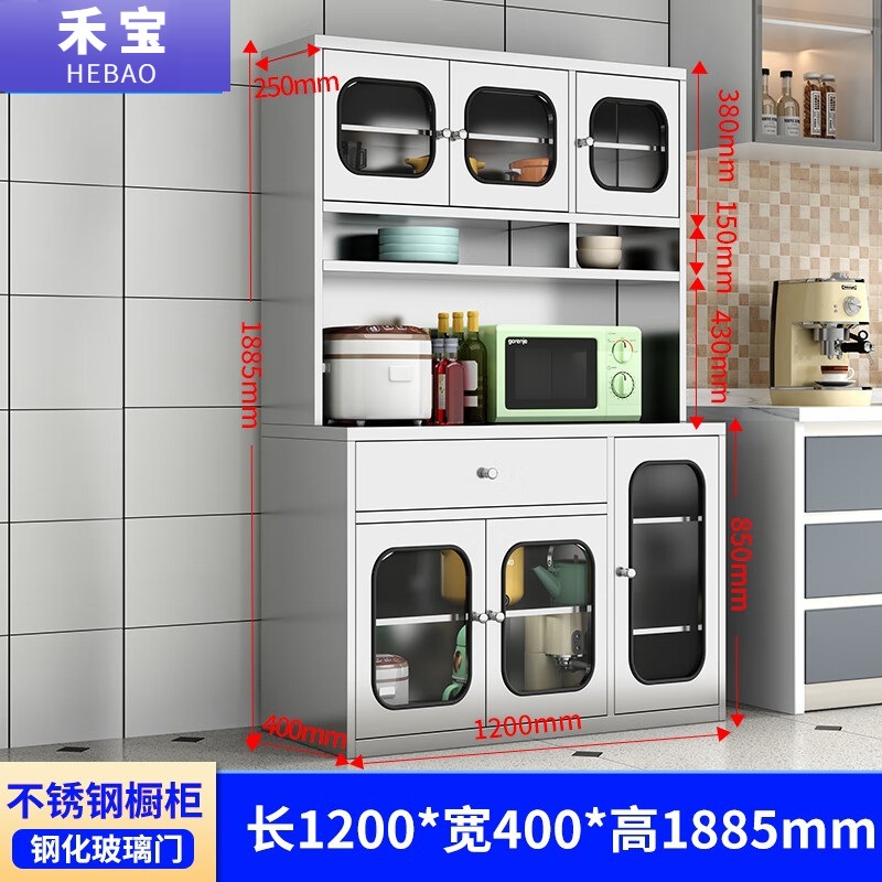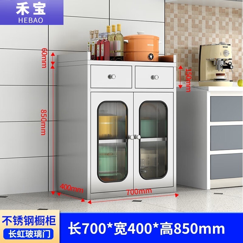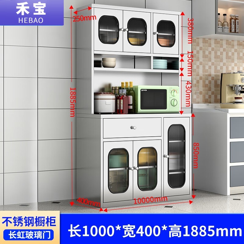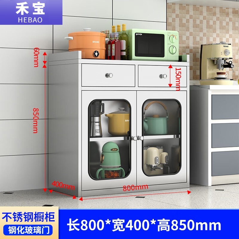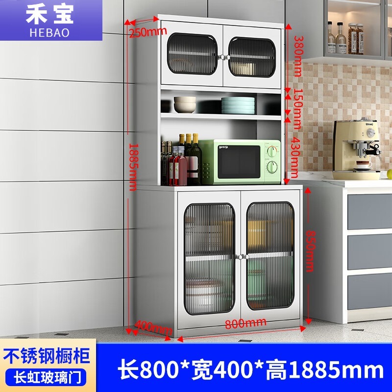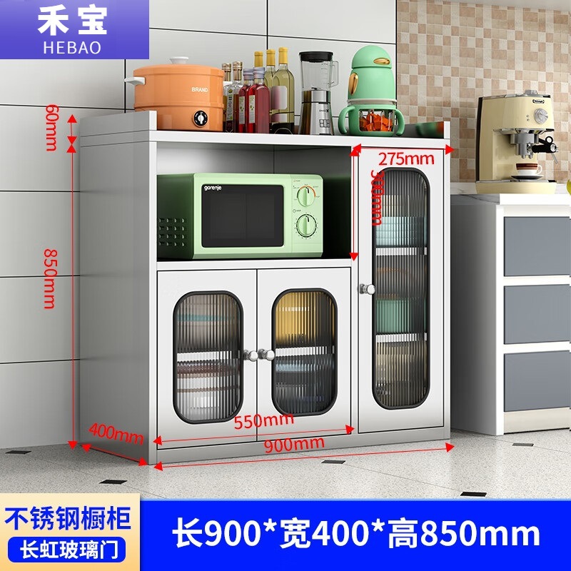 식당 탈의실 주방 보관 다층 식기 냄비 캐비닛 강화 유리 도어 스테인레스 스틸 사이드 보드 캐비닛스토어 가기