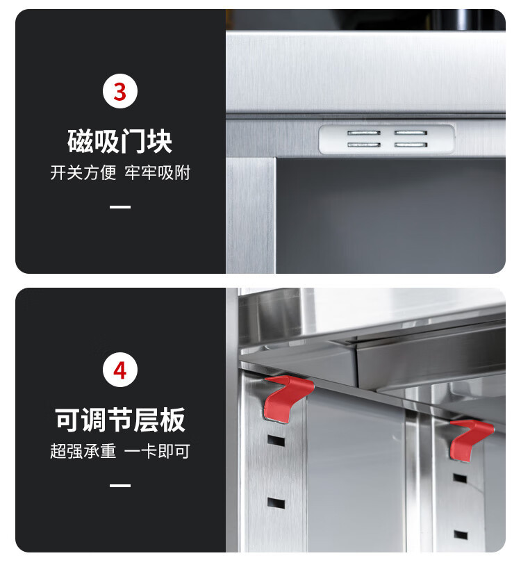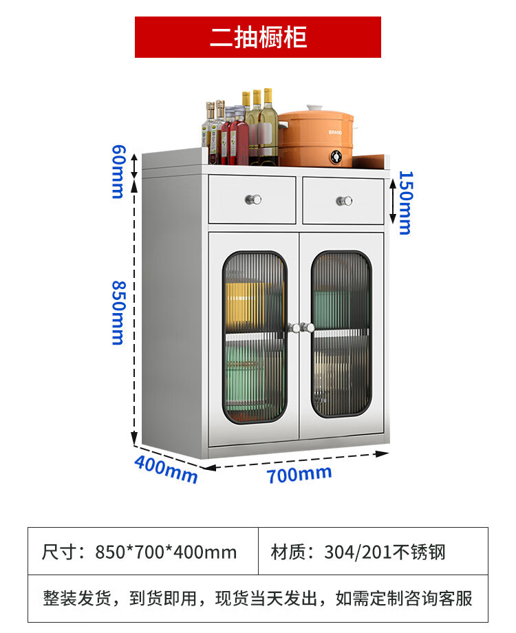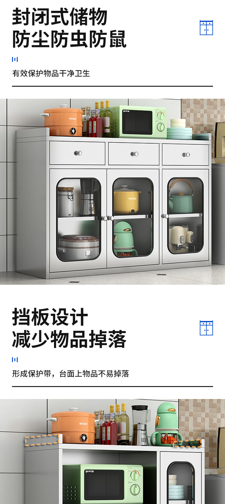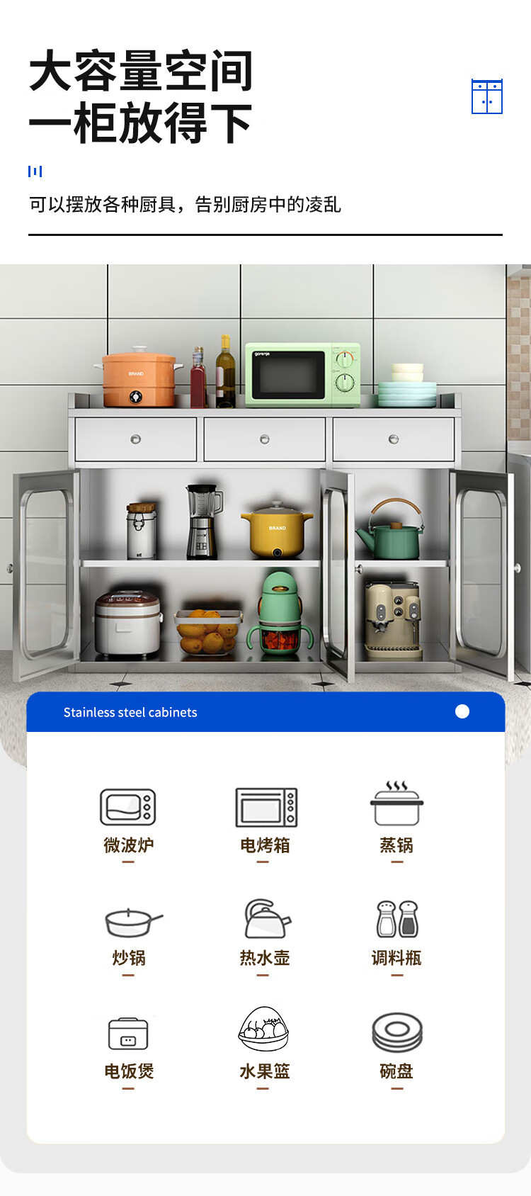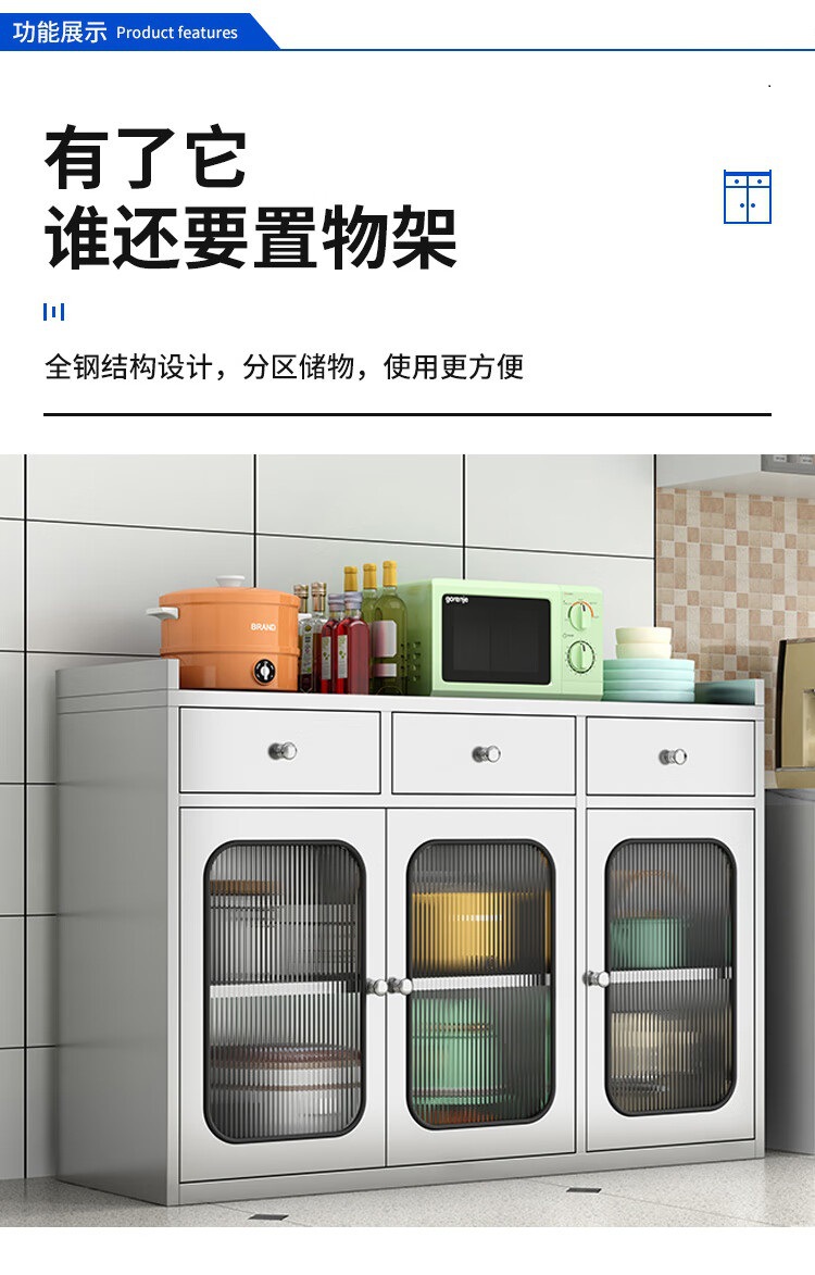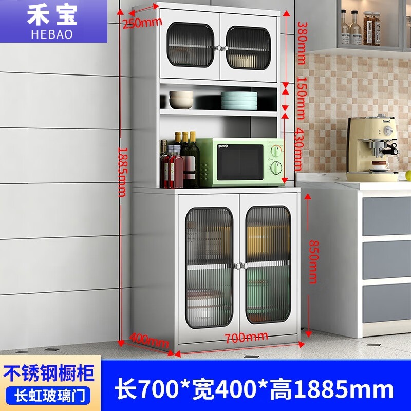 식당 탈의실 주방 보관 다층 식기 냄비 캐비닛 강화 유리 도어 스테인레스 스틸 사이드 보드 캐비닛스토어 가기