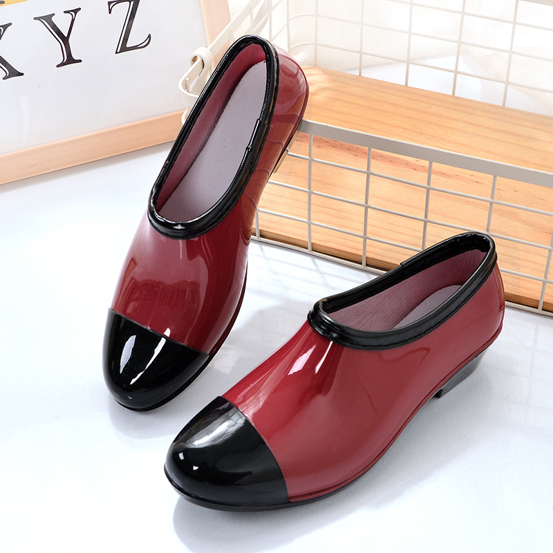 봄과 여름 장화 여성의 세련된 로우 탑 워터 슈즈 로우 컷 짧은 장화 신발 고무 미끄럼 방지 워터 부츠 게으른 오버 슈즈