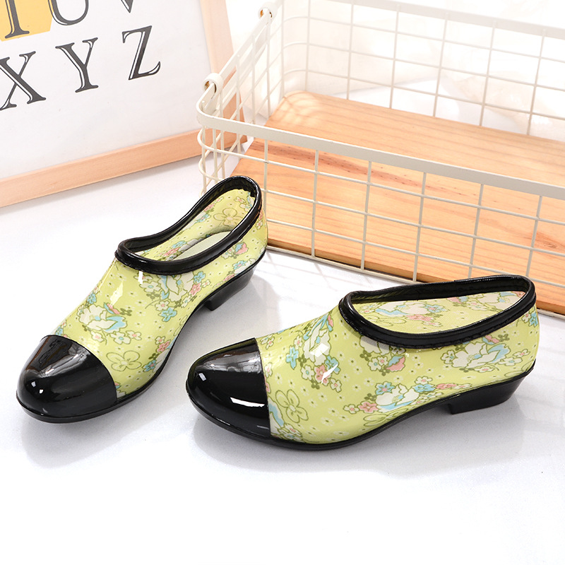 봄과 여름 장화 여성의 세련된 로우 탑 워터 슈즈 로우 컷 짧은 장화 신발 고무 미끄럼 방지 워터 부츠 게으른 오버 슈즈스토어 가기