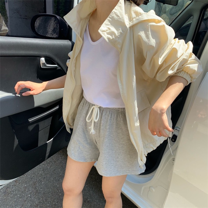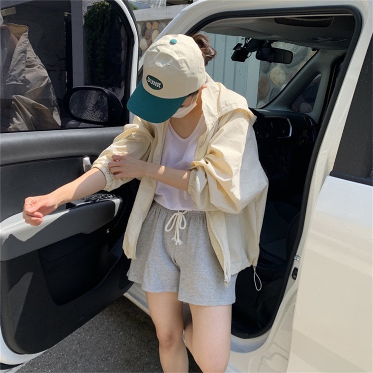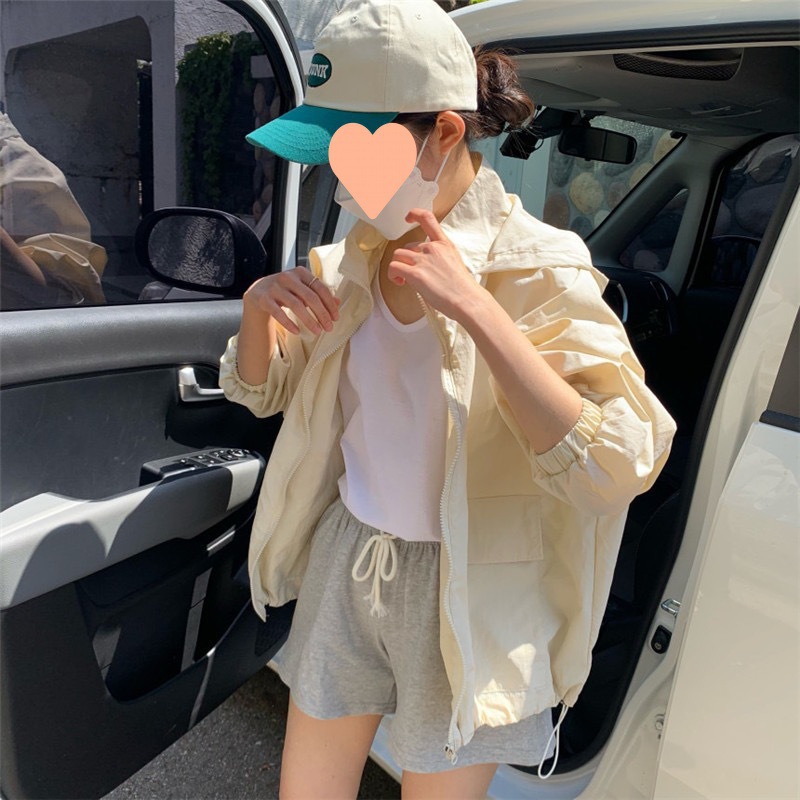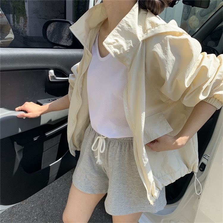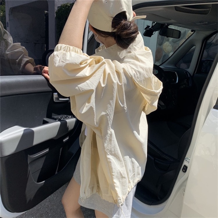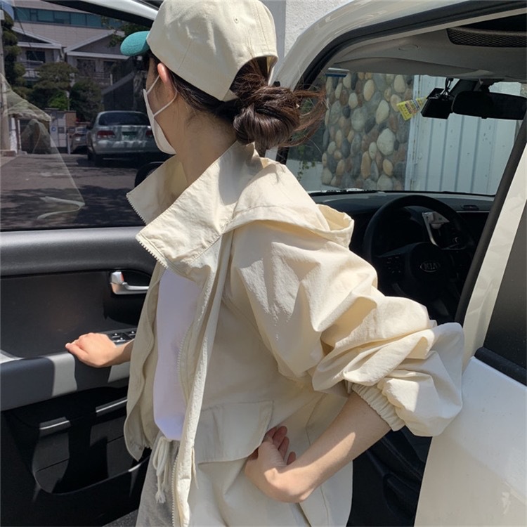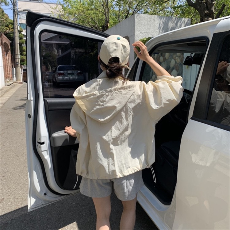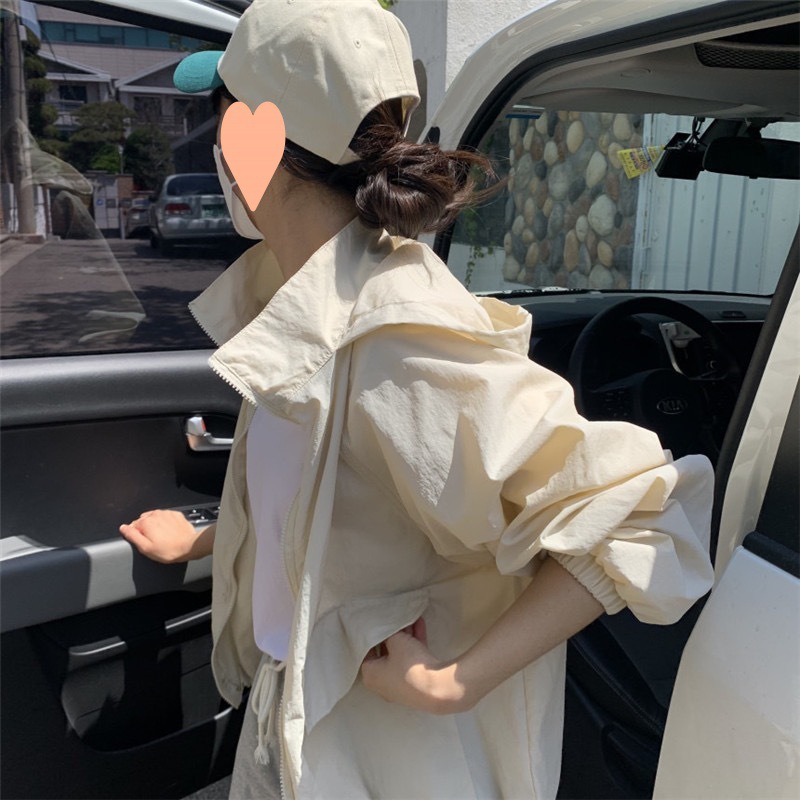 2025 신년 스타일 카라 후드 캐주얼 자외선 차단 재킷 상의, 작은 사이즈 허리 조절끈 에어컨 재킷 여성용 얇은 모델스토어 가기