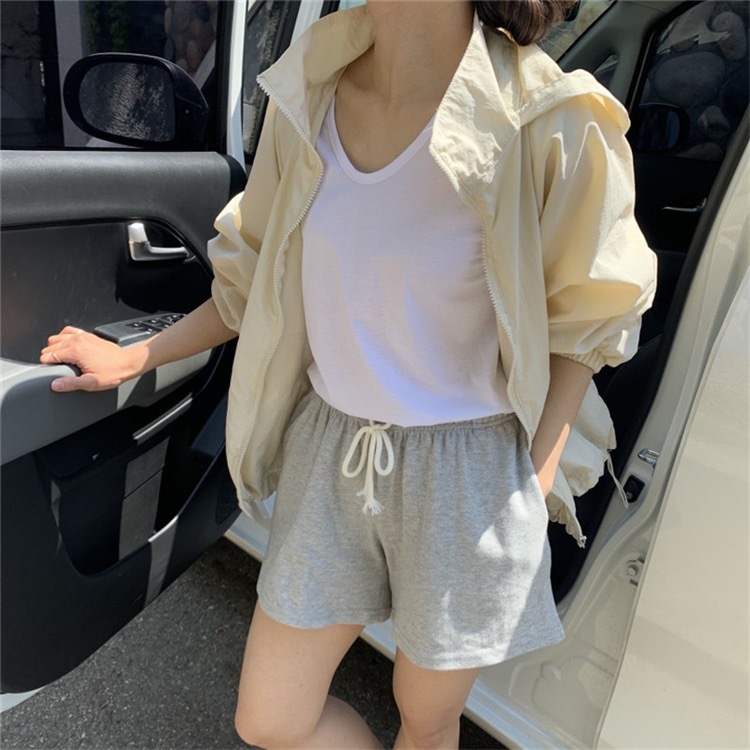 2025 신년 스타일 카라 후드 캐주얼 자외선 차단 재킷 상의, 작은 사이즈 허리 조절끈 에어컨 재킷 여성용 얇은 모델