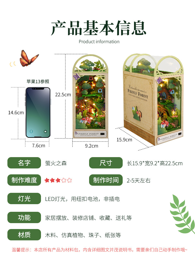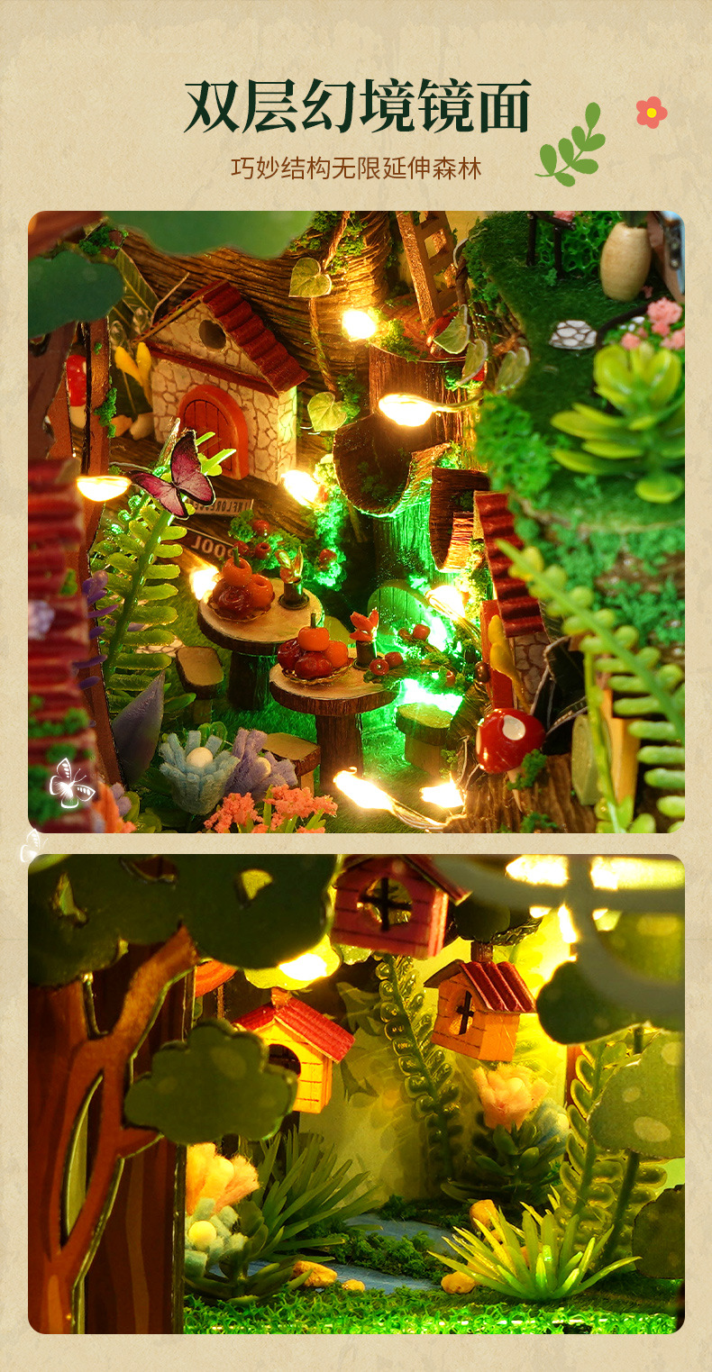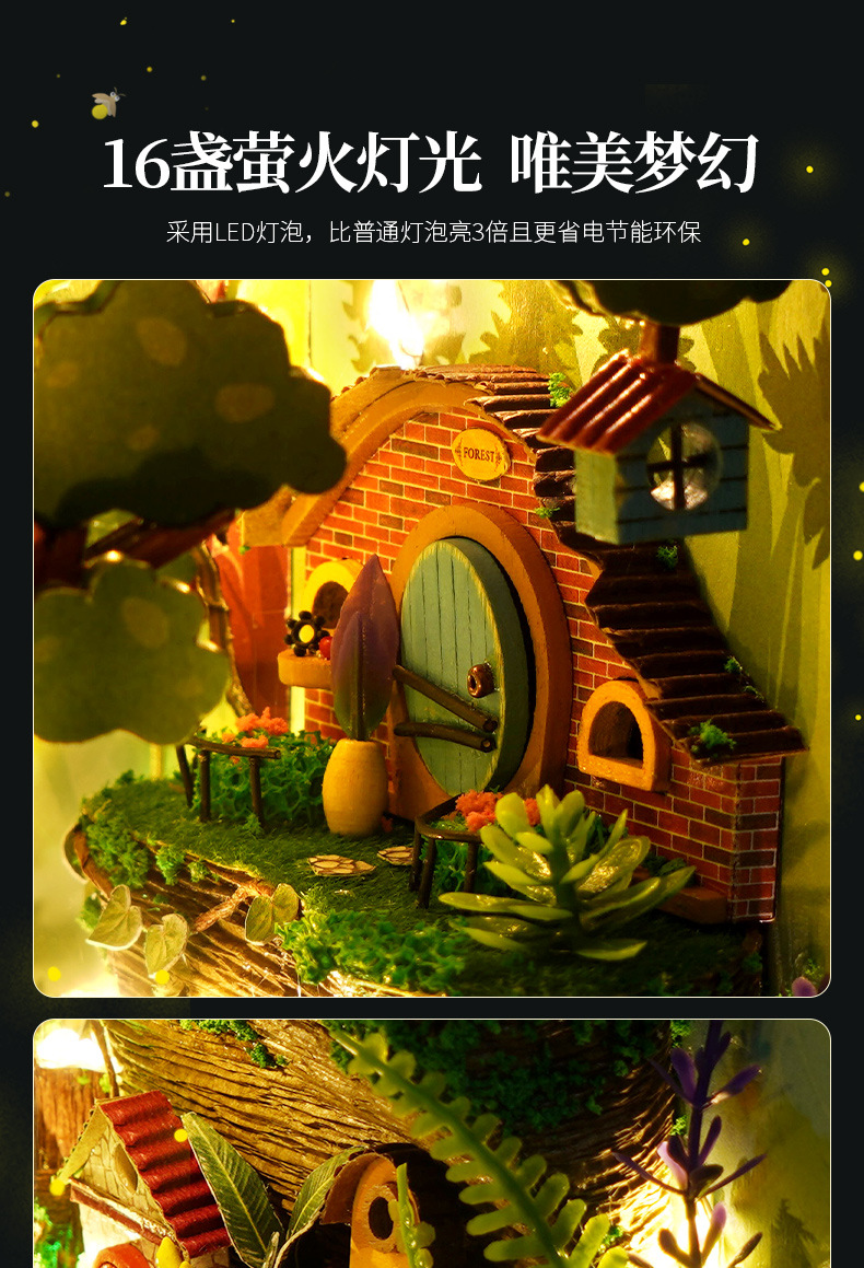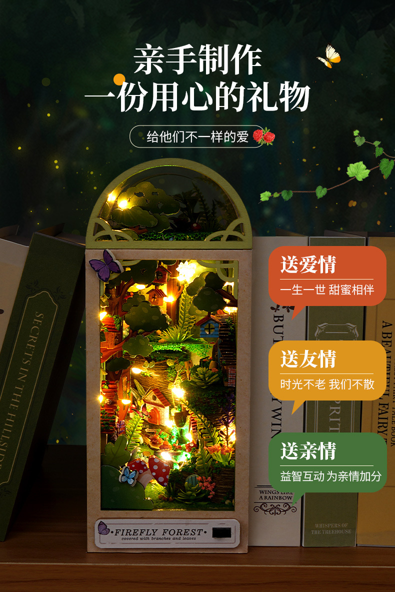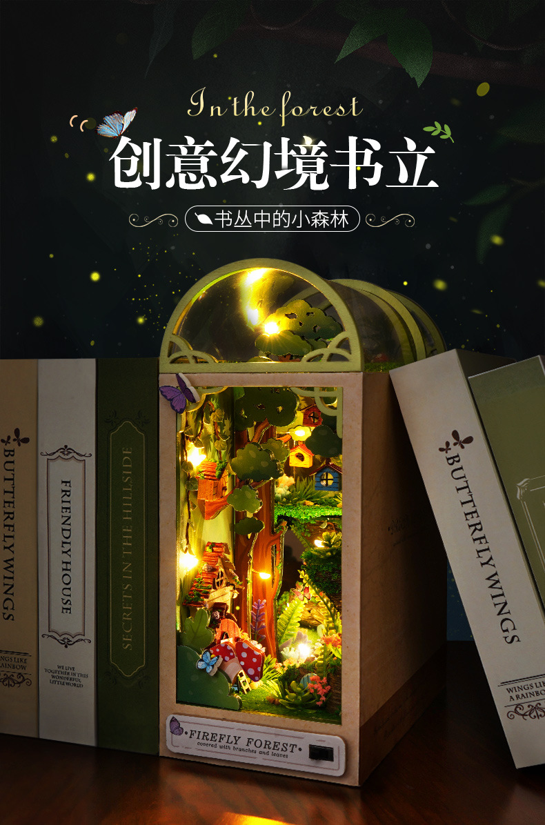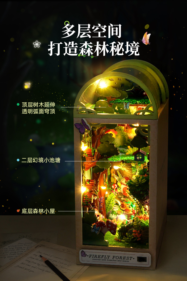 국경을 넘는 DIY 소형 주택 3D 조립 제품 도매 교육용 반딧불이 숲 북엔드 퍼즐 장난감 모델스토어 가기