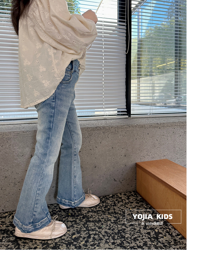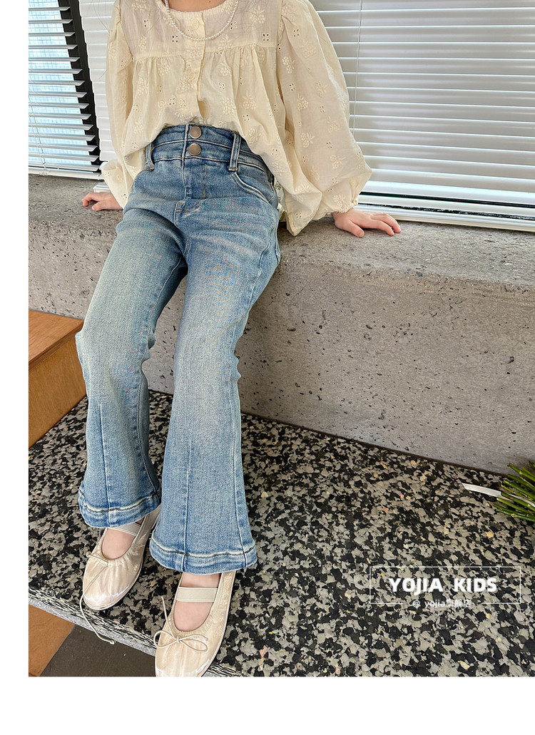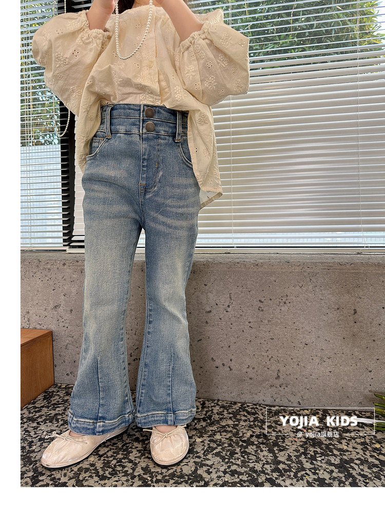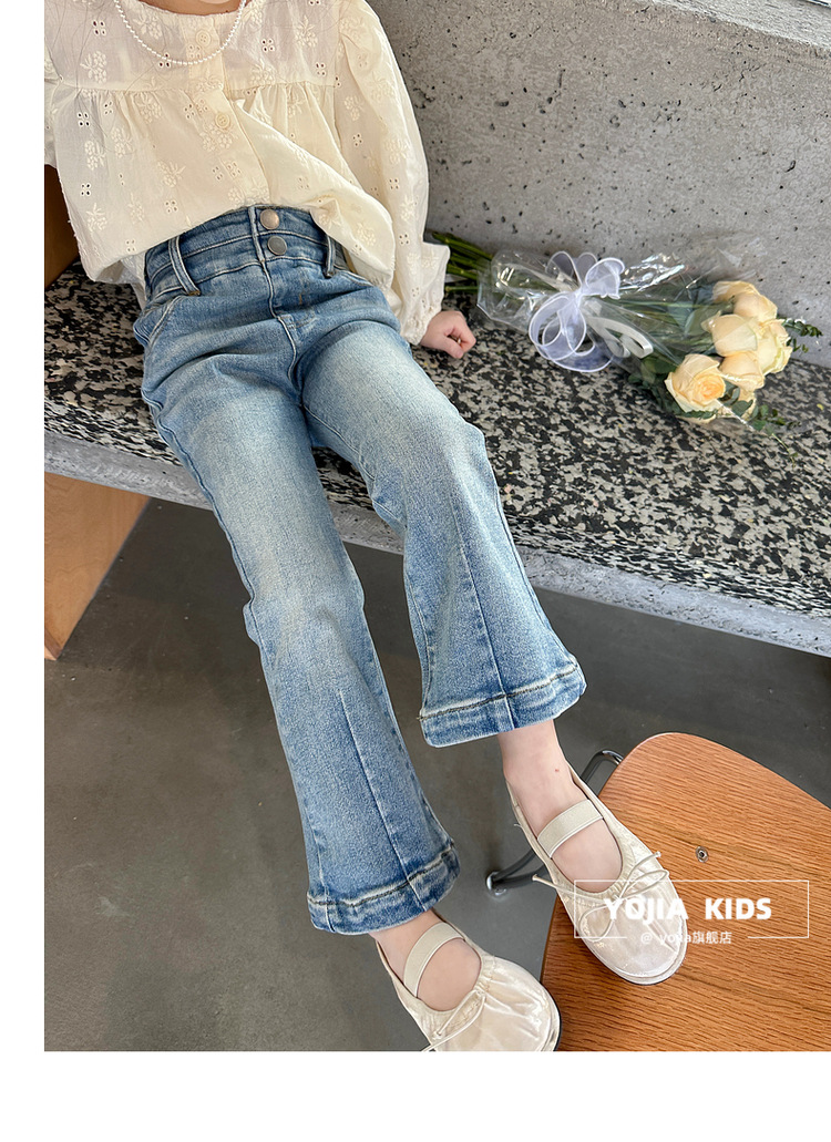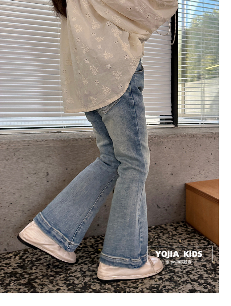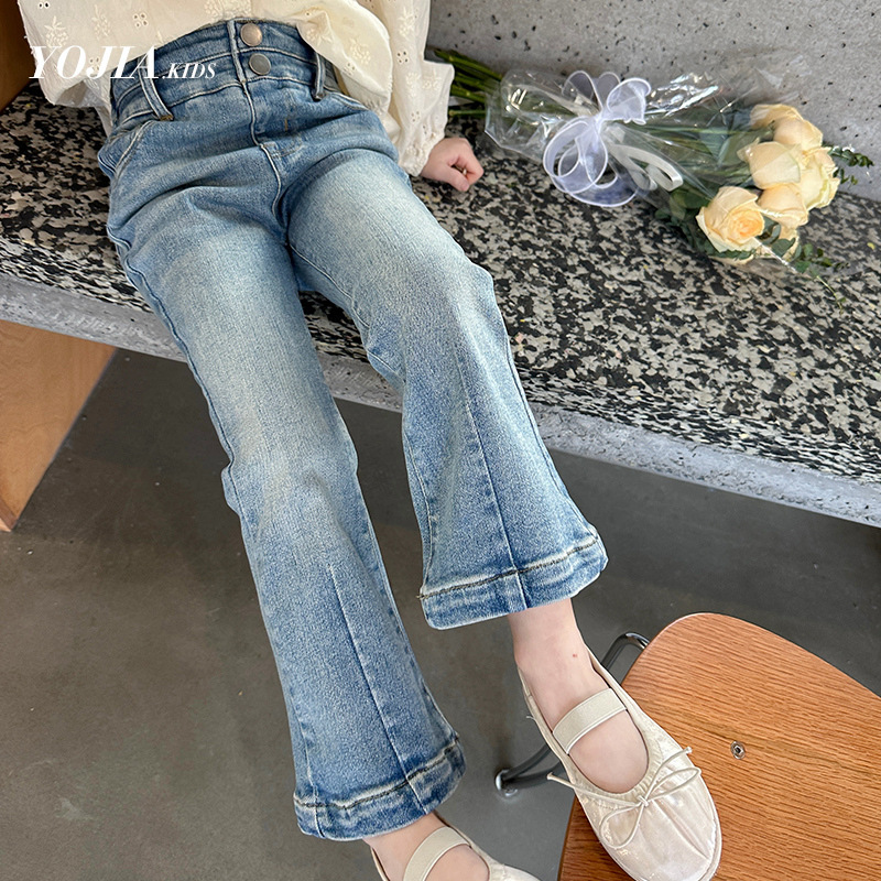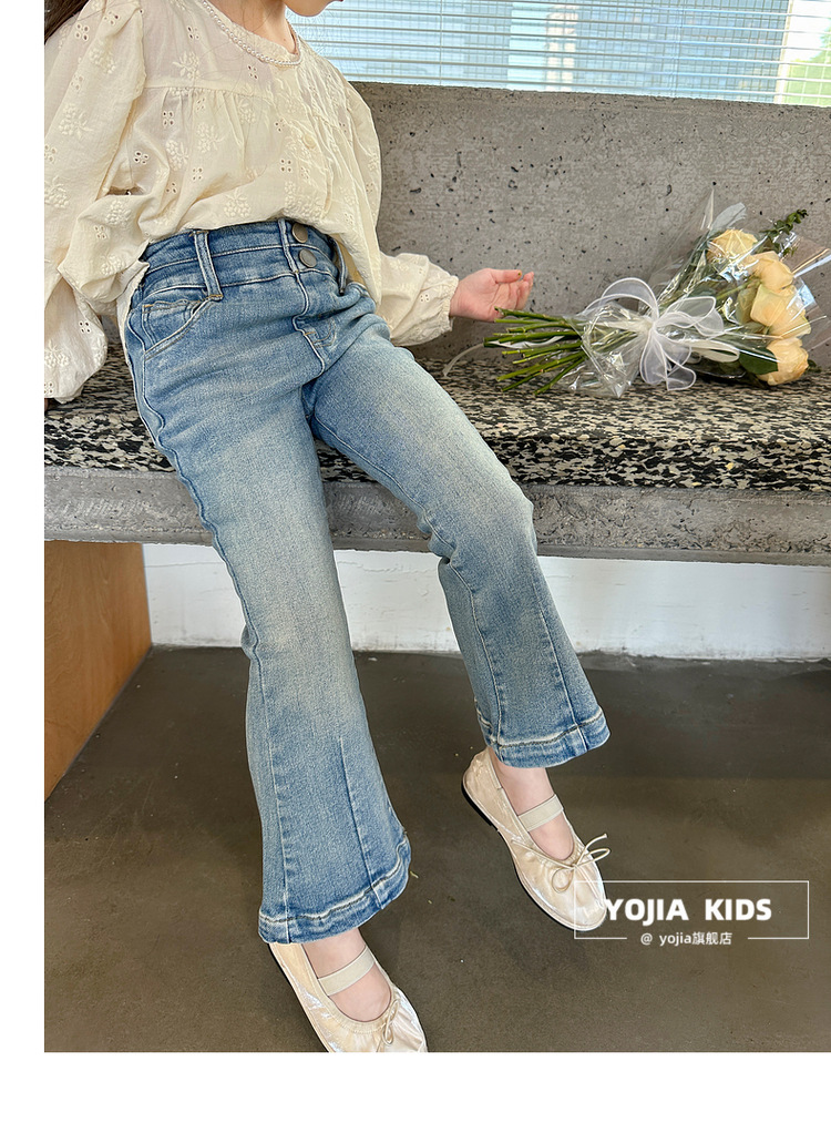 YOJIA 소녀 바지 봄과 가을 2024 새로운 한국 스타일 슬림 핏 걸스 벨 플레어 바지 Huzhou Zhili 아동복 봄스토어 가기