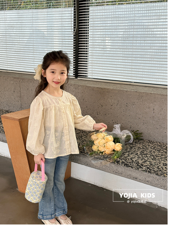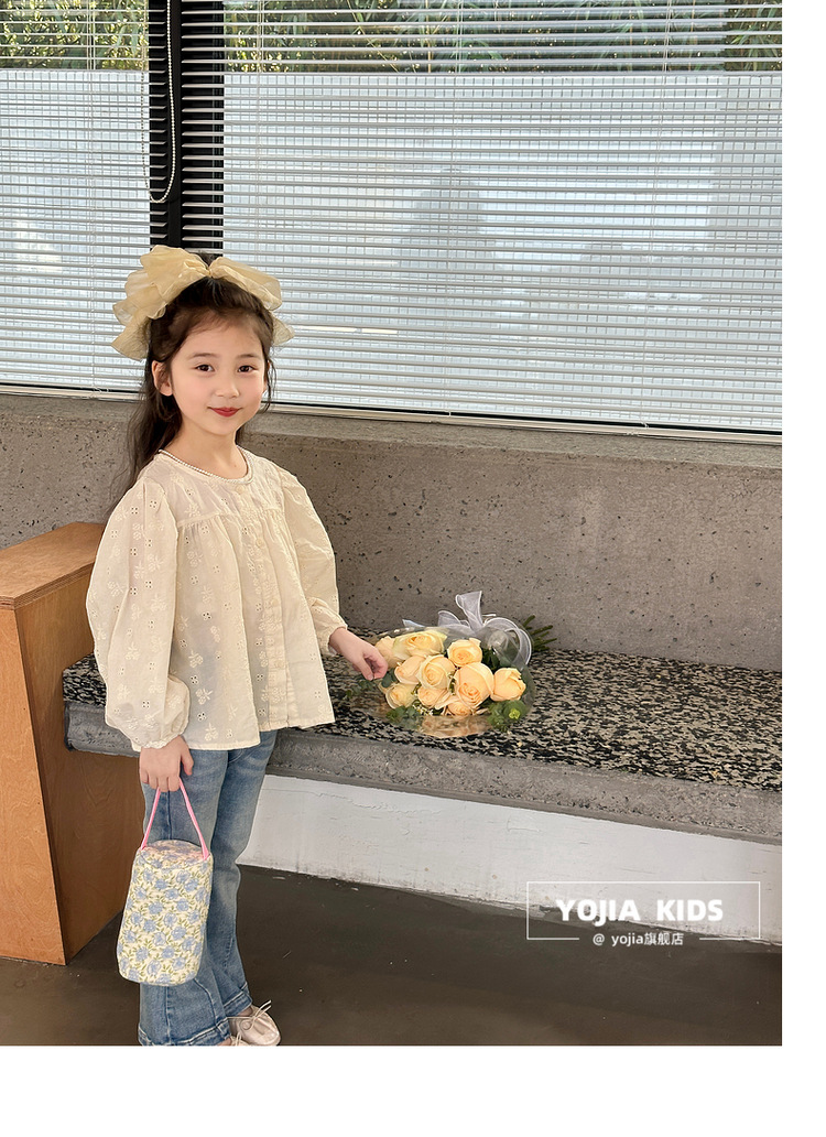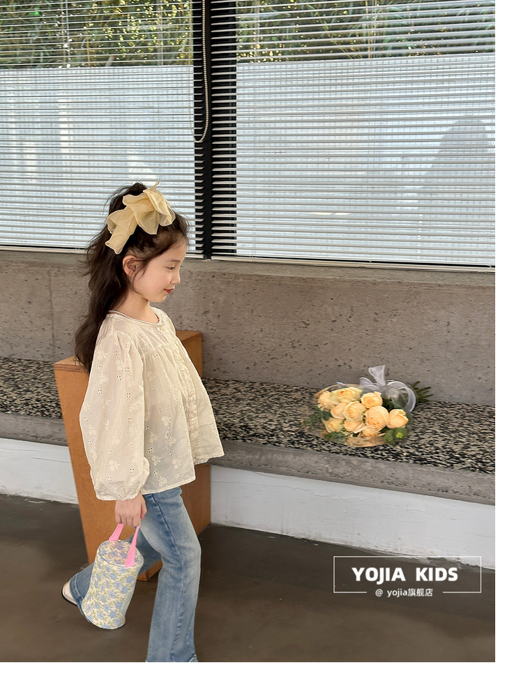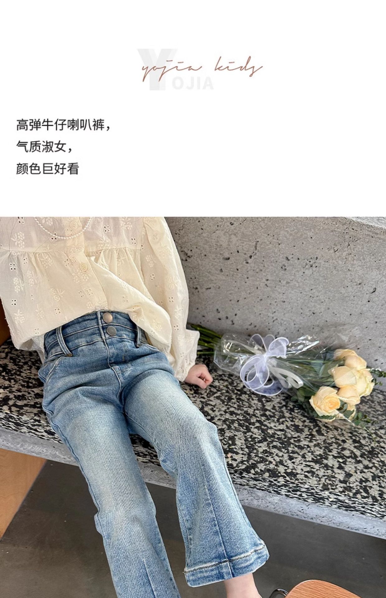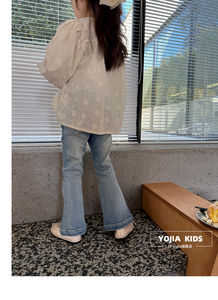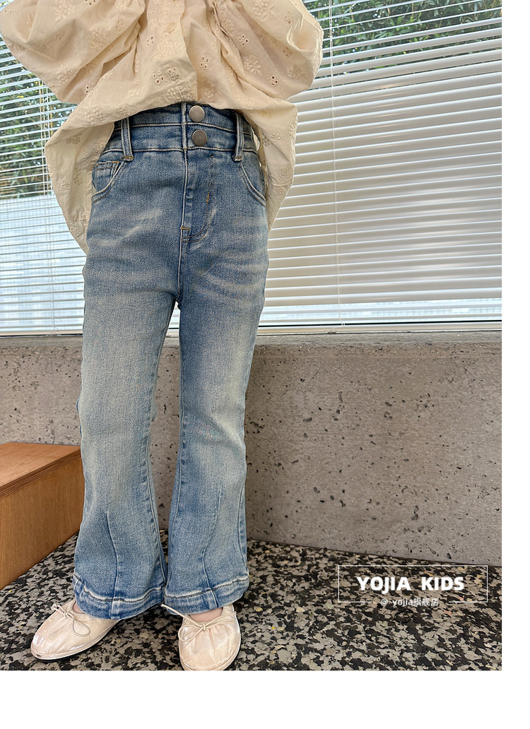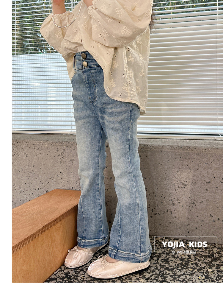 YOJIA 소녀 바지 봄과 가을 2024 새로운 한국 스타일 슬림 핏 걸스 벨 플레어 바지 Huzhou Zhili 아동복 봄스토어 가기
