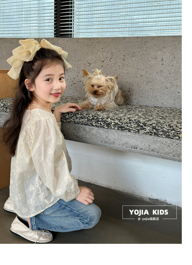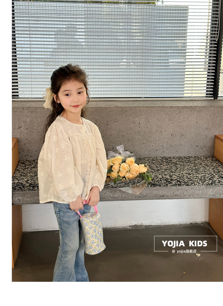YOJIA 소녀 바지 봄과 가을 2024 새로운 한국 스타일 슬림 핏 걸스 벨 플레어 바지 Huzhou Zhili 아동복 봄