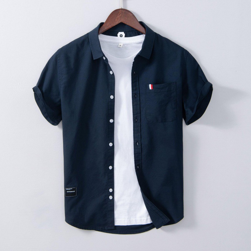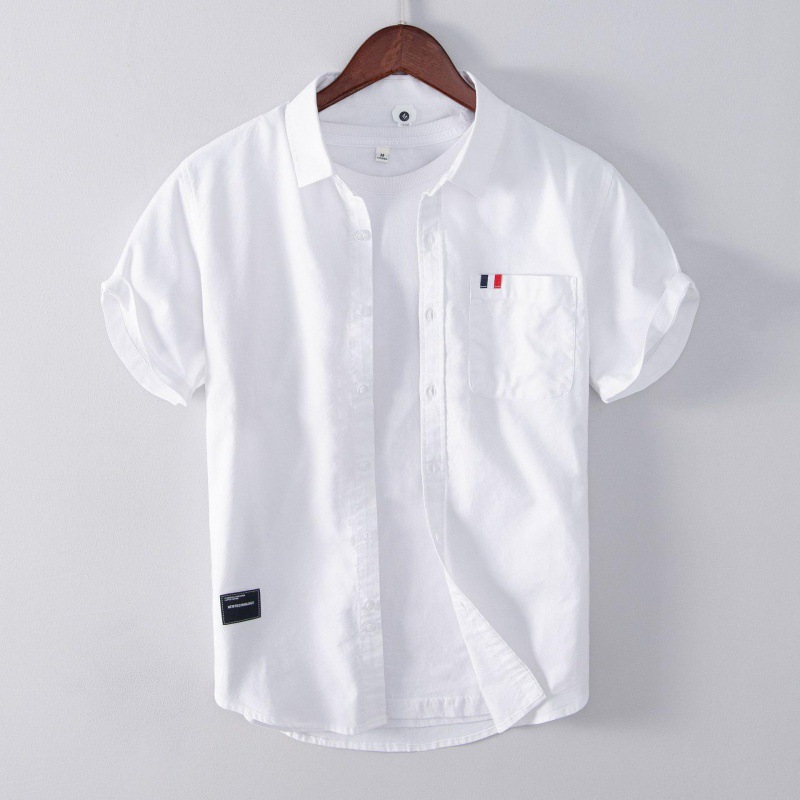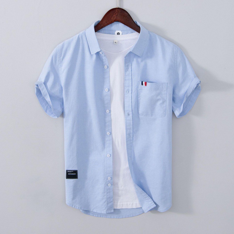1611 여름 캐주얼 반팔면 셔츠 남성용 올 매치 단색 셔츠 남성용 코트 원피스 배달스토어 가기