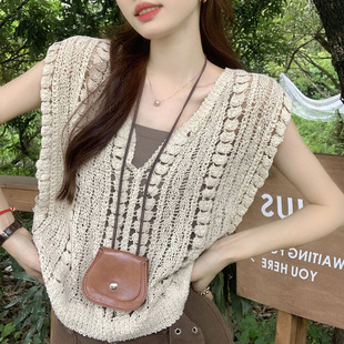 여름 다재다능한 반팔 외부 목도리 여성의 여름 얇은 코트 레이스 스웨터 속이 빈 양복 조끼 쇼트 탑스토어 가기