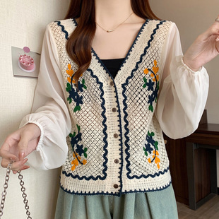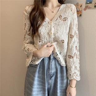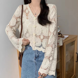 여름 다재다능한 반팔 외부 목도리 여성의 여름 얇은 코트 레이스 스웨터 속이 빈 양복 조끼 쇼트 탑