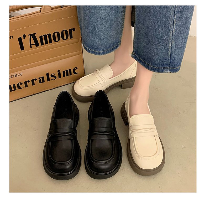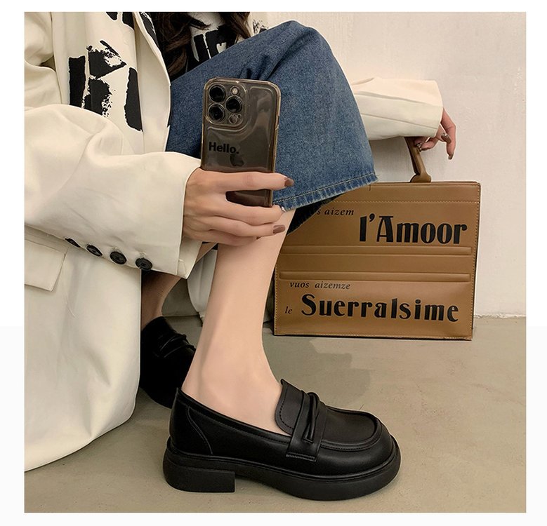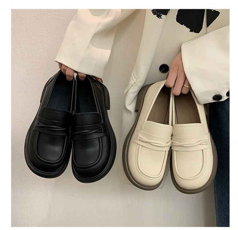 정품 가죽 신발 여성 영국 스타일 2024 새로운 봄 신발 프랑스 다재다능한 봄과 가을 싱글 레이어 신발 두꺼운 밑창 로퍼스토어 가기