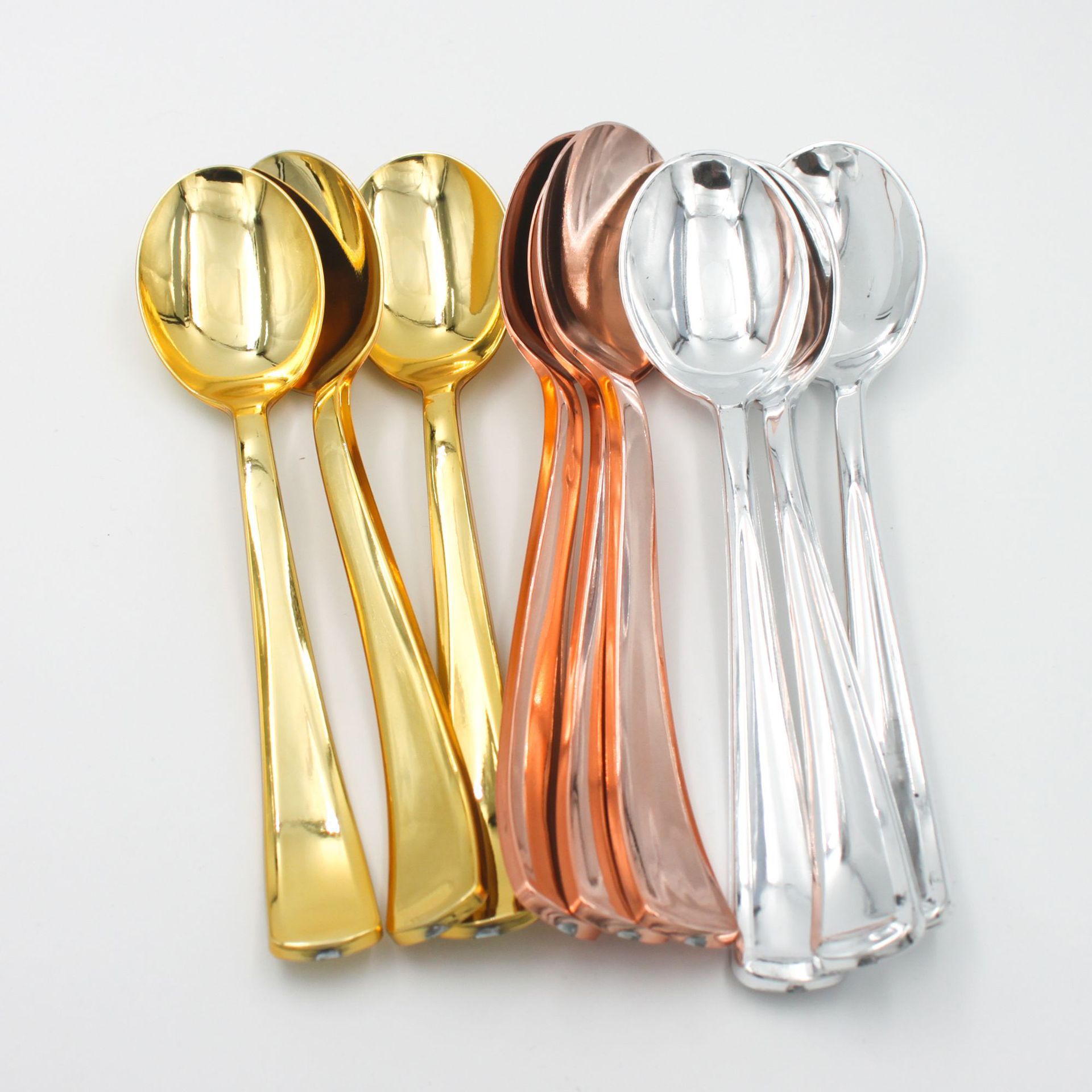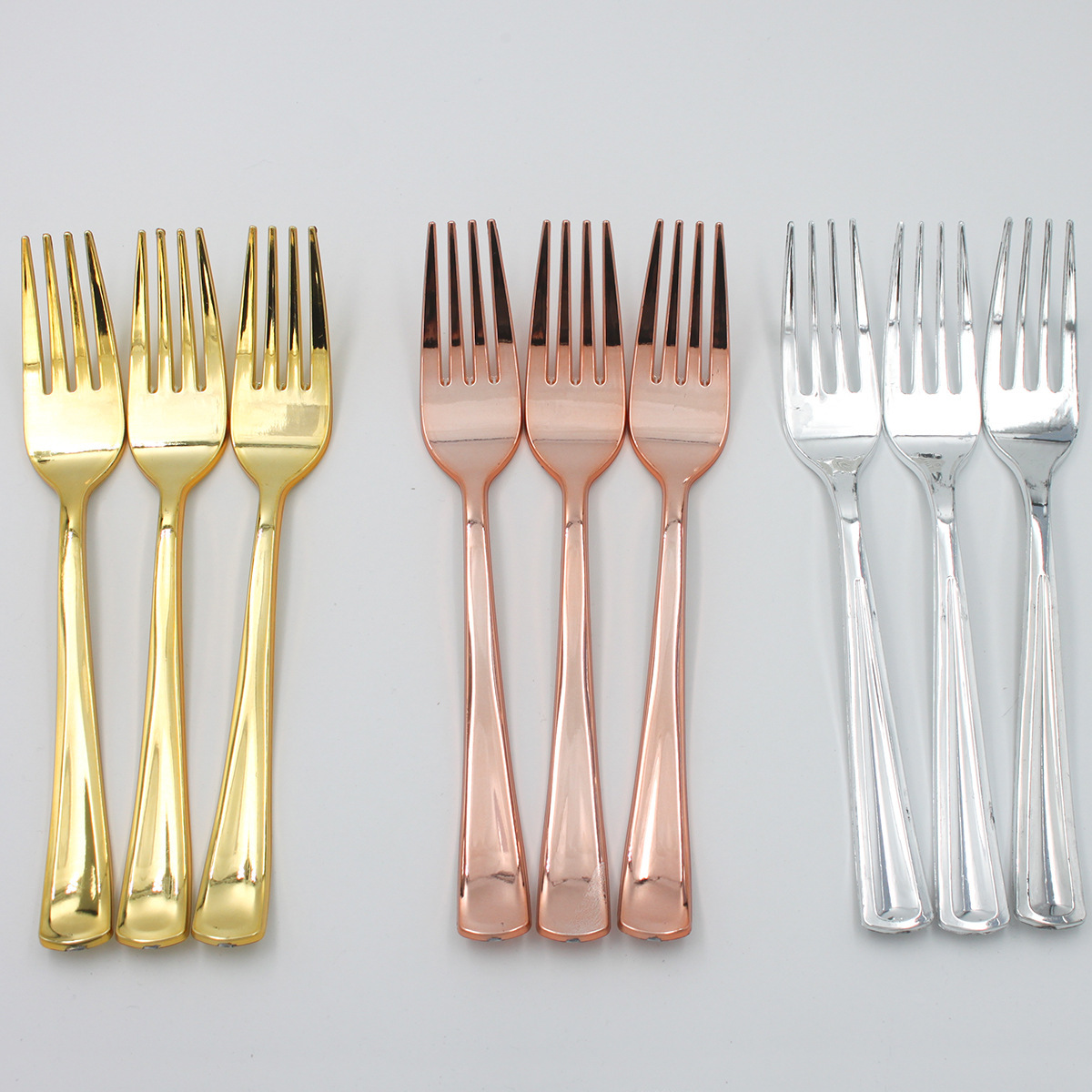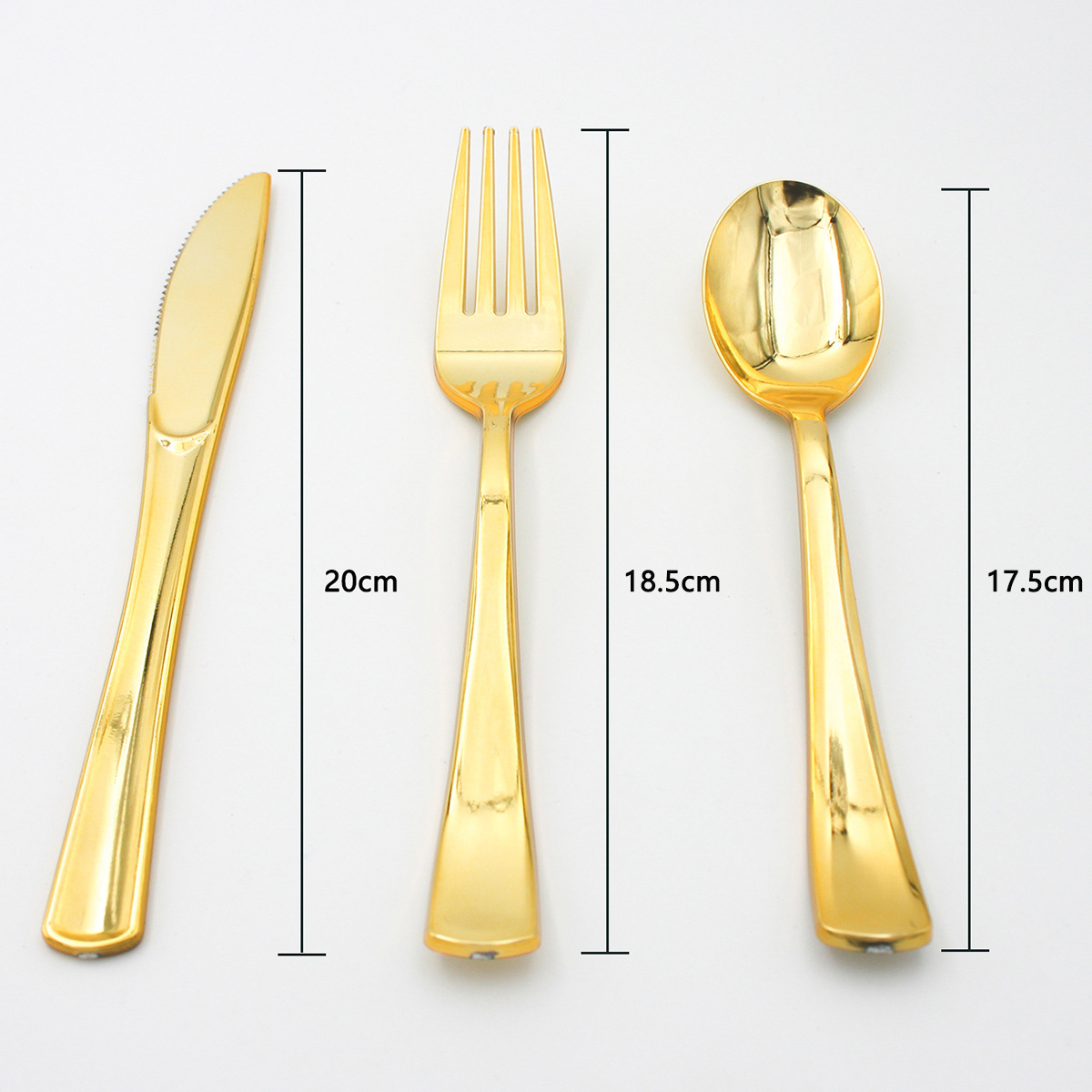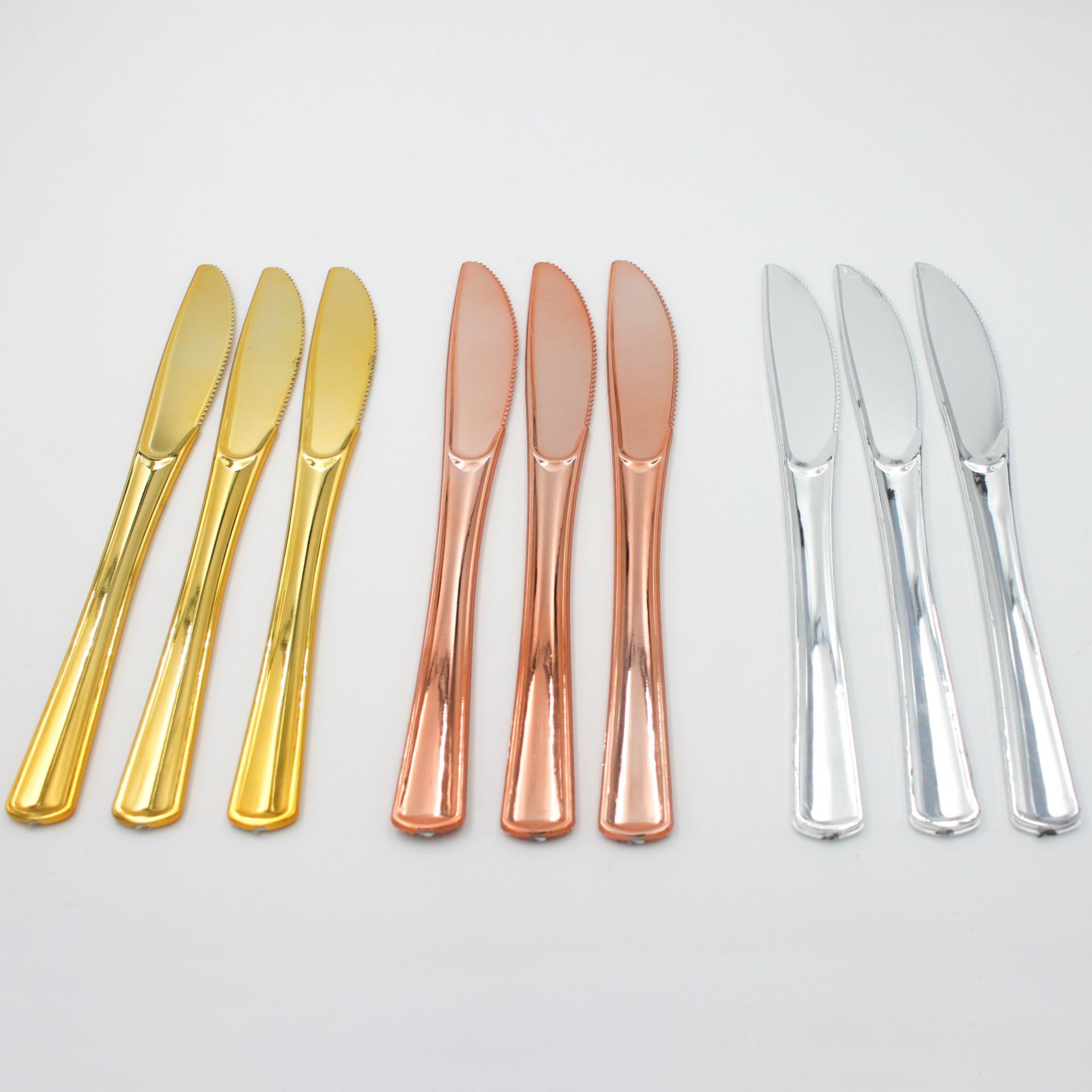 [재고] 일회용 하이 퀄리티 플라스틱 전기 도금 칼, 포크 및 스푼 골든 로즈 골드 실버