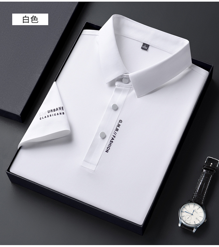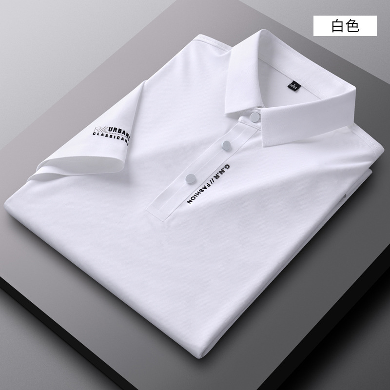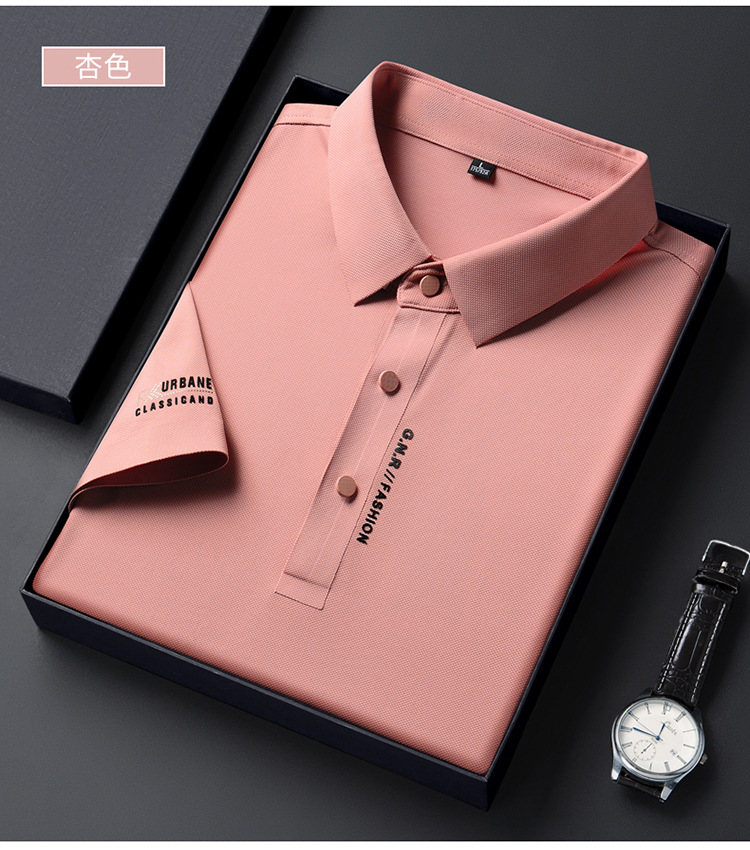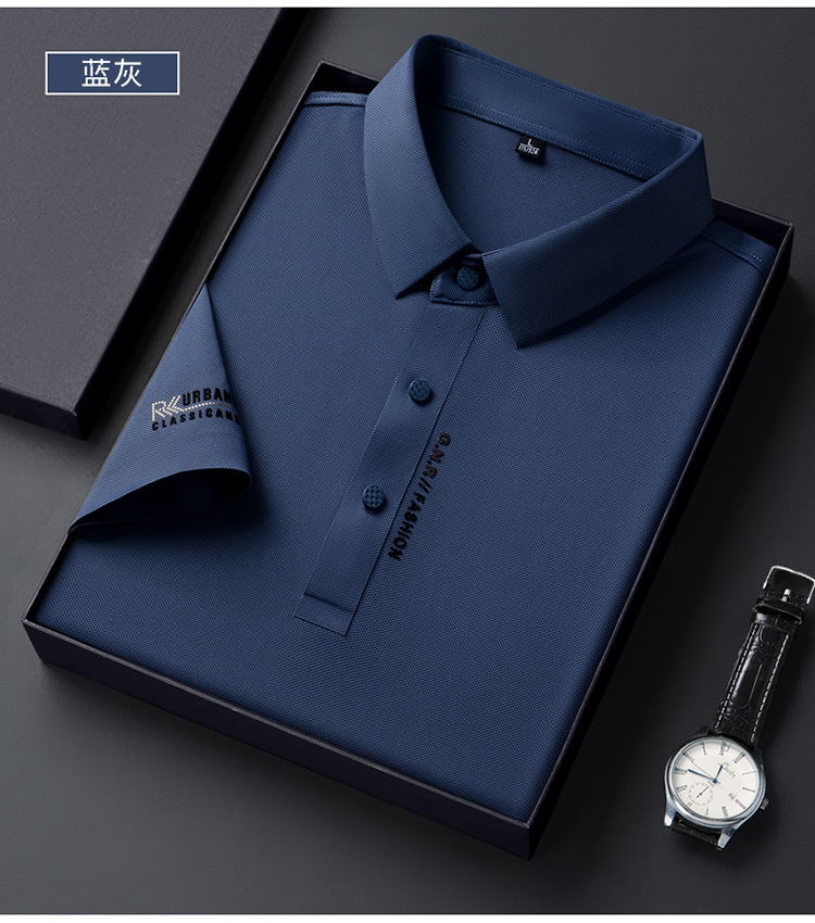 원활한 아이스 실크 고급 남성 폴로 셔츠 반팔 티셔츠 여름 비즈니스 옷깃 아빠는 여름 얇은 남성복을 입습니다.