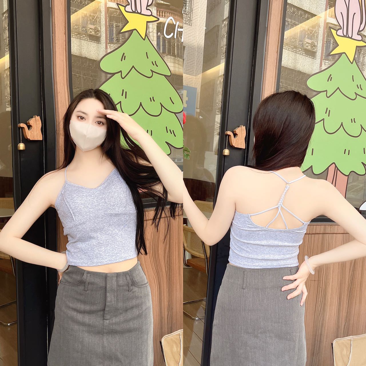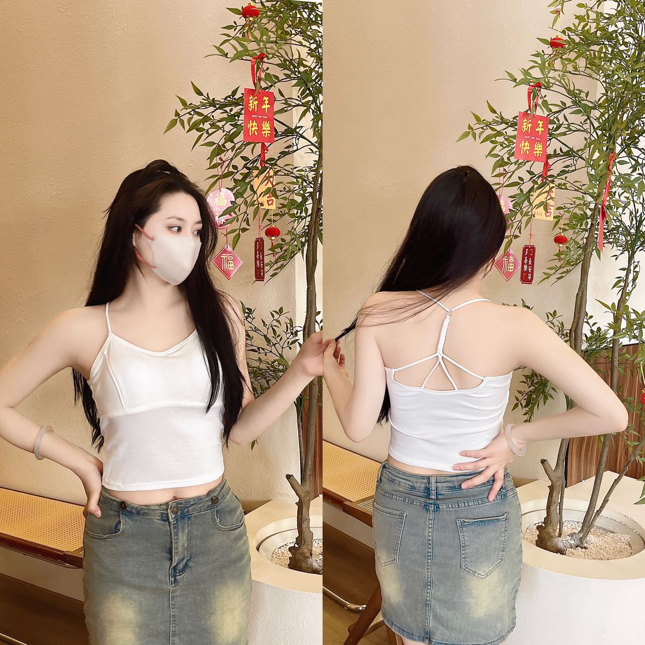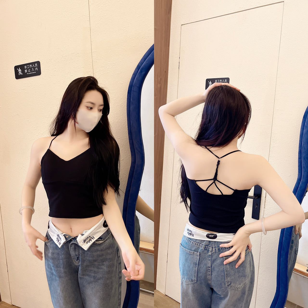 2024 봄과 여름 새로운 슬리밍 올 매치 낙하산 슬링 뷰티 백 노출 배꼽 겉옷 조끼 여성용 가슴 랩 속옷