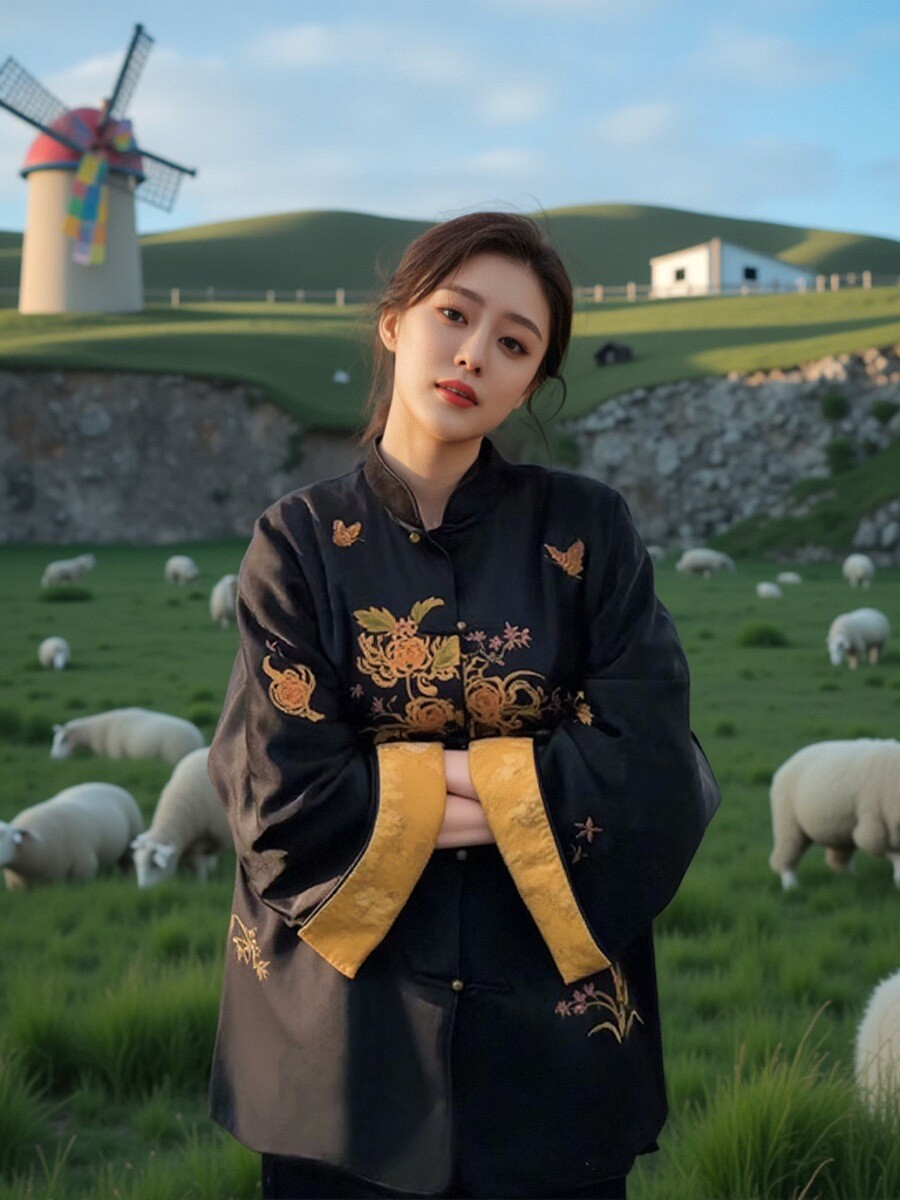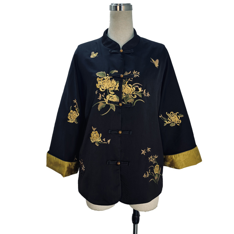 재고 양미의 새로운 중국 스타일 국가 스타일 코트 버클 자카드 올드 머니 스타일 레트로 하이 엔드 중국 스타일 셔츠스토어 가기