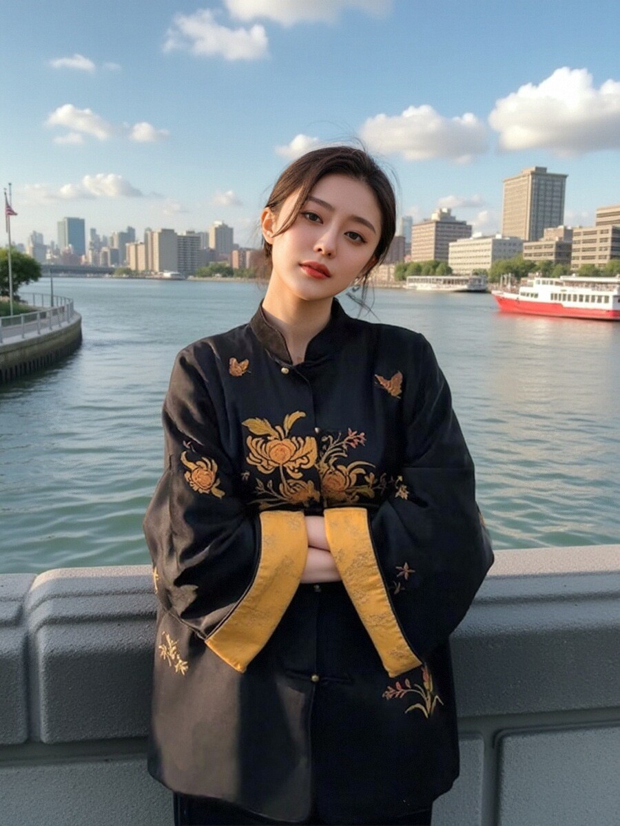 재고 양미의 새로운 중국 스타일 국가 스타일 코트 버클 자카드 올드 머니 스타일 레트로 하이 엔드 중국 스타일 셔츠
