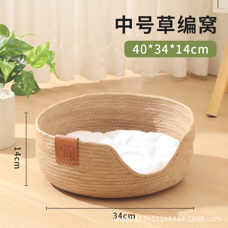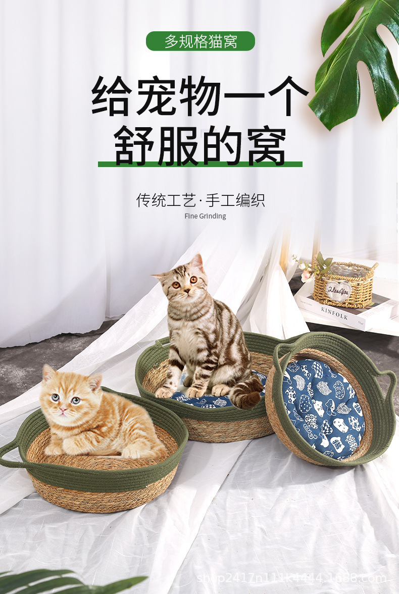 등나무 애완 동물 밀짚 둥지 고양이 둥지 토끼 둥지 사계절 보편적 인 cattail 고양이 침대 고양이 스크래치 보드 고양이 매트 애완 동물 용품 개스토어 가기