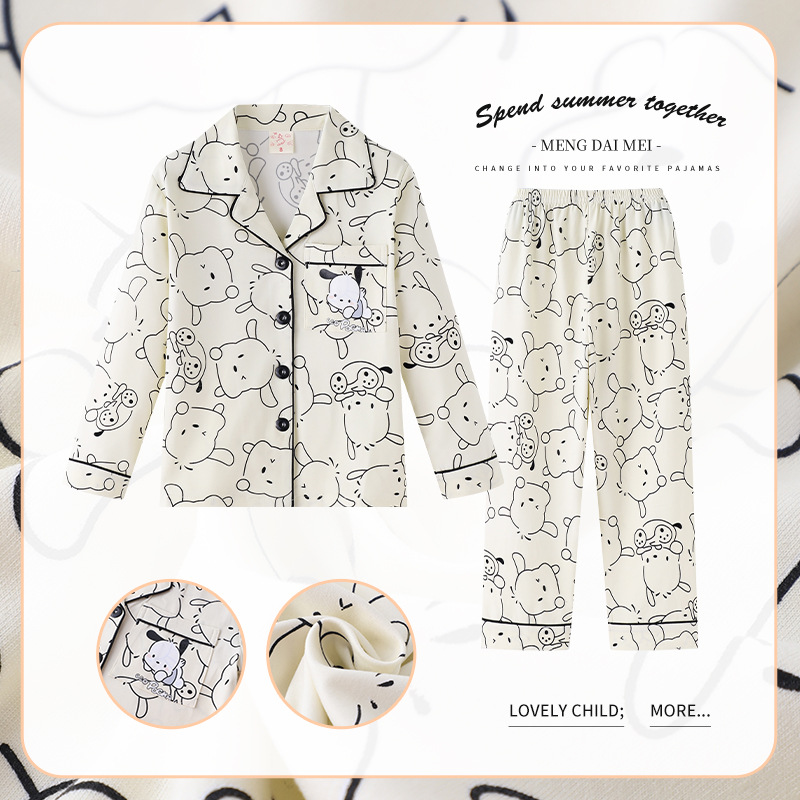2024 새로운 어린이 잠옷 소녀 봄과 가을 카디건 긴 소매 얇은 세트 어린 소녀 나이 많은 어린이 여름 가정스토어 가기