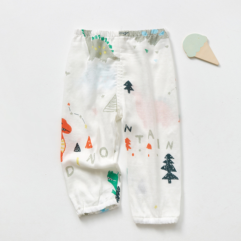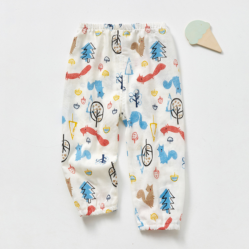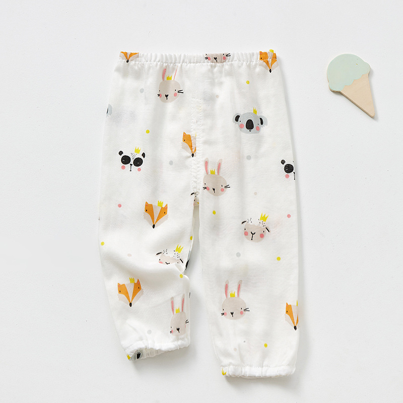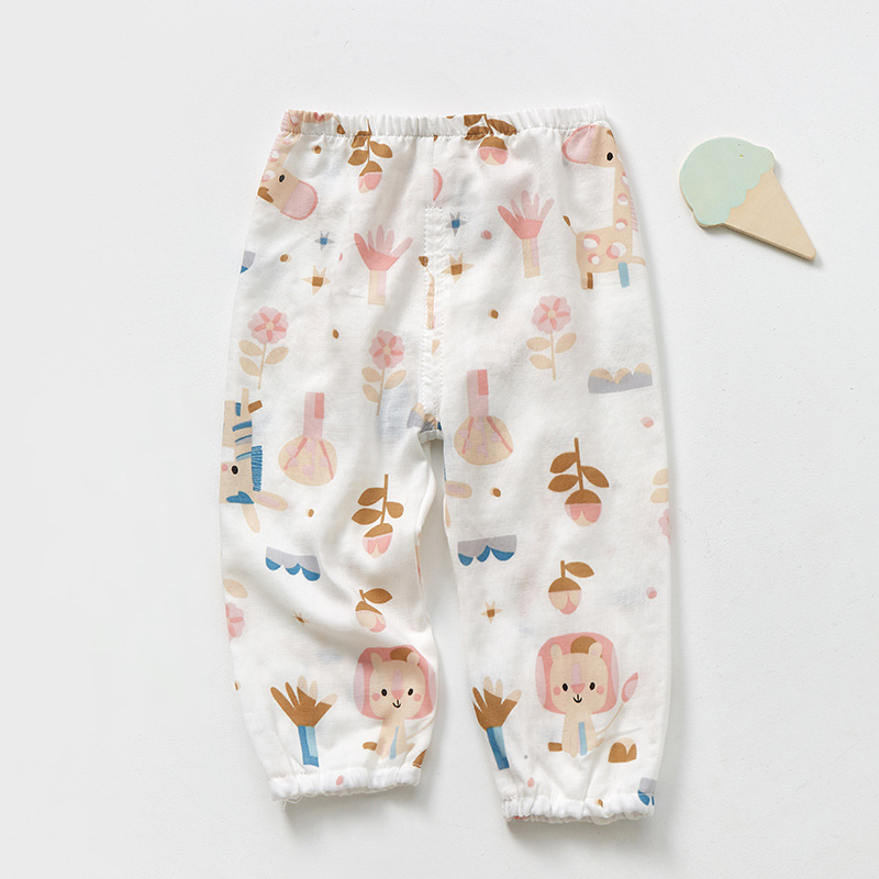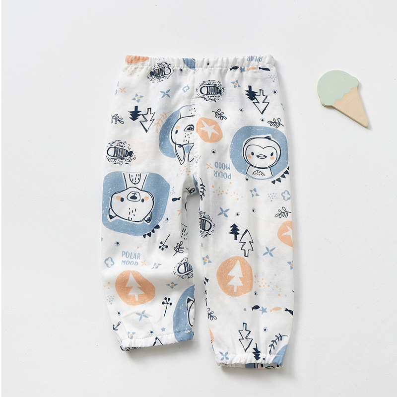 남성과 여성을 위한 어린이 거즈 모기 방지 바지, 만화 여름 바지, 새로운 스타일의 어린이 순면 바지