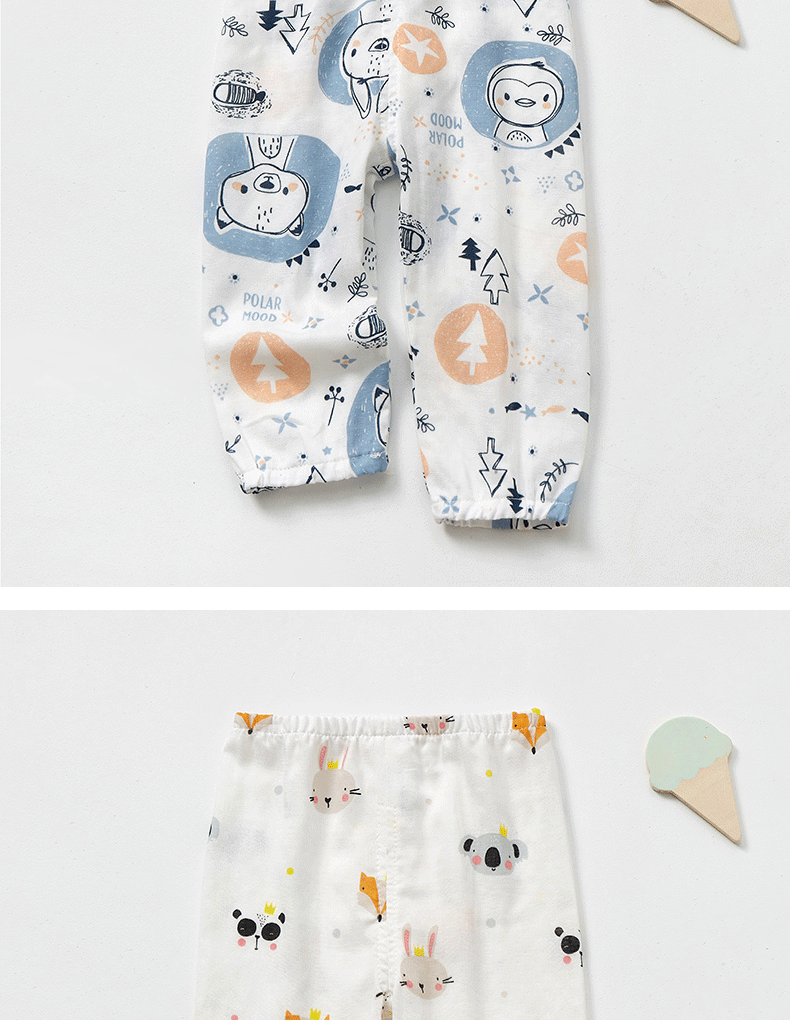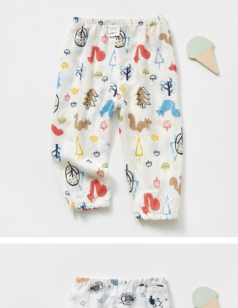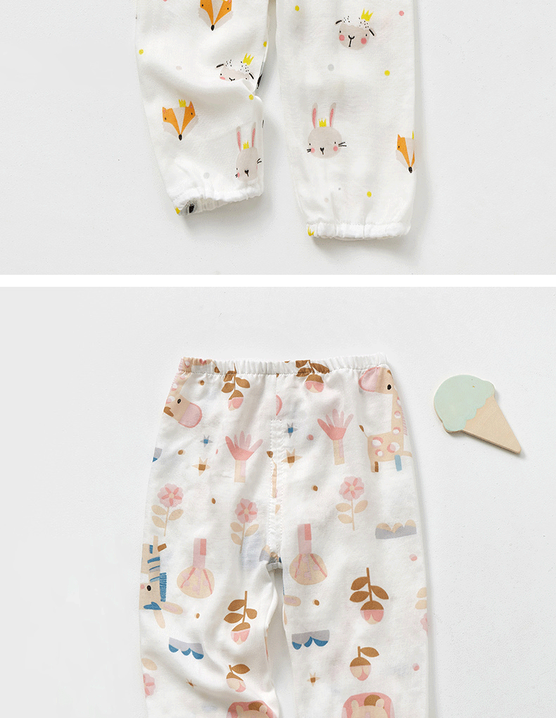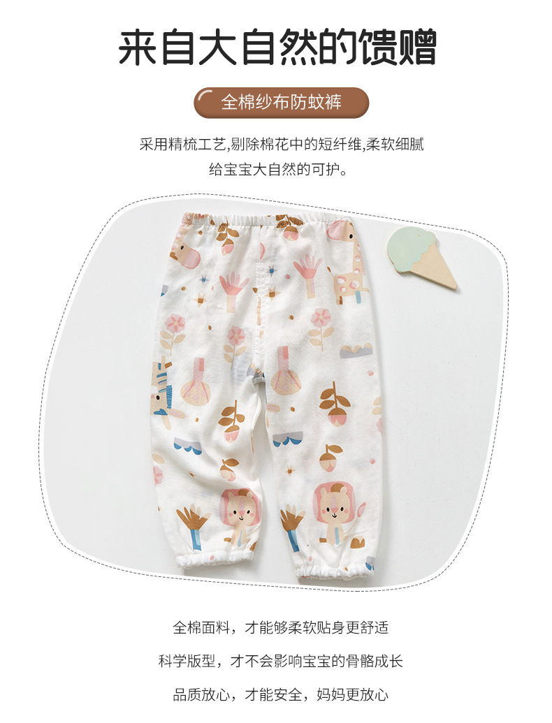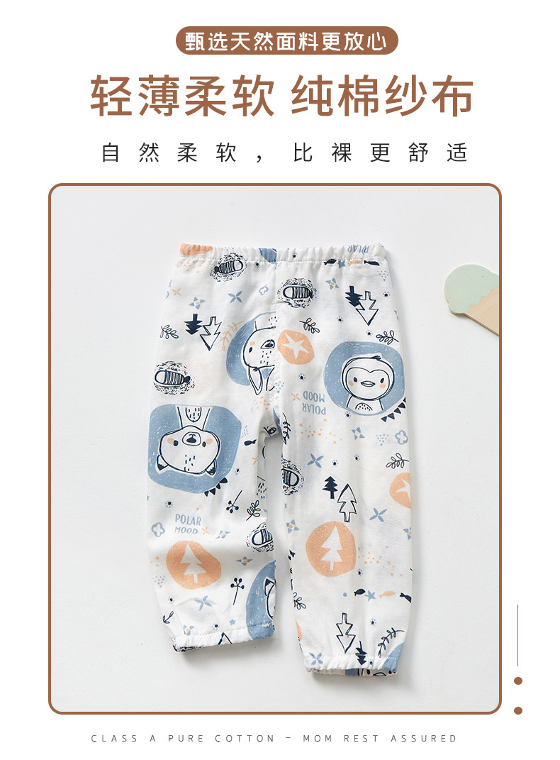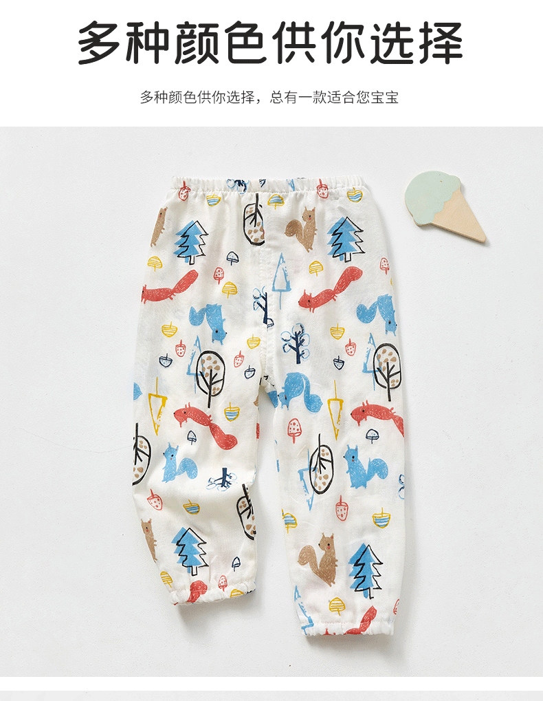 남성과 여성을 위한 어린이 거즈 모기 방지 바지, 만화 여름 바지, 새로운 스타일의 어린이 순면 바지스토어 가기