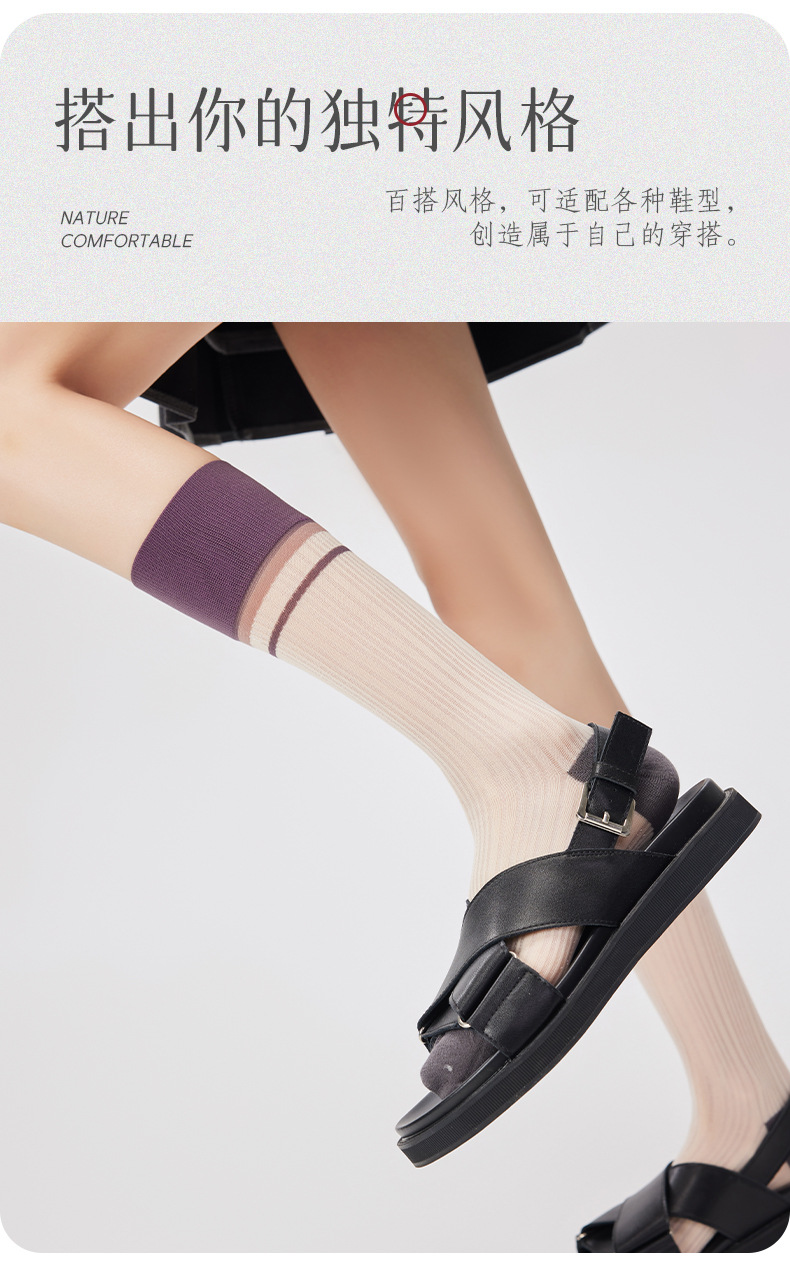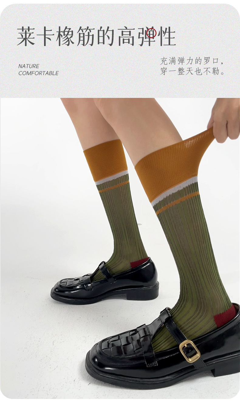 2024 봄 새로운 중간 종아리 양말 여성 패션 미국 푸시 양말 실크 종아리 양말 얇은 독립 포장