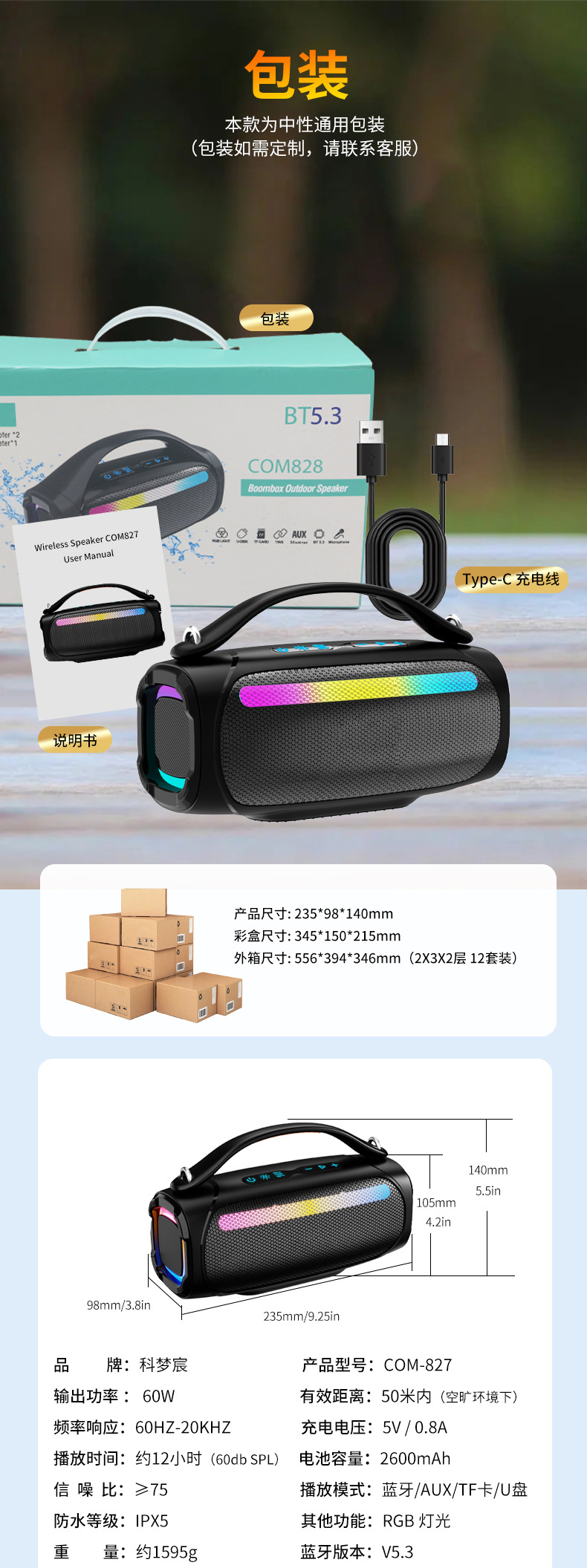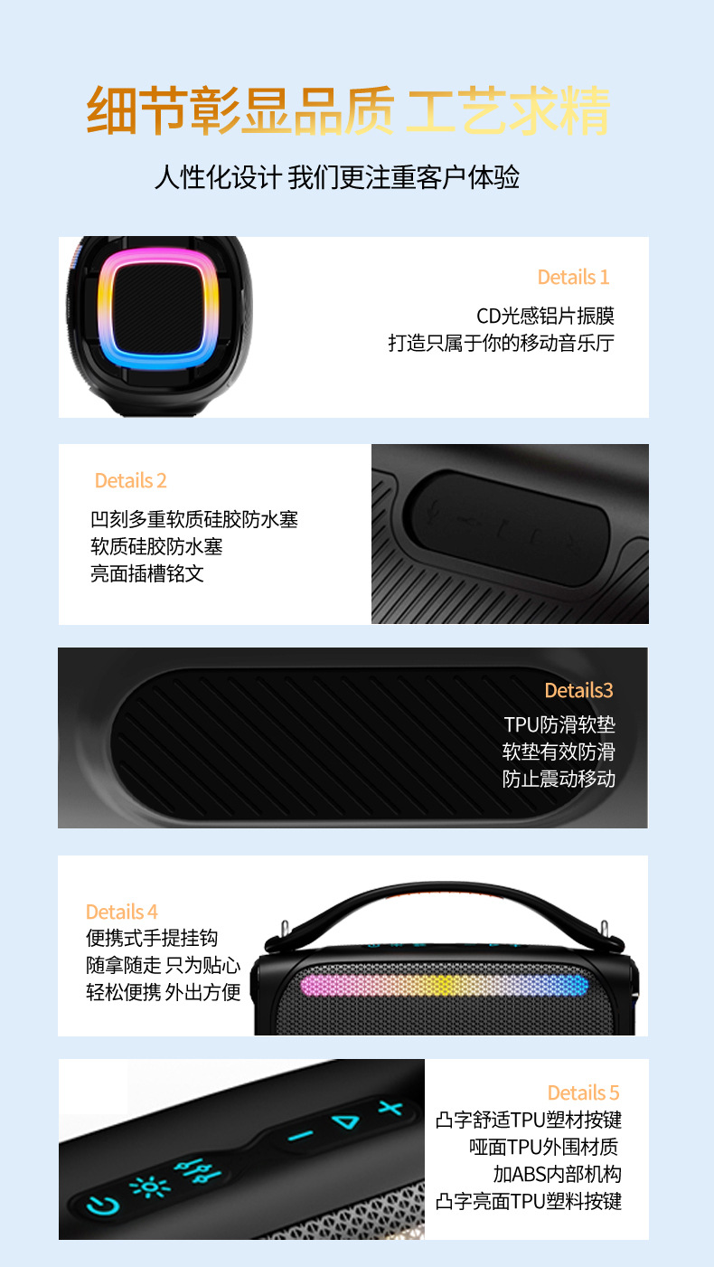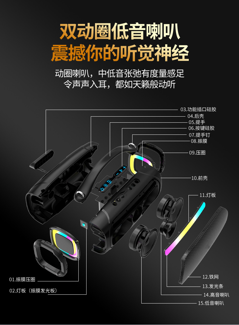 새로운 60W 높은 전원 블루투스 오디오 rgb 다채로운 서브 우퍼 무선 휴대용 야외 스피커