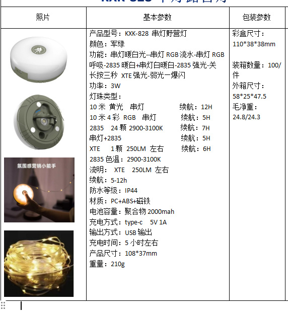 새로운 캠핑 램프 다채로운 문자열 램프 조명 손전등 LED 자기 충전 야외 분위기 캠핑 텐트 램프