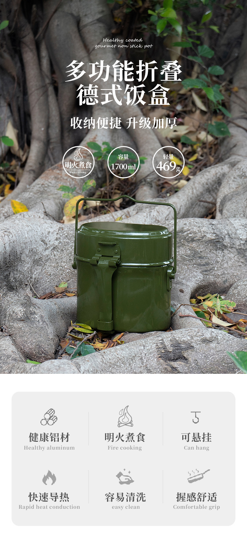 국경 간 알루미늄 독일 스타일 단일 군인 도시락 야외 캠핑 휴대용 밥솥 독일 스타일 79 형 다기능 교수형 냄비 주전자