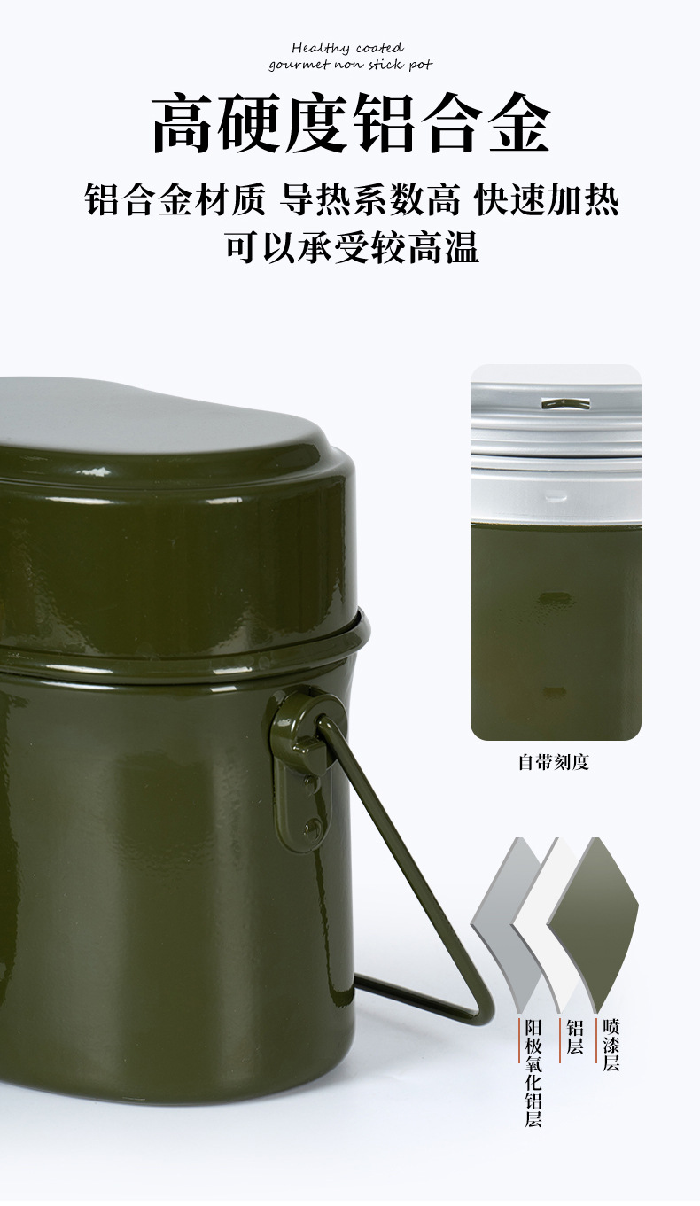 국경 간 알루미늄 독일 스타일 단일 군인 도시락 야외 캠핑 휴대용 밥솥 독일 스타일 79 형 다기능 교수형 냄비 주전자스토어 가기