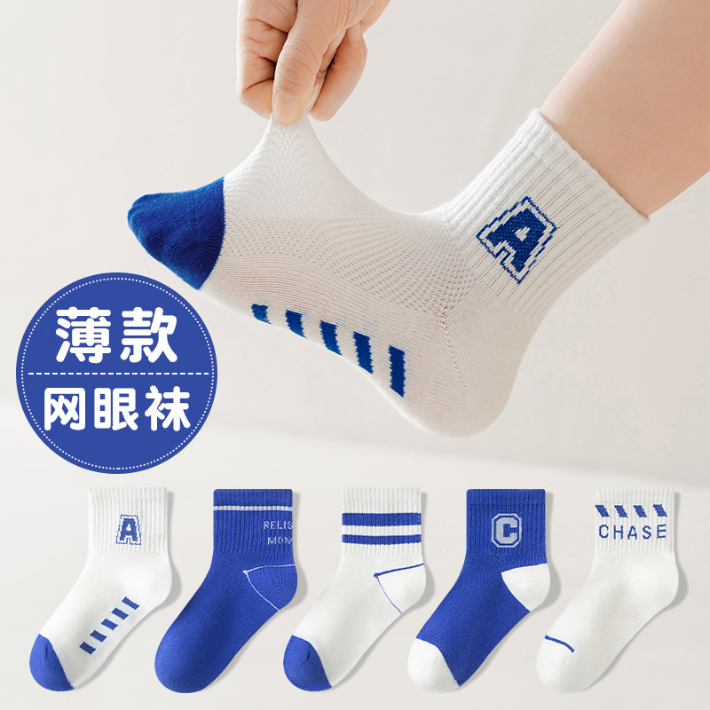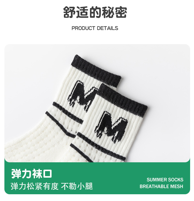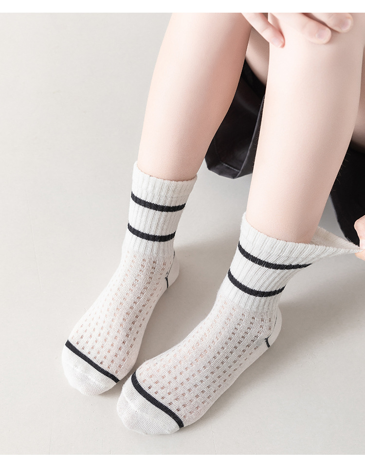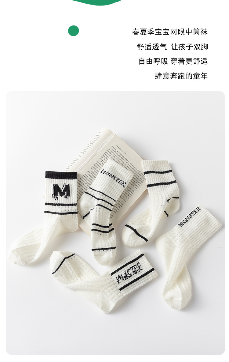 어린이 양말 봄과 여름 얇은 문자 중간 종아리 길이 양말 소년 소녀 아기 여름 흑백 줄무늬 통기성 메쉬 양말스토어 가기
