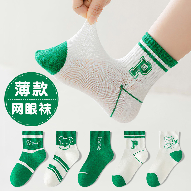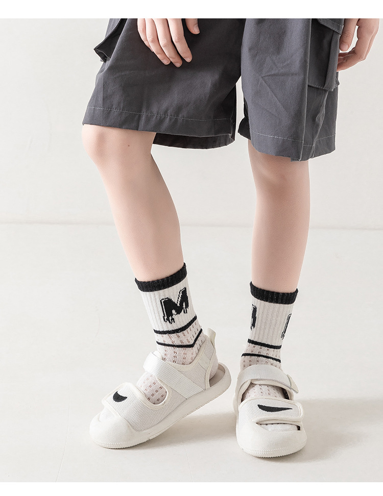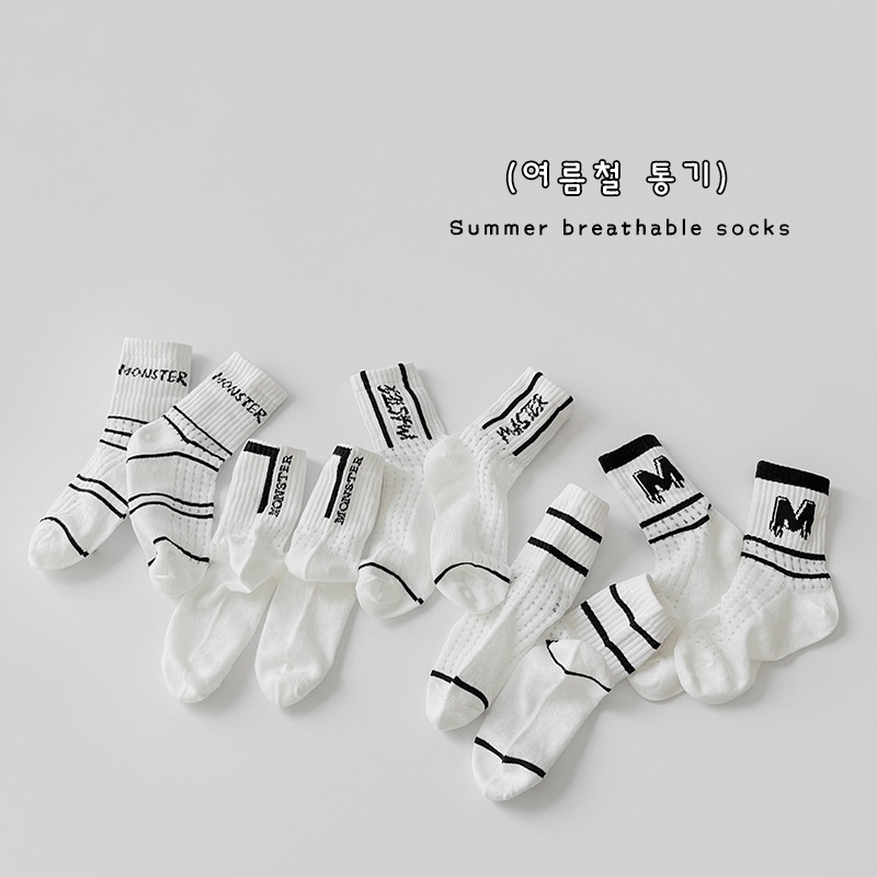 어린이 양말 봄과 여름 얇은 문자 중간 종아리 길이 양말 소년 소녀 아기 여름 흑백 줄무늬 통기성 메쉬 양말