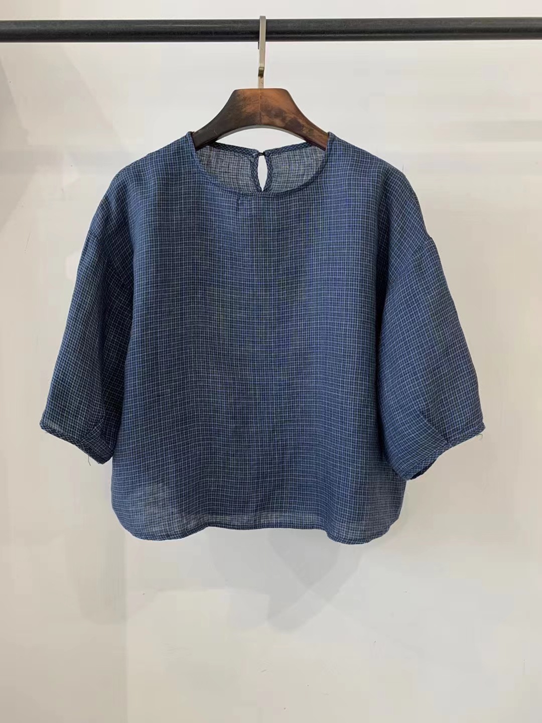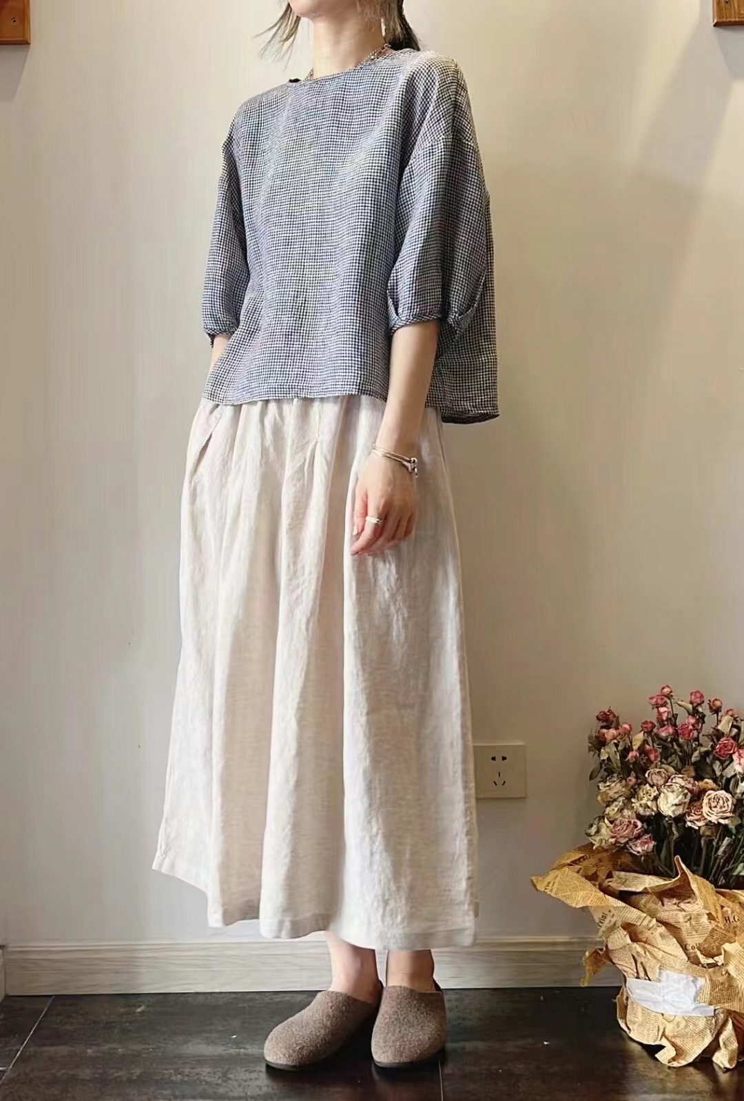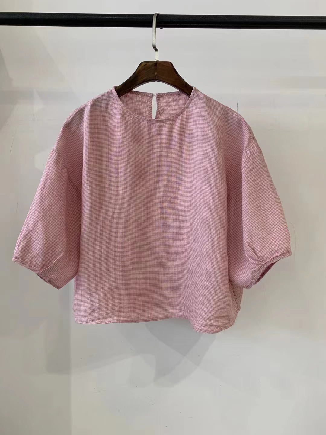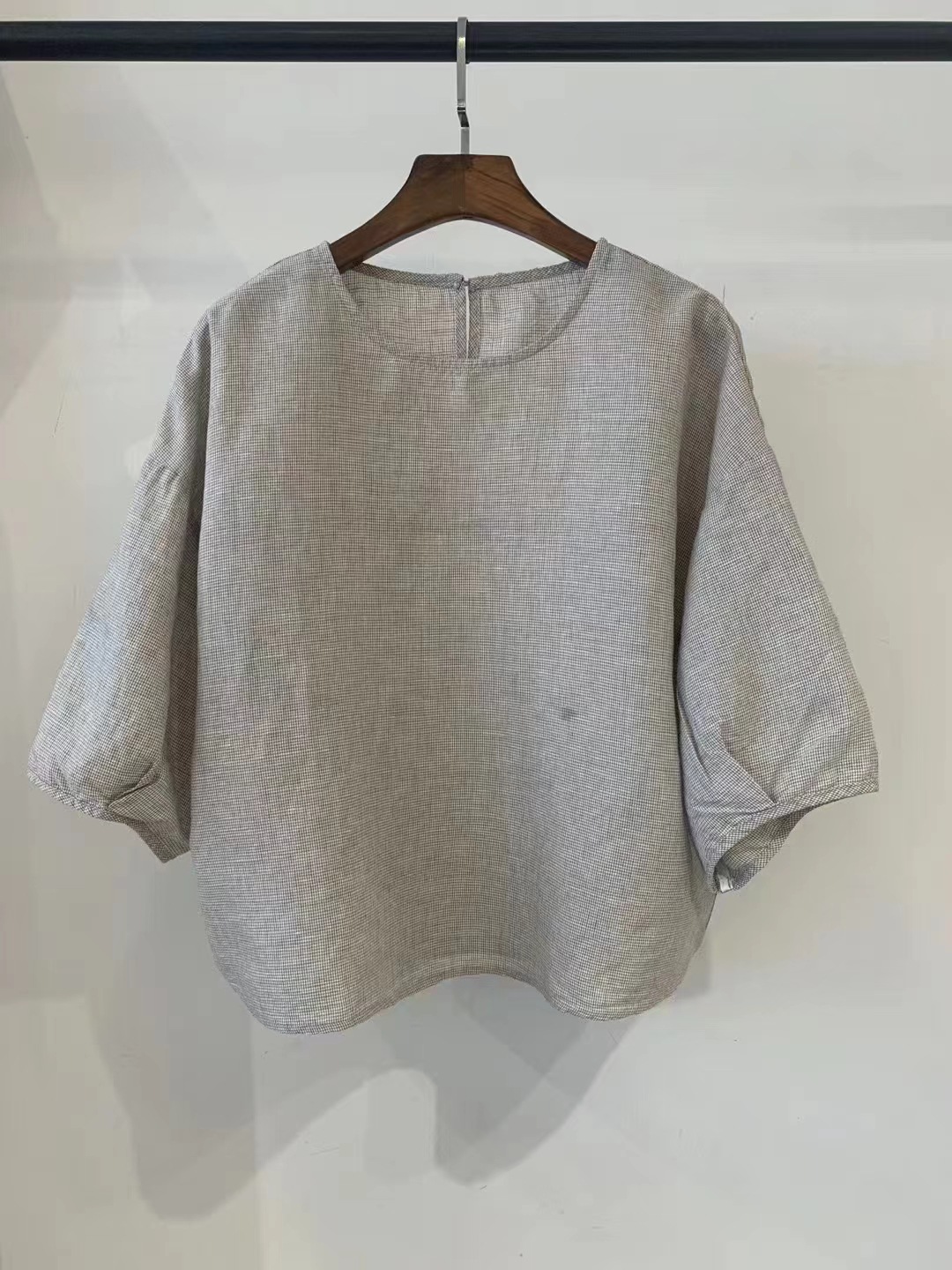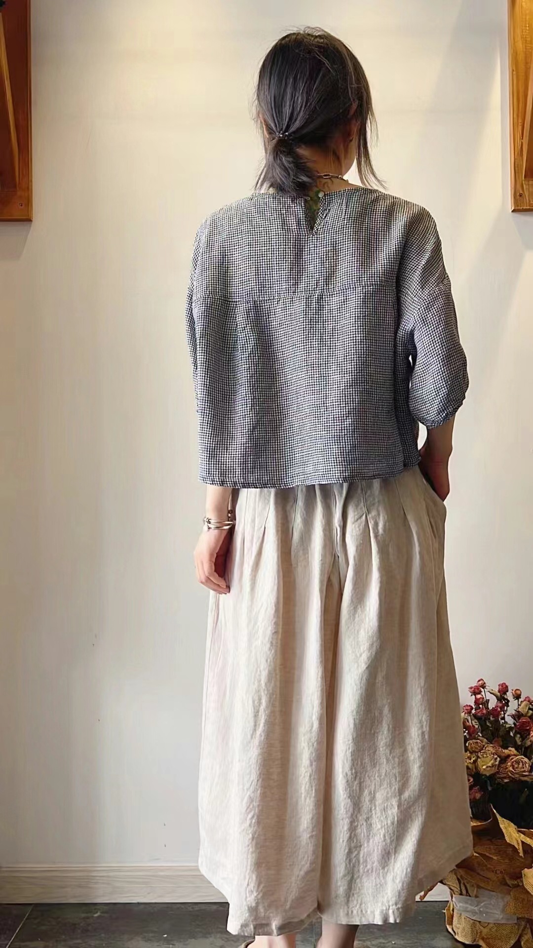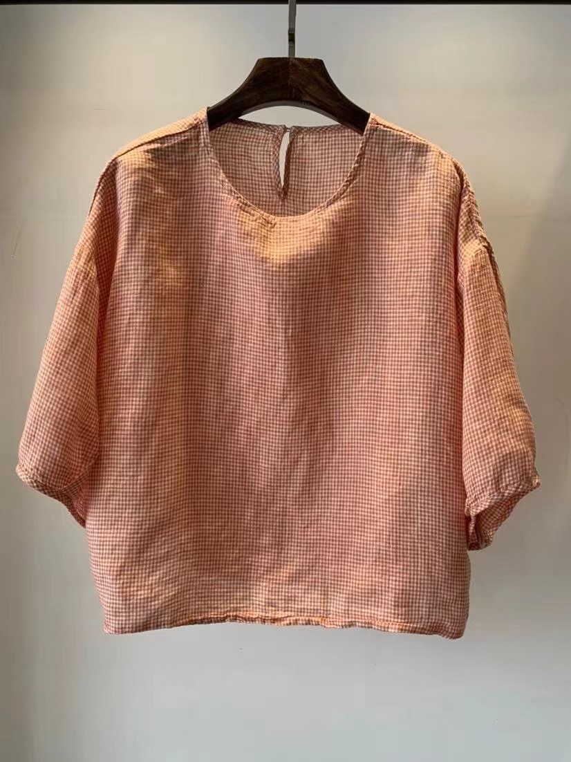 여성을위한 일본식 린넨 체크 무늬 셔츠 봄 새로운 느슨한 캐주얼 다목적 복고풍 예술적 연령 감소 셔츠 탑