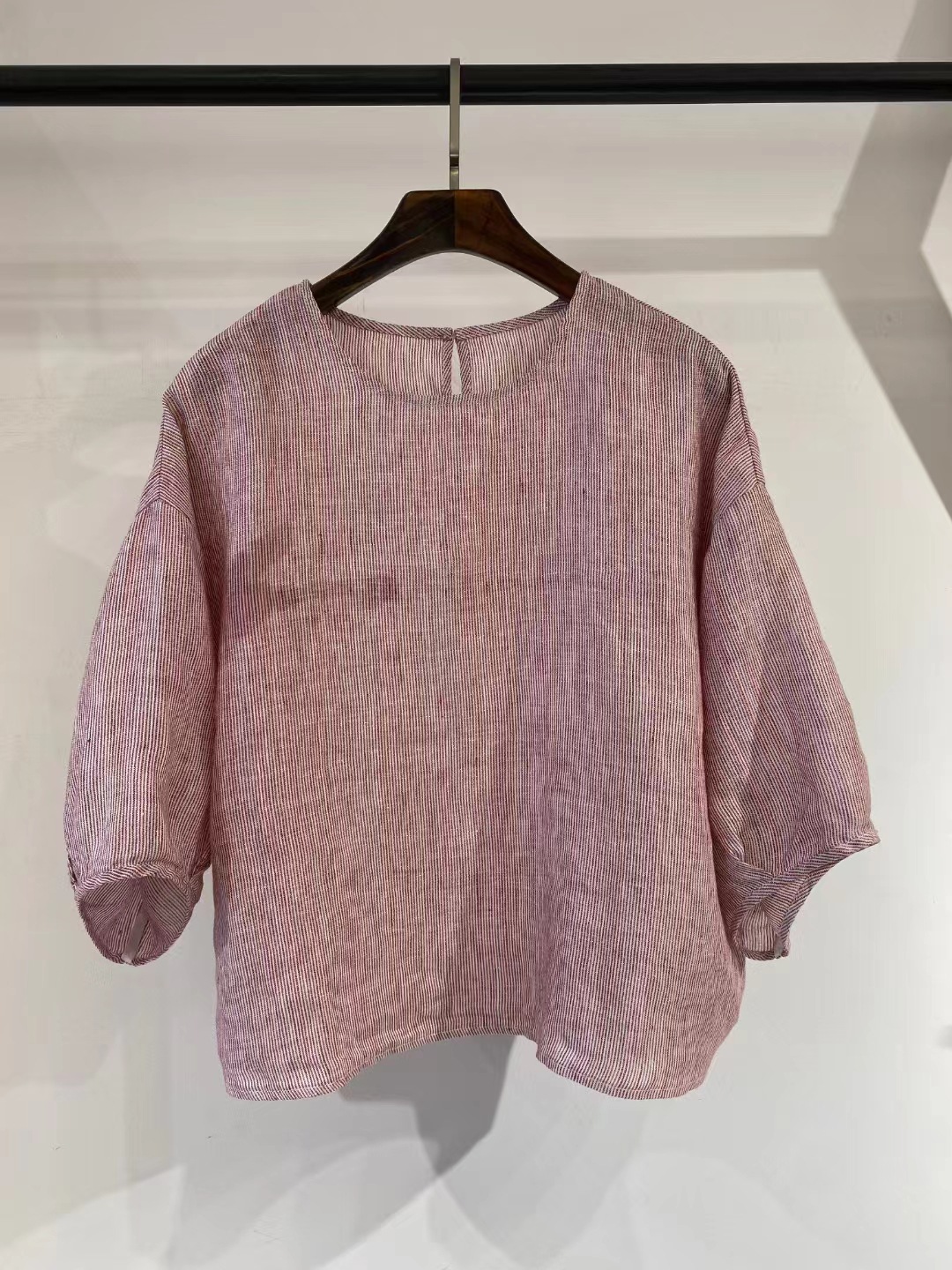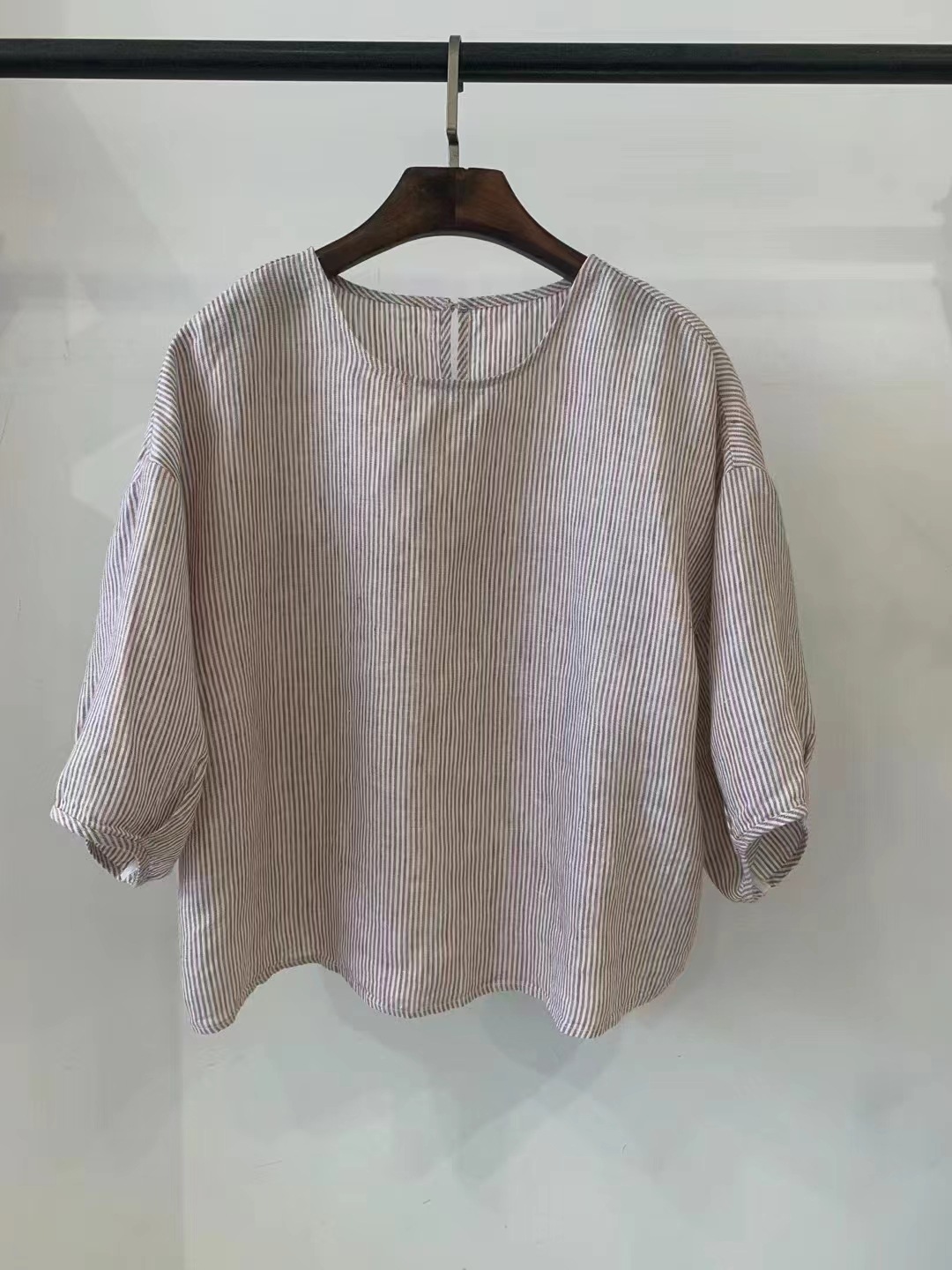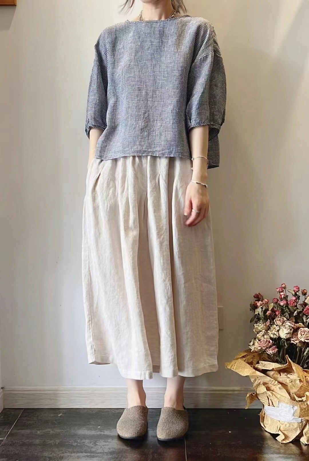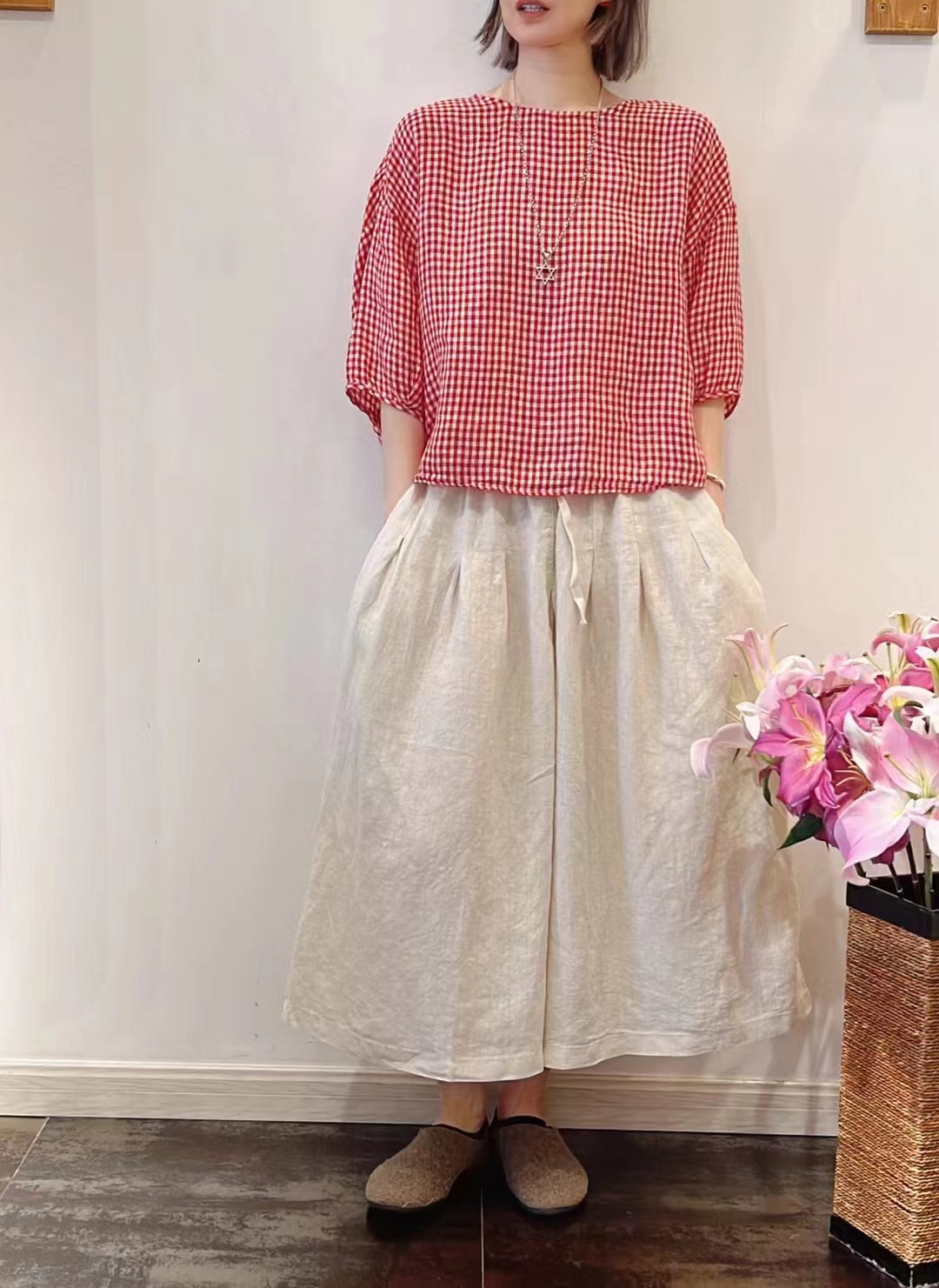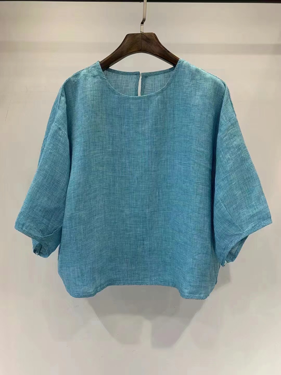 여성을위한 일본식 린넨 체크 무늬 셔츠 봄 새로운 느슨한 캐주얼 다목적 복고풍 예술적 연령 감소 셔츠 탑