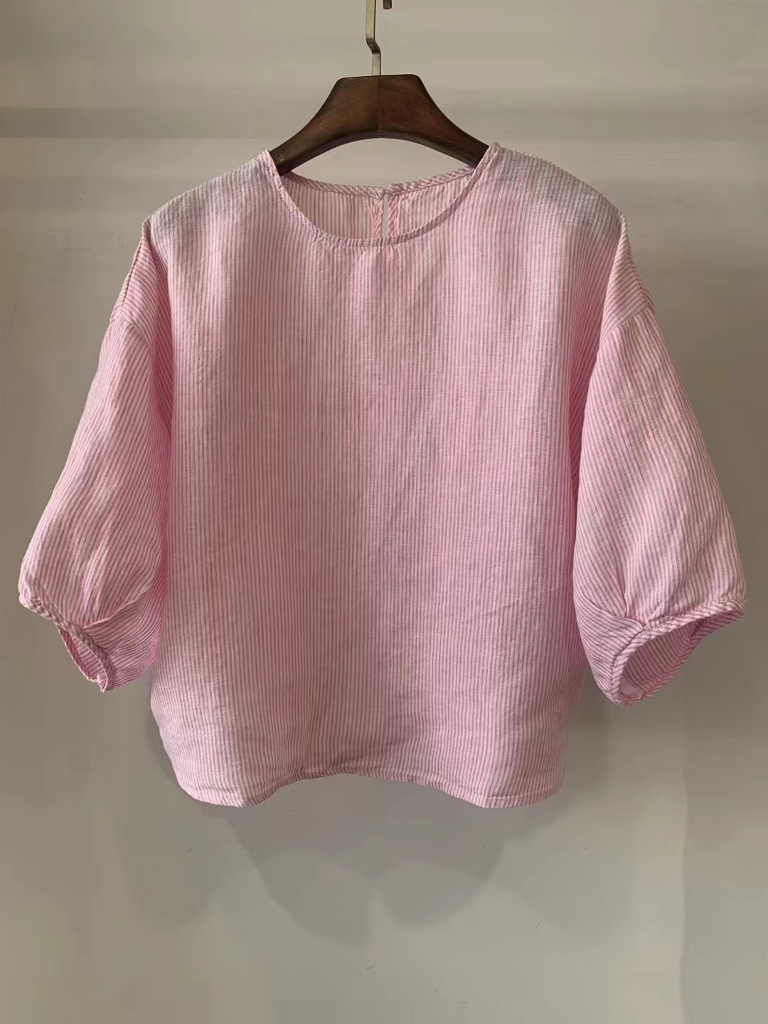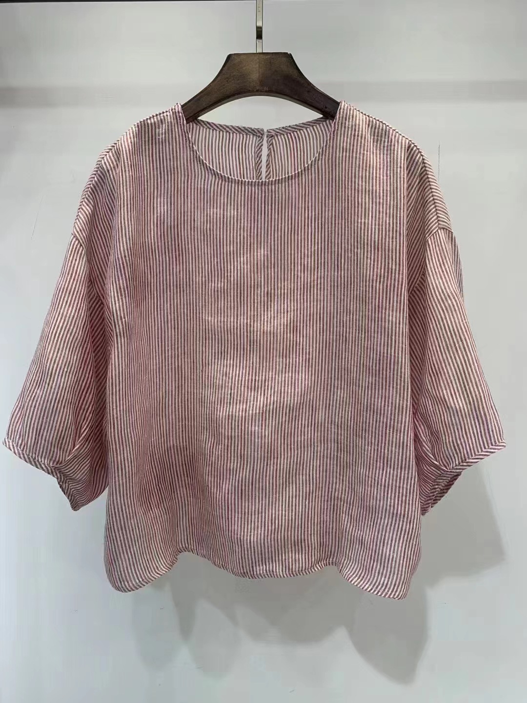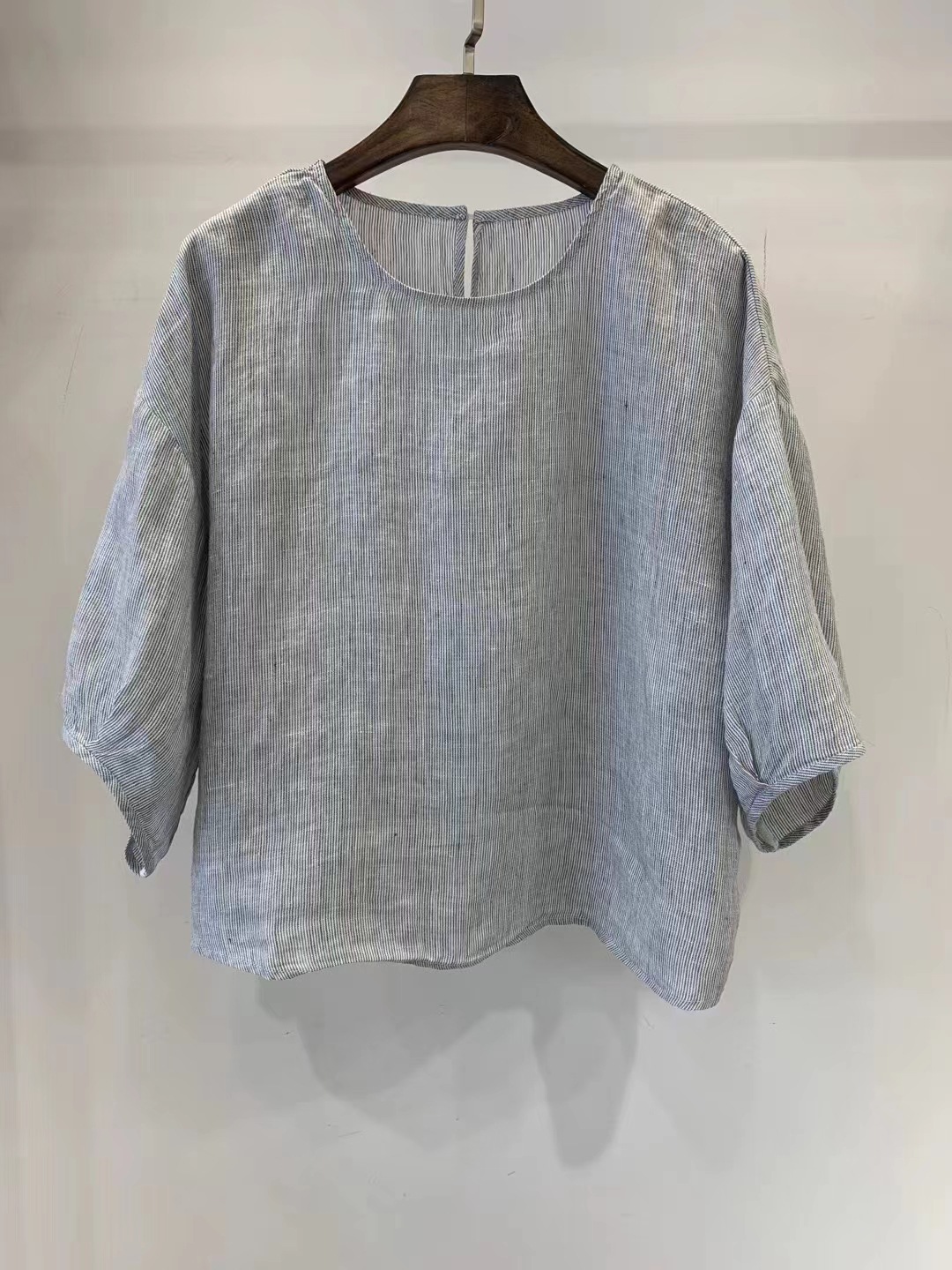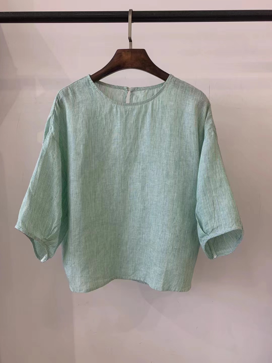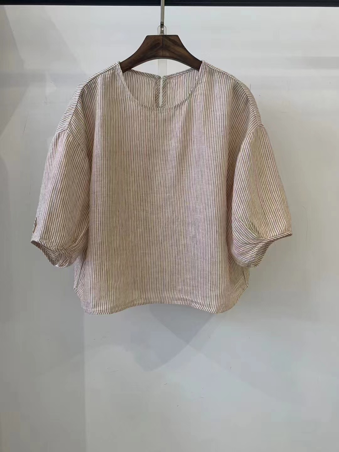 여성을위한 일본식 린넨 체크 무늬 셔츠 봄 새로운 느슨한 캐주얼 다목적 복고풍 예술적 연령 감소 셔츠 탑