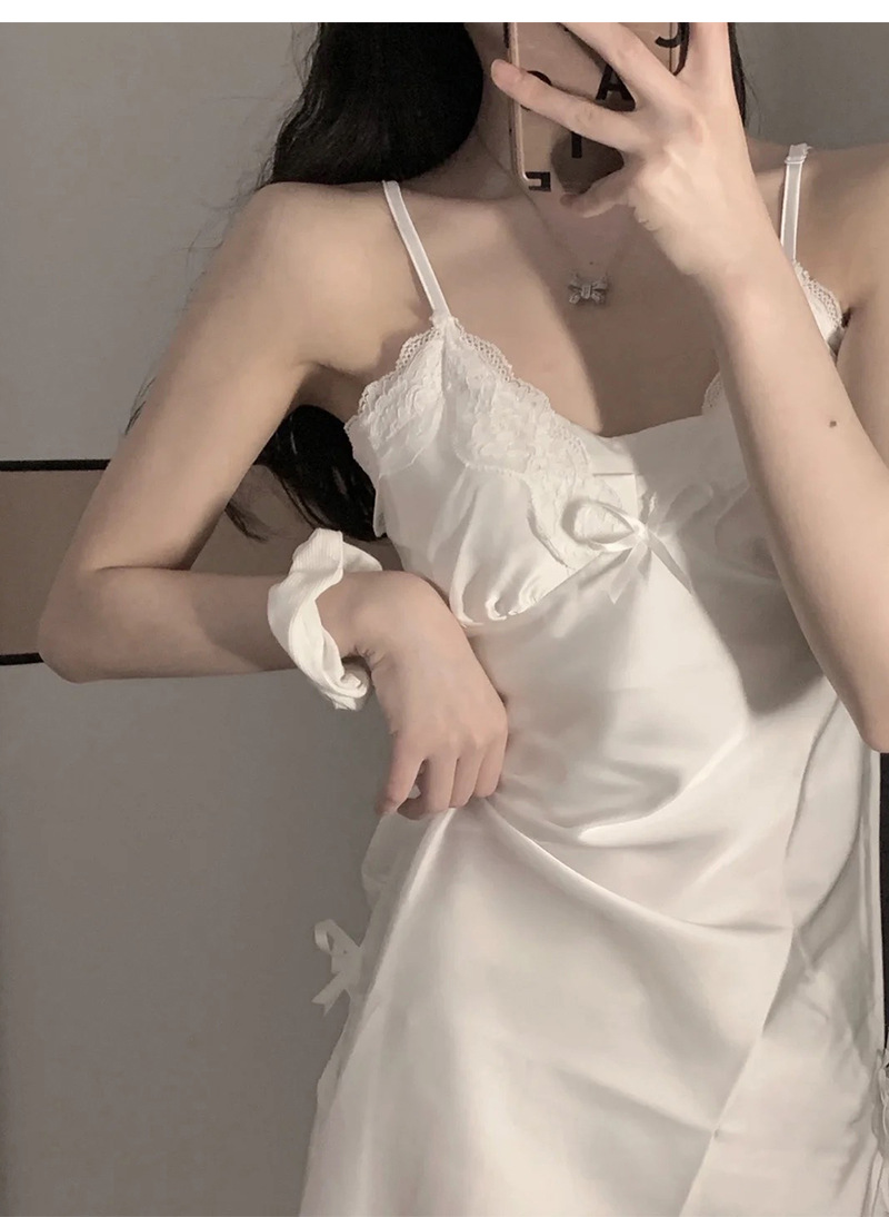 프랑스 스타일의 순수한 섹시한 서스펜더 스커트 파자마 여성 여름 나이트 드레스 인기 2024 뉴 스위트 홈웨어 원피스