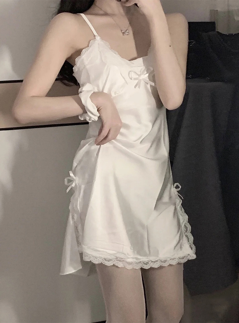 프랑스 스타일의 순수한 섹시한 서스펜더 스커트 파자마 여성 여름 나이트 드레스 인기 2024 뉴 스위트 홈웨어 원피스스토어 가기