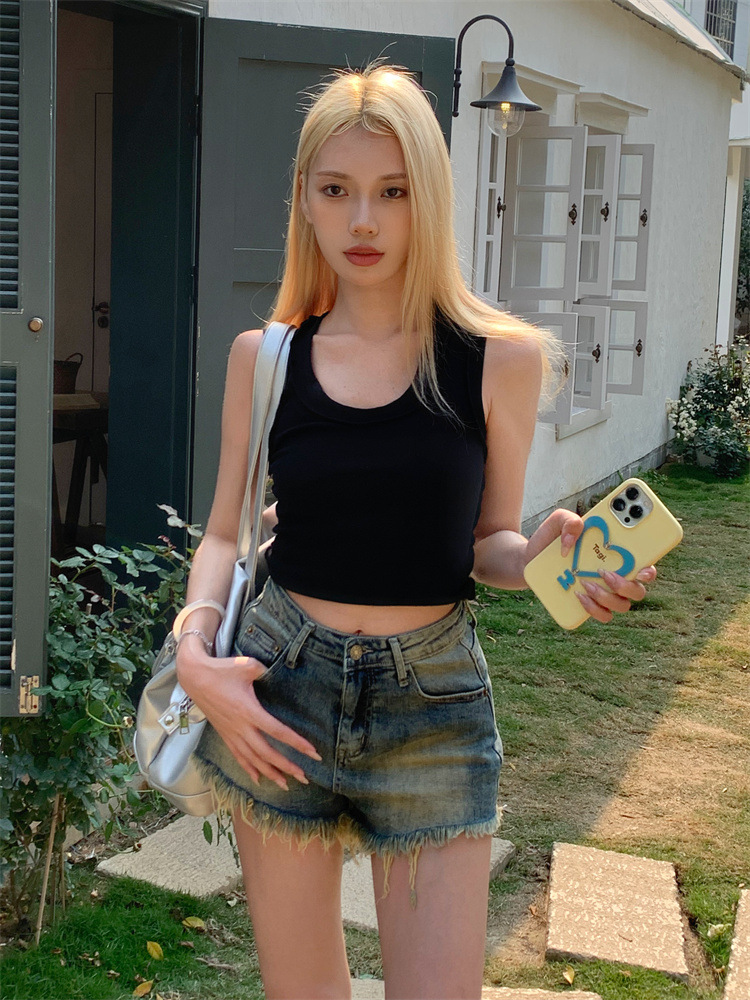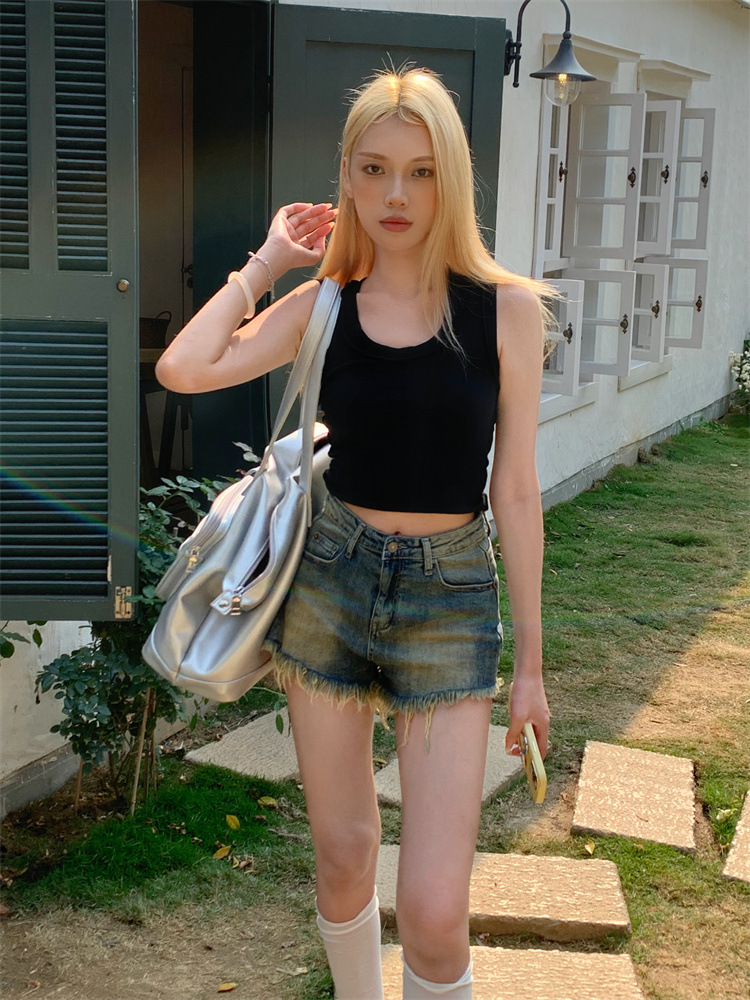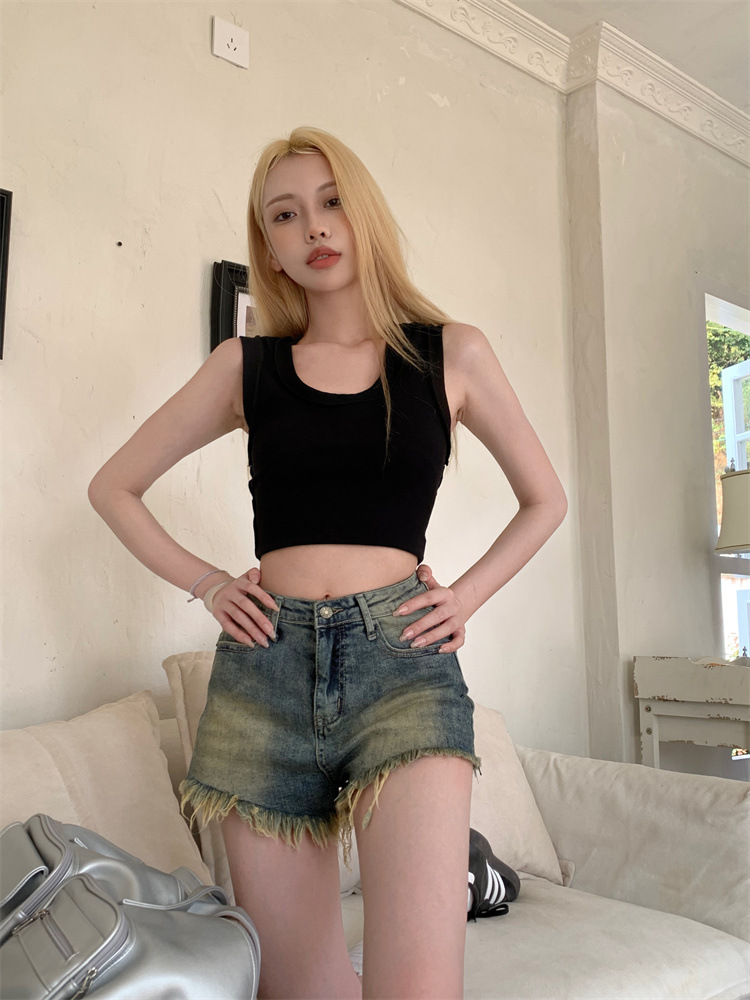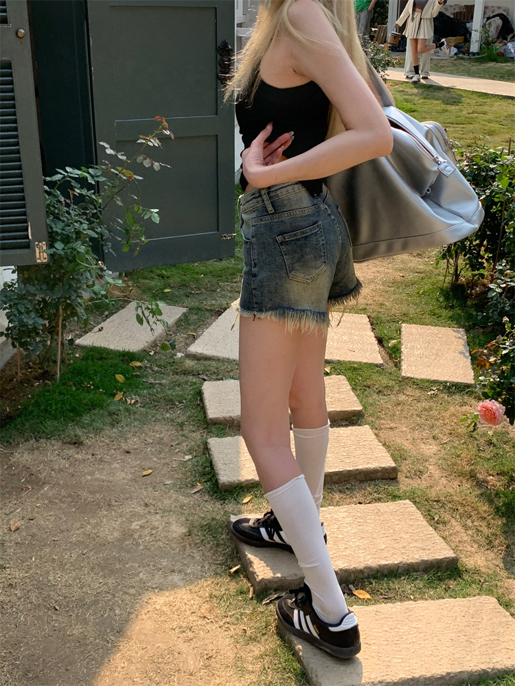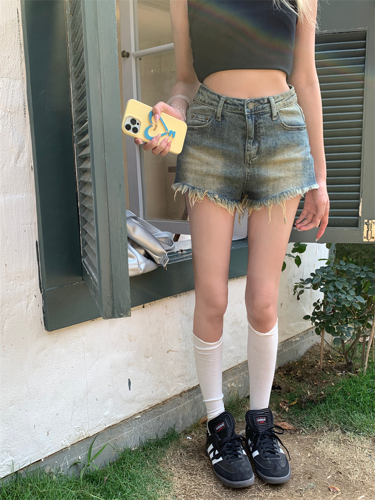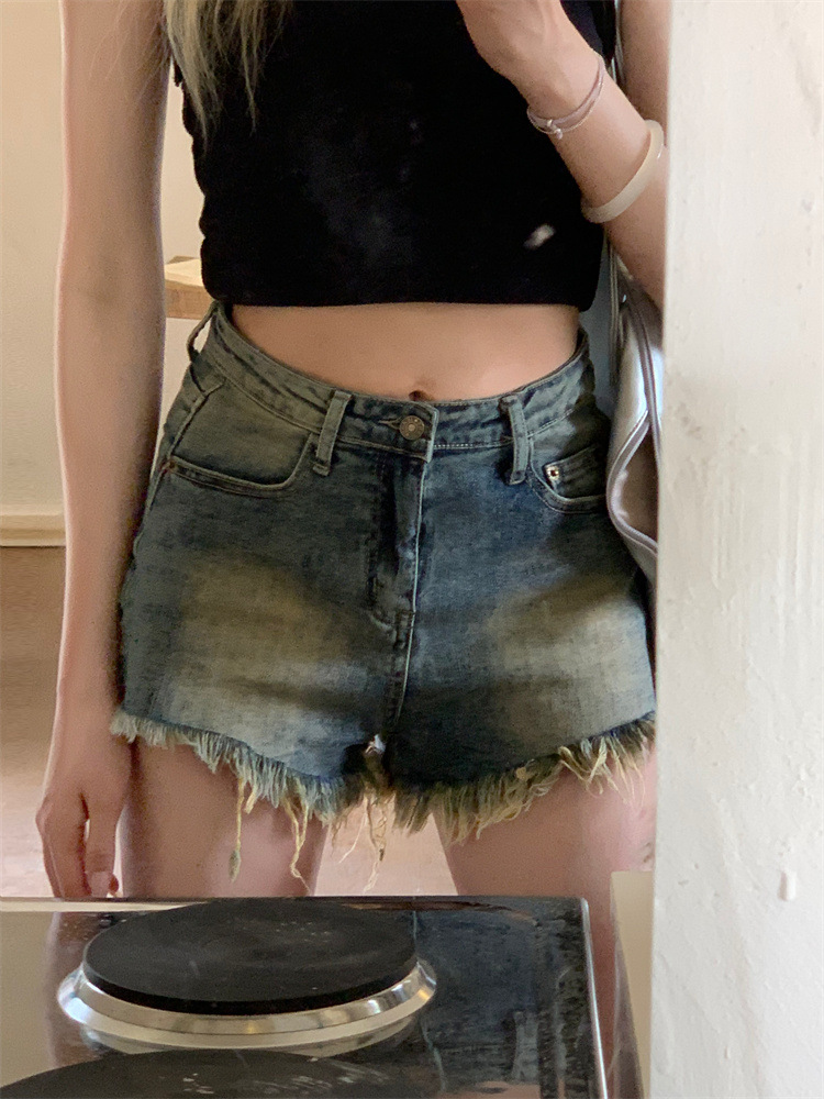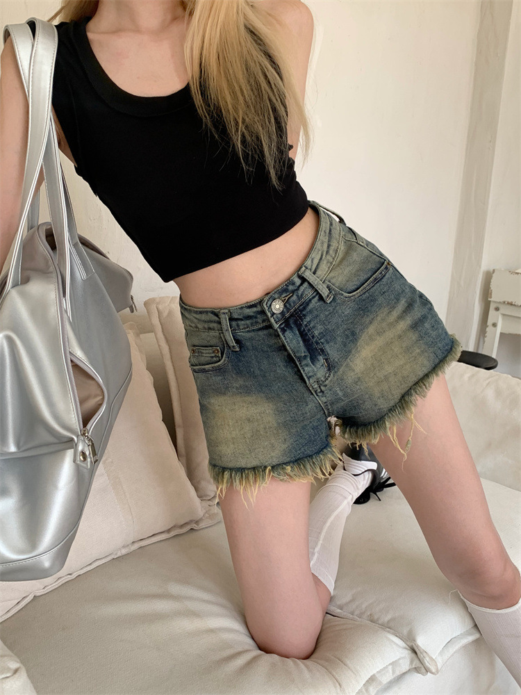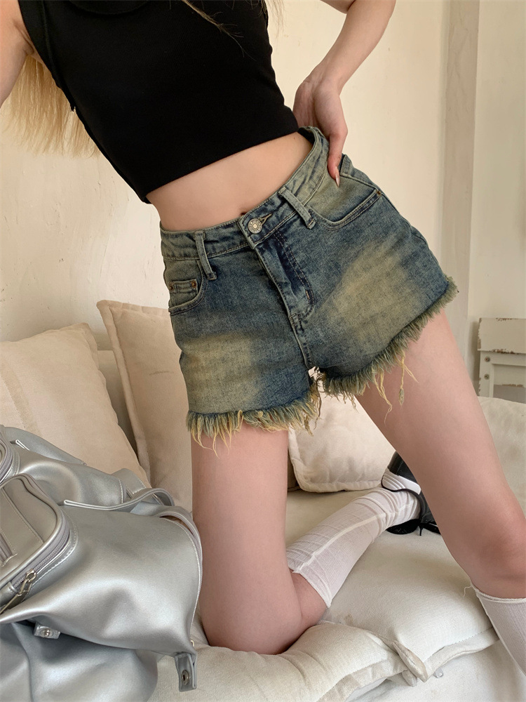 빈티지 포장 데님 반바지 여성의 여름 높은 허리 타이트 스트레이트 바지 핫 트렌디 핫 팬츠스토어 가기