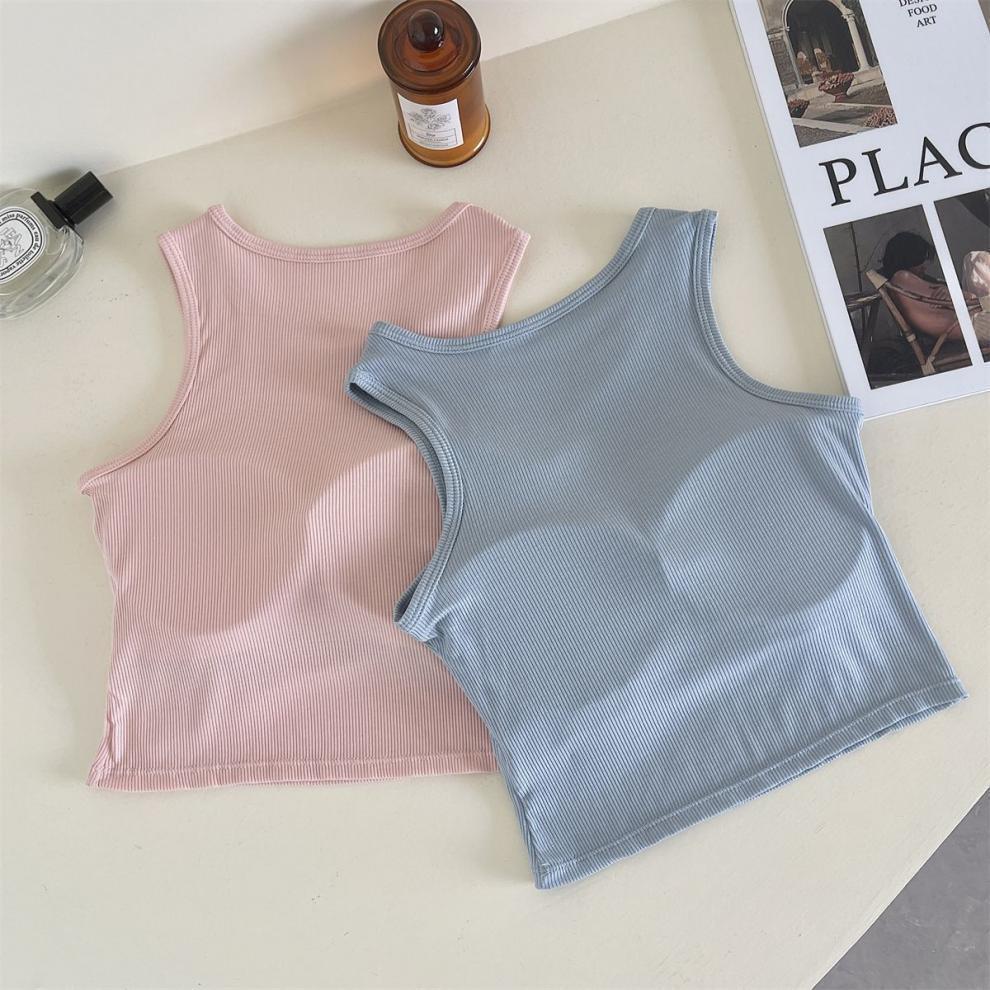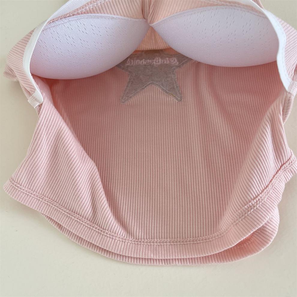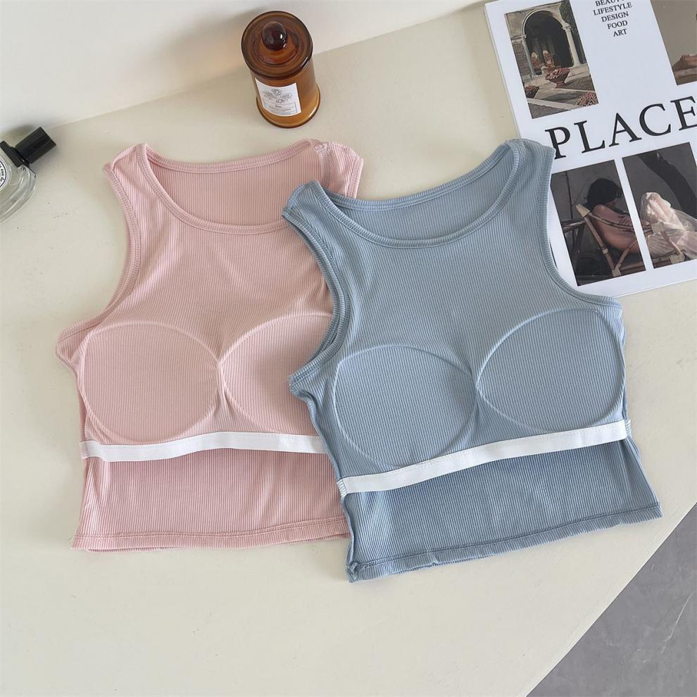 여름 온라인 뜨거운 소녀 I 모양의 캐미솔 외부 착용 내부 원피스 편안한 가슴 패드 고정 컵 소녀 포장 가슴스토어 가기