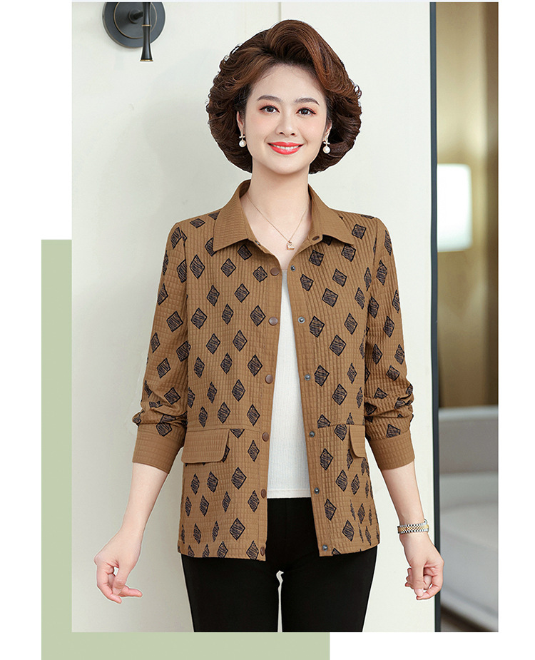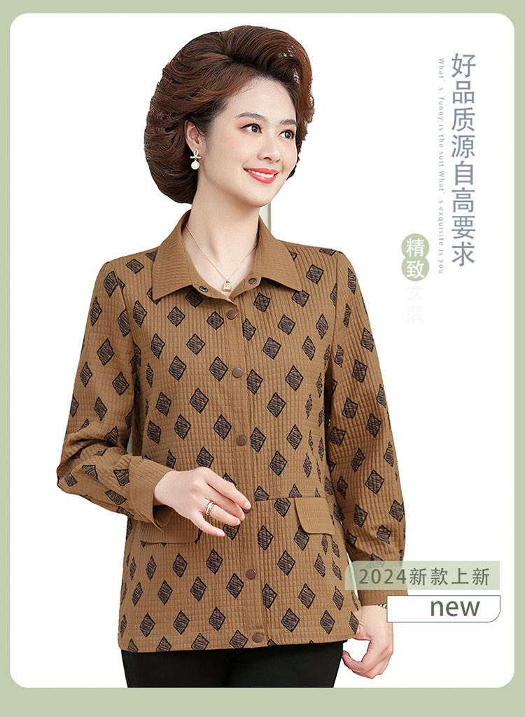 25 엄마들을 위한 봄철 카라 가디건, 큰 사이즈 코트, 새로운 중년 여성복, 루즈하고 세련된 캐주얼 숏탑스토어 가기