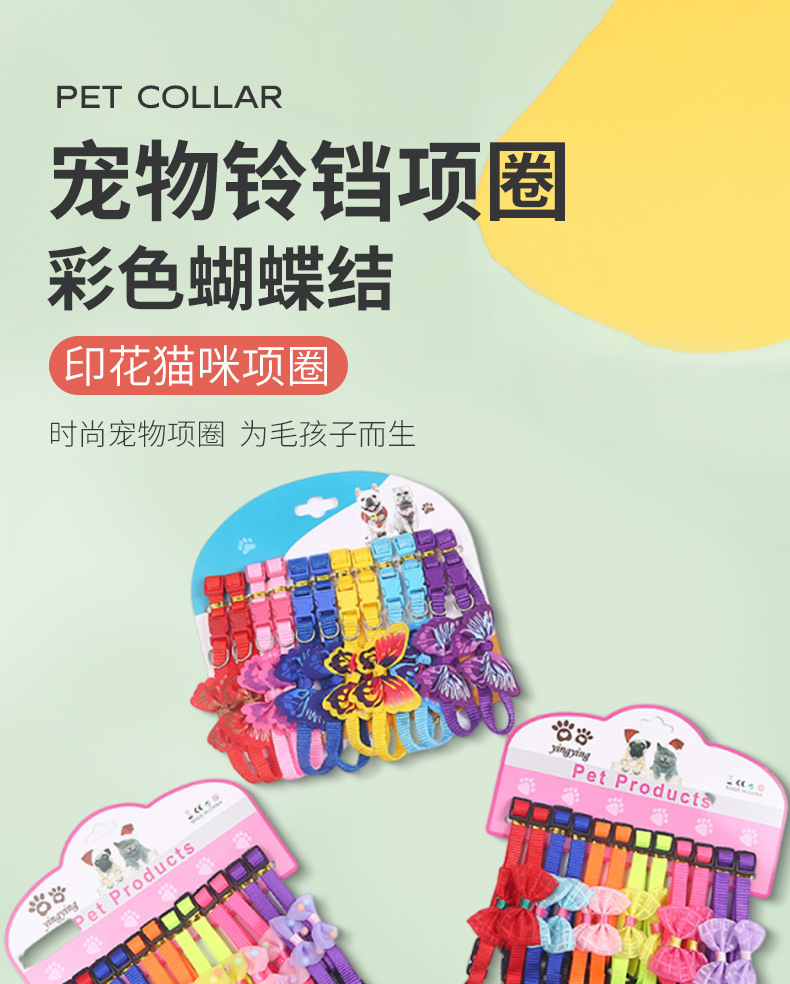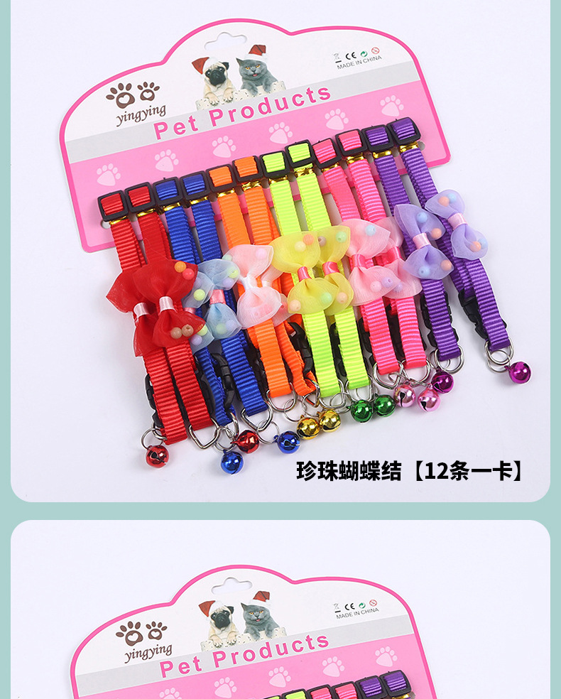 벨 개 고양이 장식 카드와 함께 다채로운 활 애완 동물 목걸이 인쇄 고양이 목걸이스토어 가기