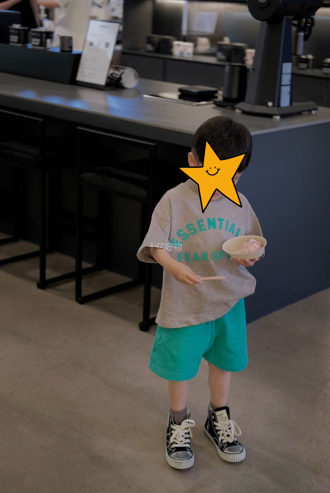 트렌디 한 럭셔리 ESSENTIALS 소녀 반팔 무거운 어린이 티셔츠 아동복스토어 가기