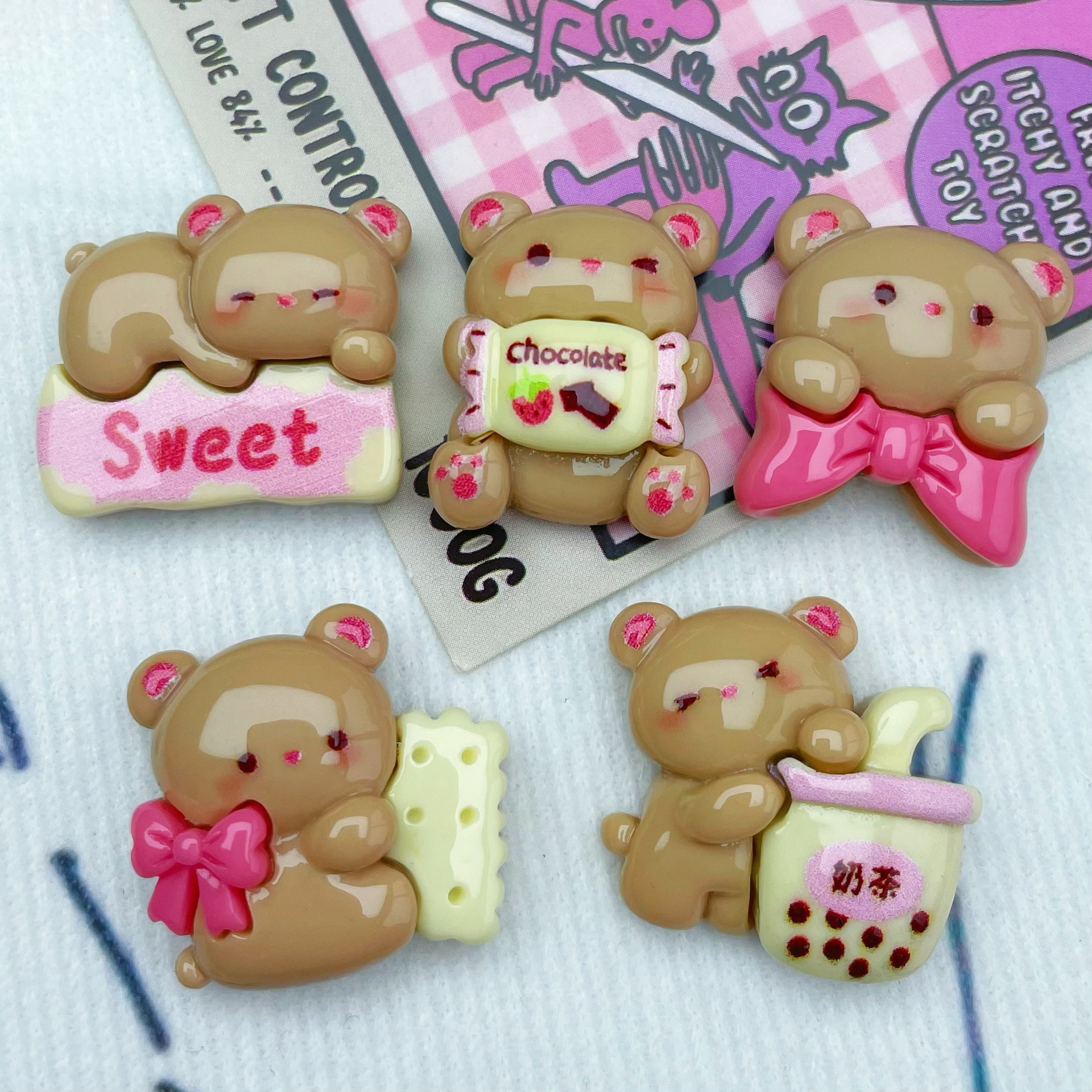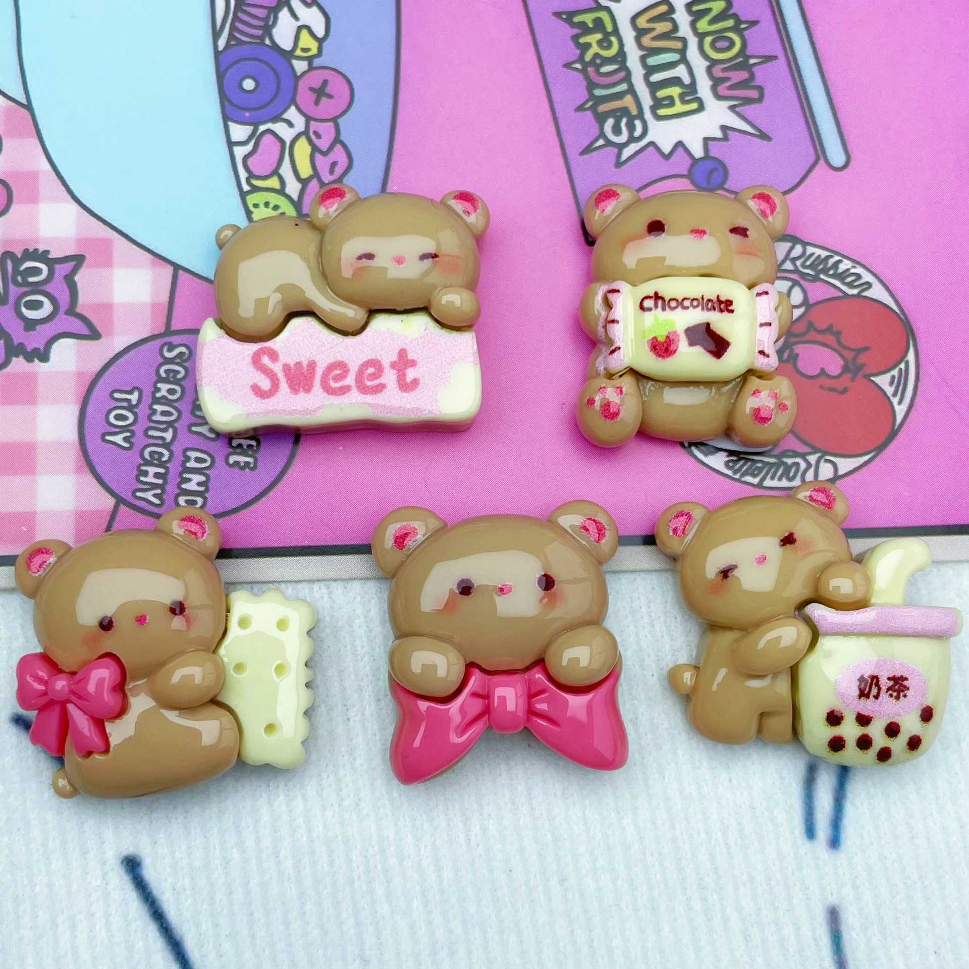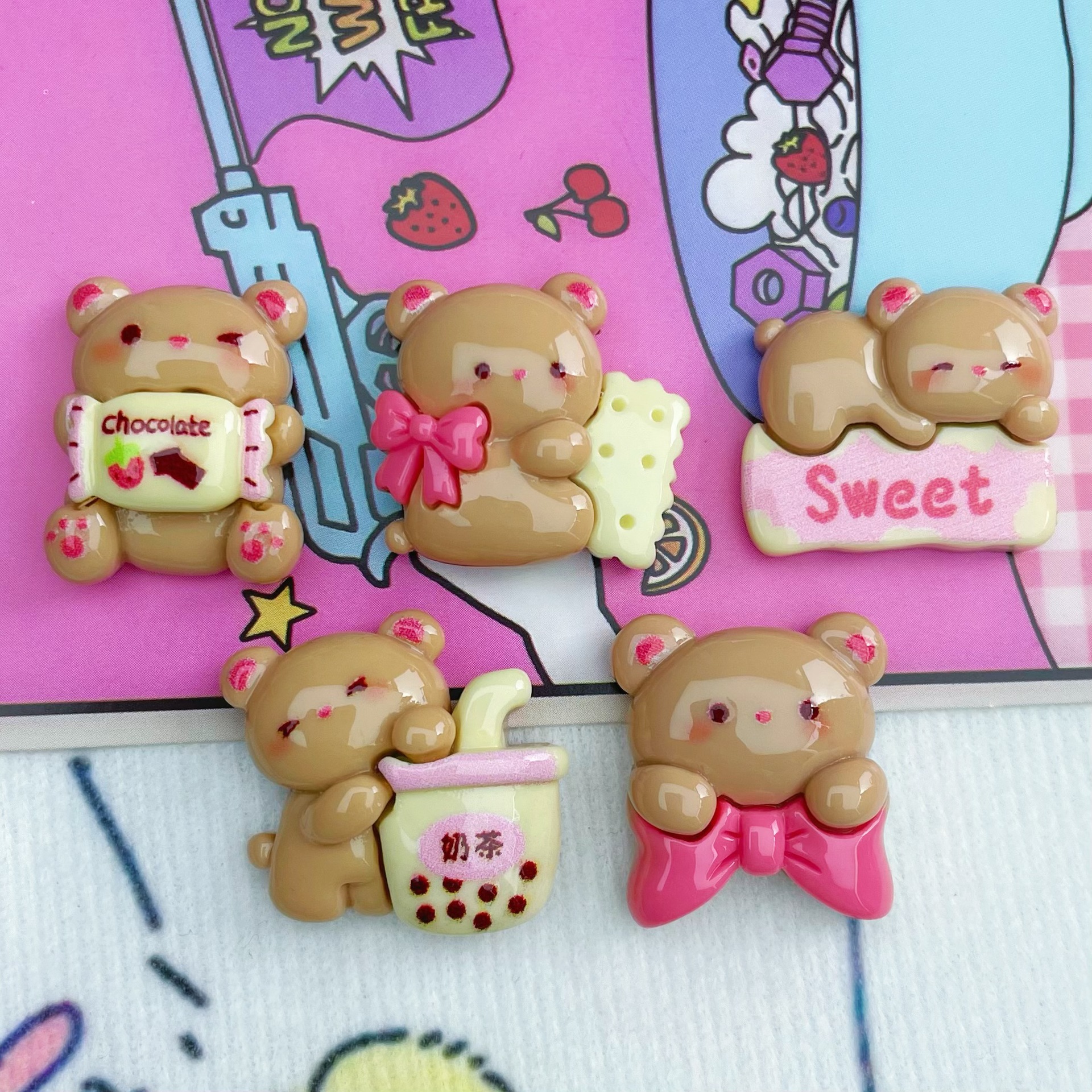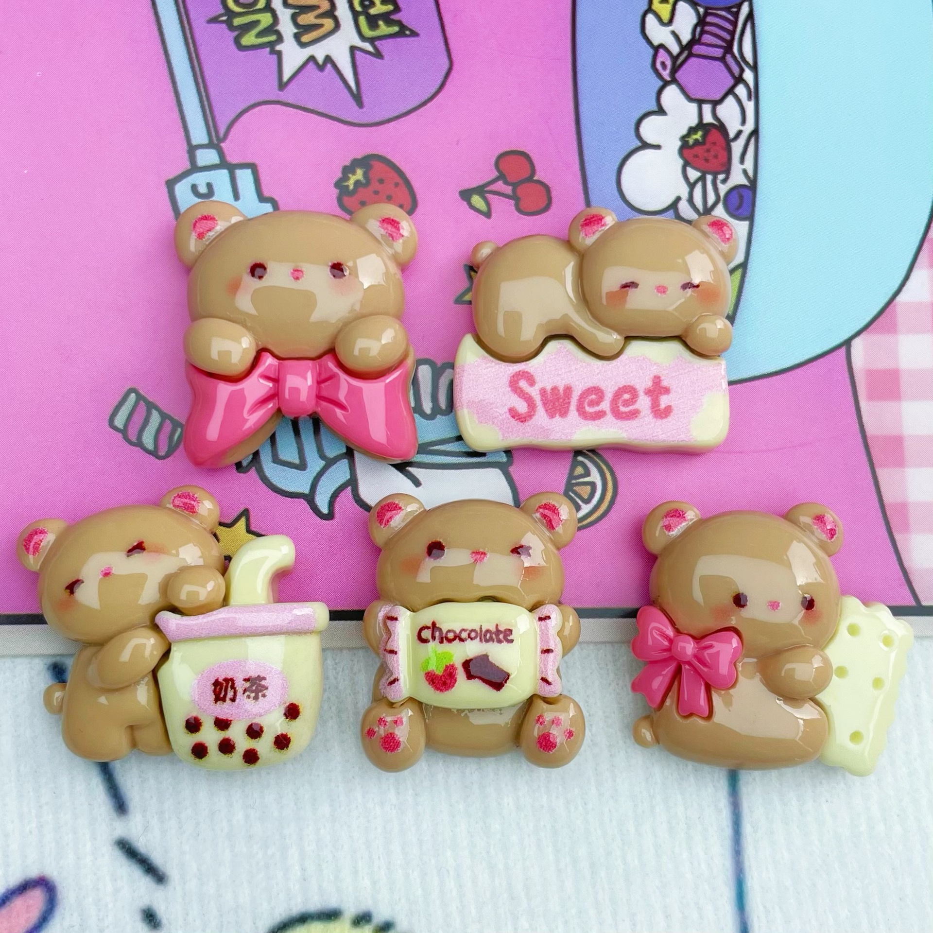 디저트 우유 차 커피 곰 나비 넥타이 수지 액세서리 헤어핀 전화 케이스 문구 크로스 국경 액세서리 소재 도매스토어 가기