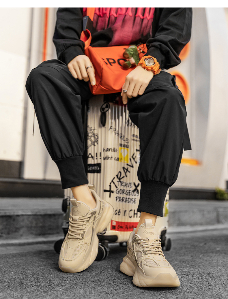 봄 새로운 메쉬 통기성 팝콘 바닥 남성 달리기 운동화 패션 캐주얼 플랫폼 아빠 신발 남성 신발