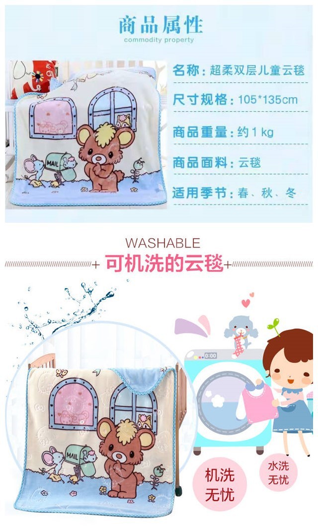 어린이 담요 신생아 아기 담요 이중층 구름 담요 아기 봄과 가을 겨울 낮잠 이불 유치원 학생 이불스토어 가기