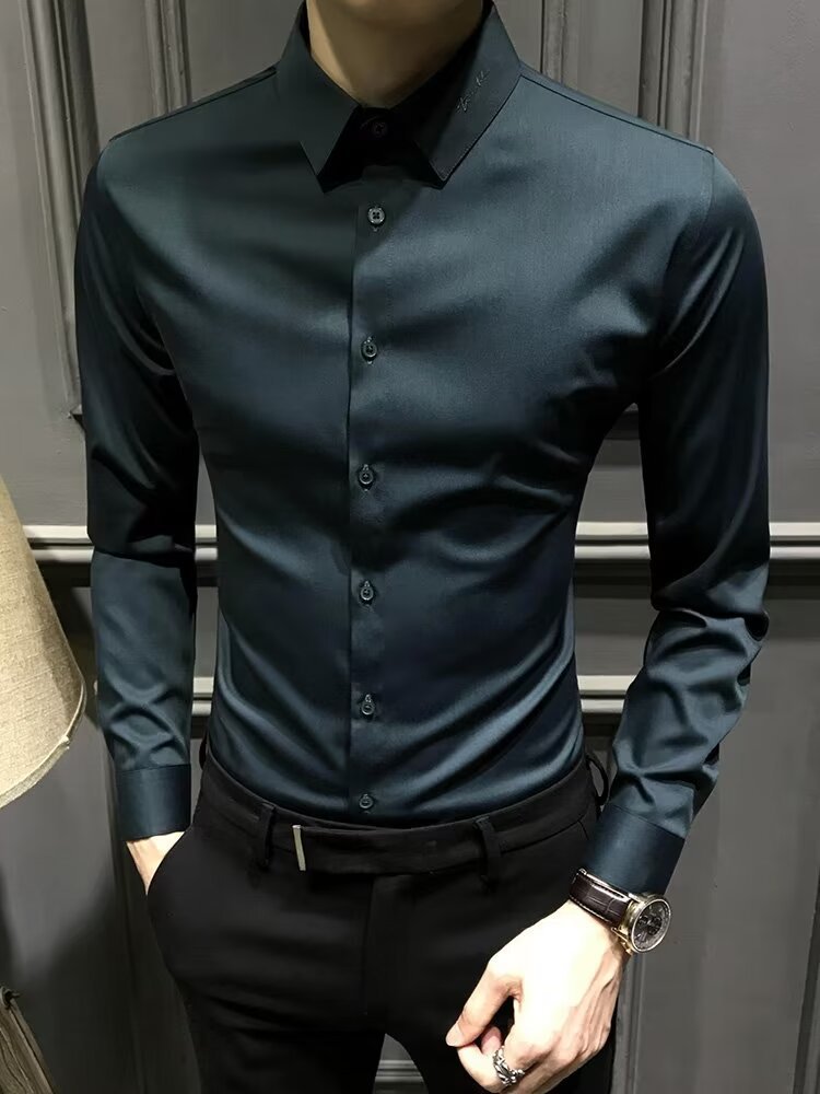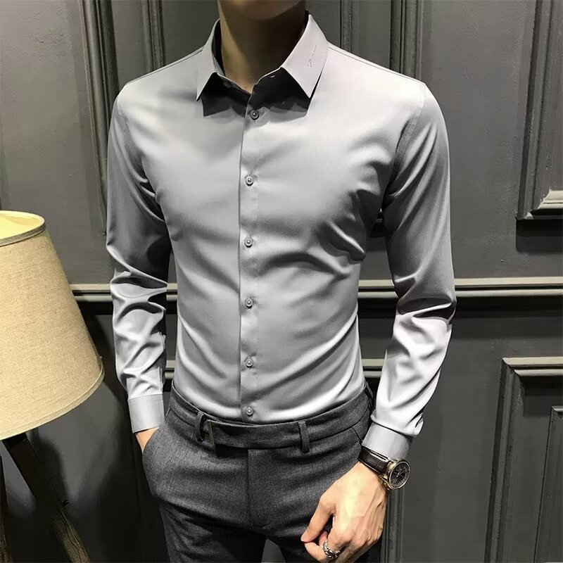 긴 소매 셔츠 남성 2024 봄 새로운 캐주얼 올 매치 라이트 럭셔리 느슨한 단색 셔츠 남성 아우터 웨어 젊고 중년