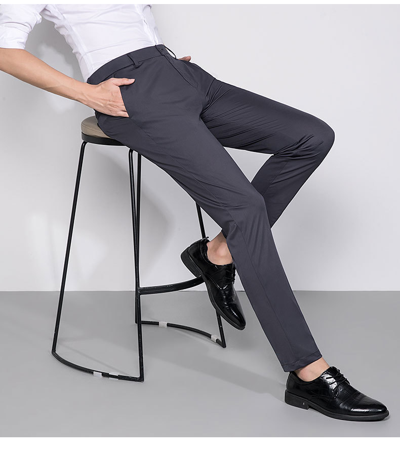 남성용 아이스 실크 캐주얼 바지 여름 얇은 패션 비즈니스 세트 바지 남성용 스트레치 바지 남성용 단색 바지