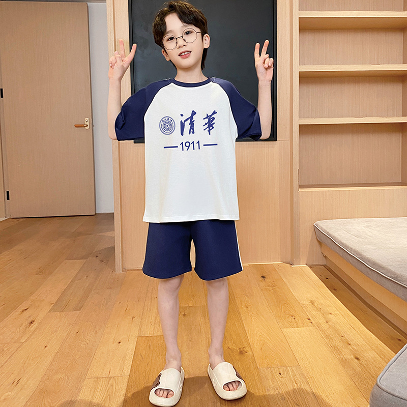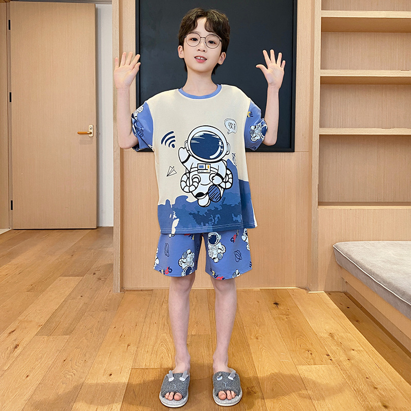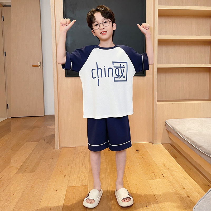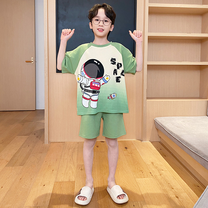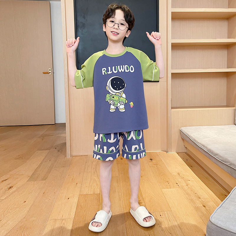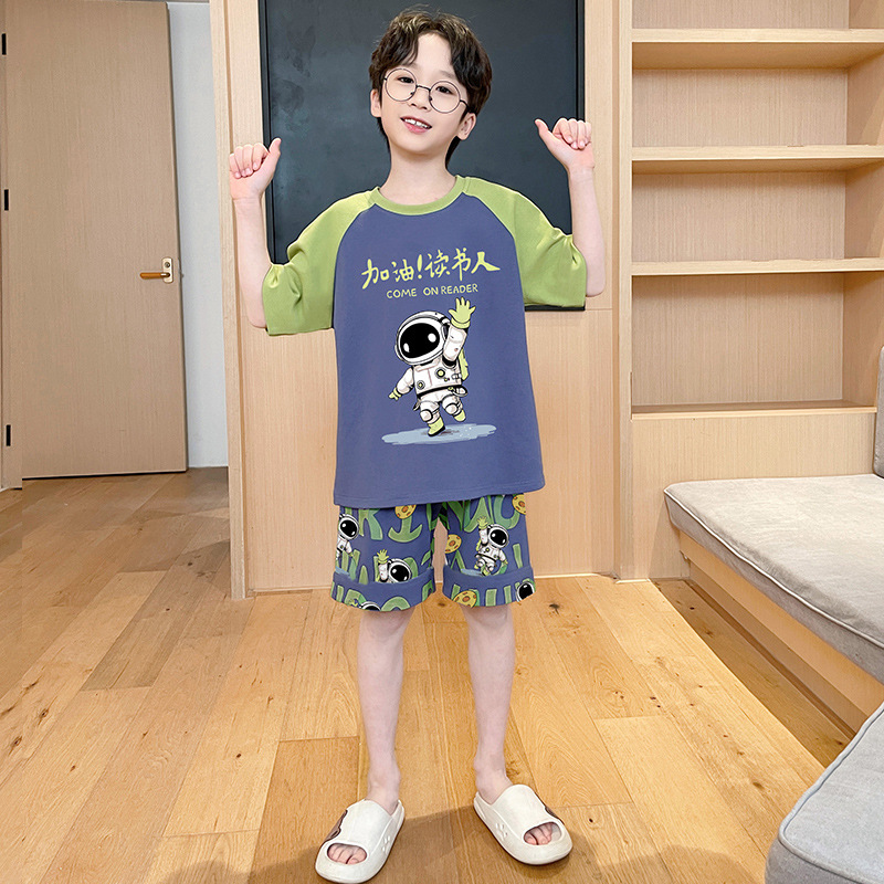 남아용 잠옷 2025년 신상 순면 반팔 반바지 얇은 소재 남아용 분리형 세트 봄 여름용 아동 홈웨어