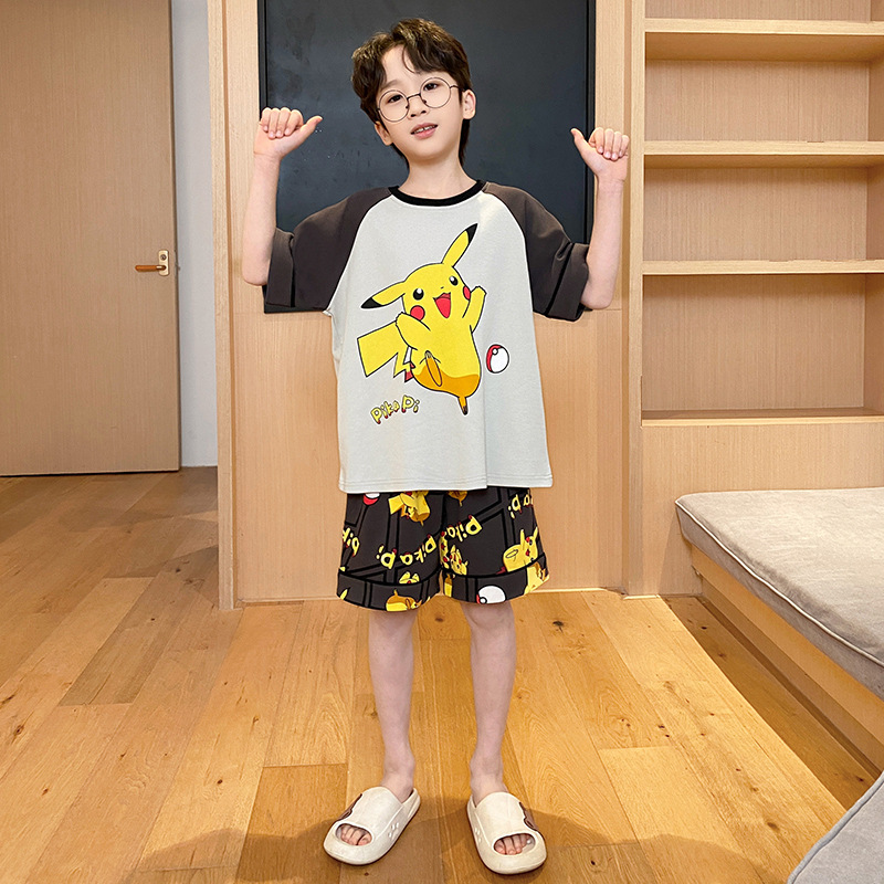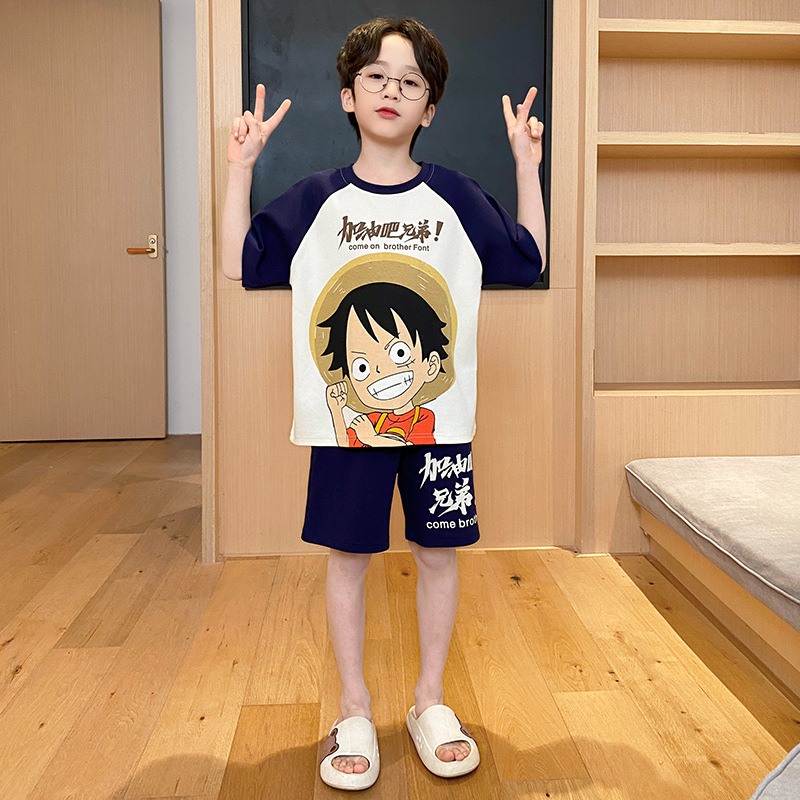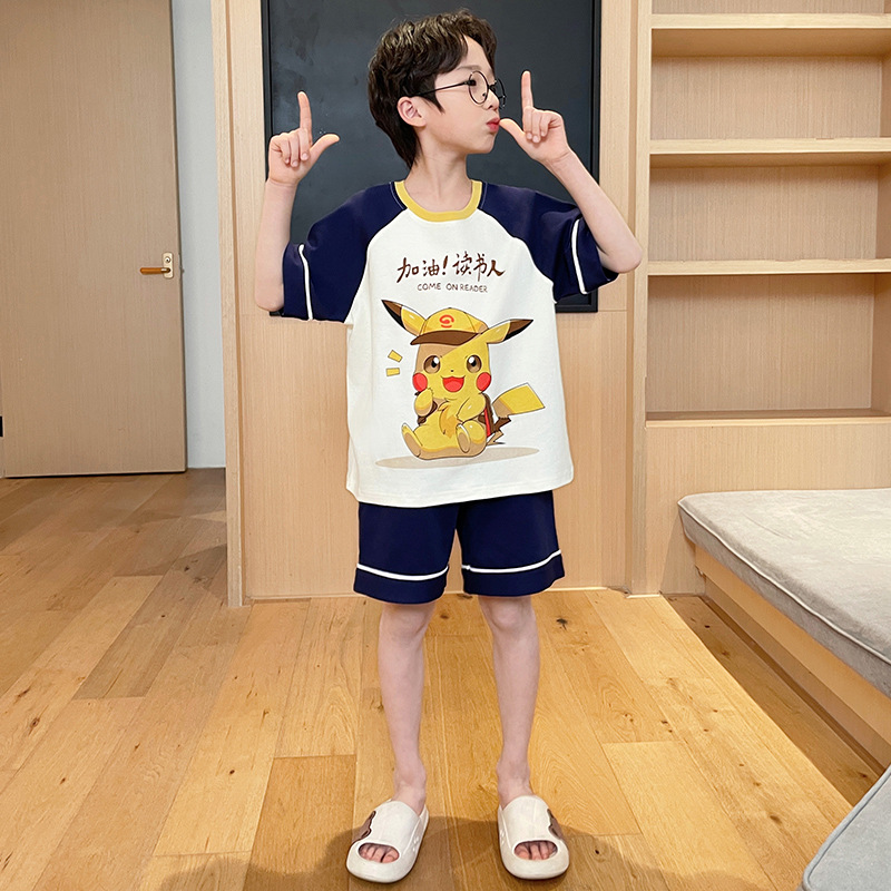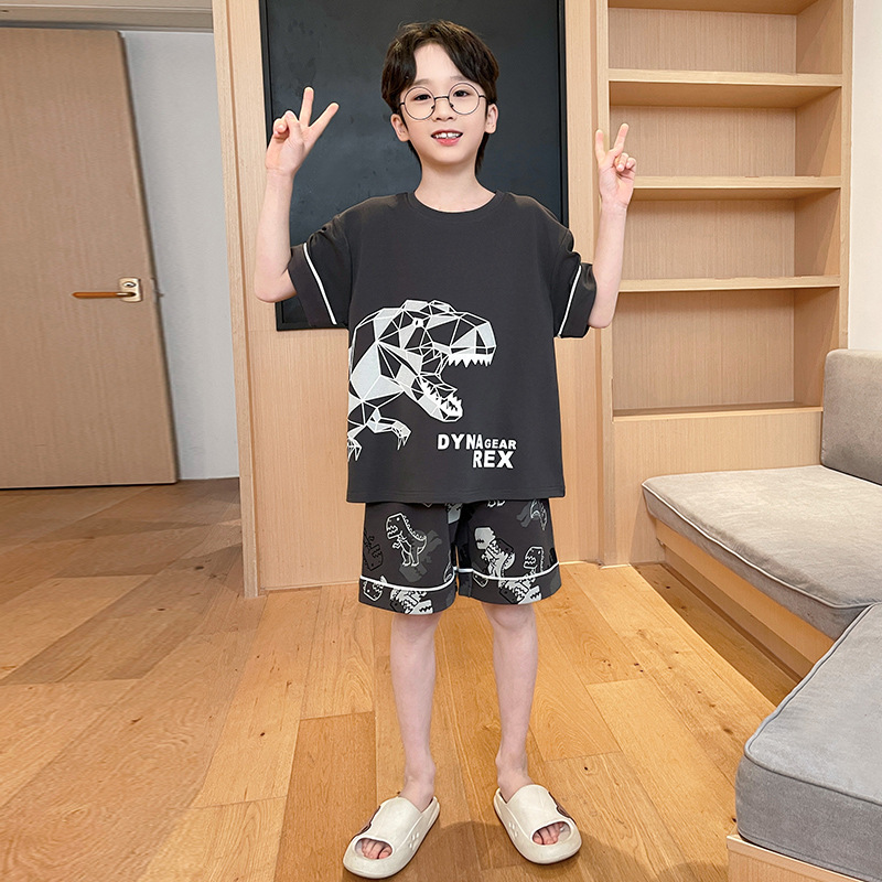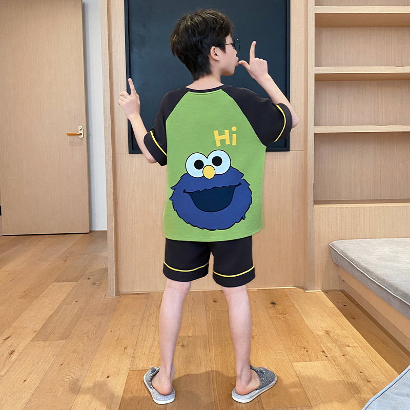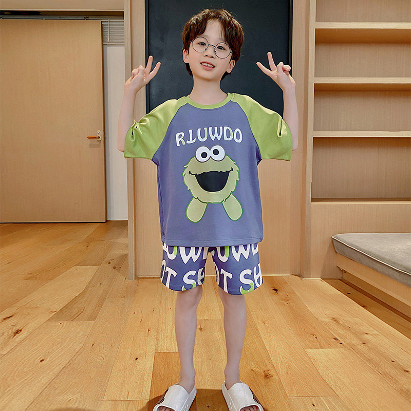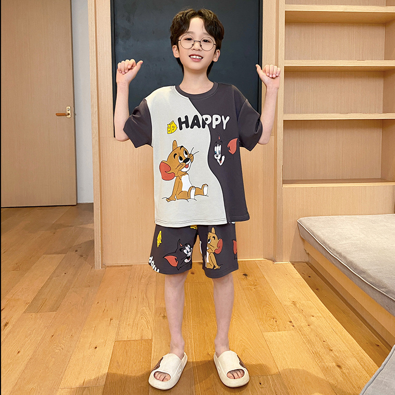 남아용 잠옷 2025년 신상 순면 반팔 반바지 얇은 소재 남아용 분리형 세트 봄 여름용 아동 홈웨어