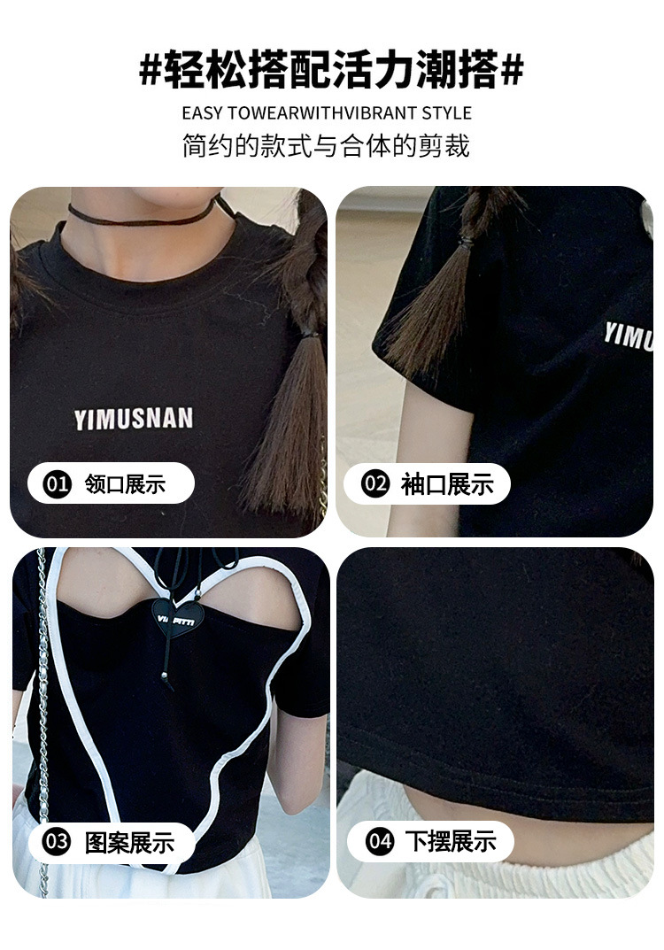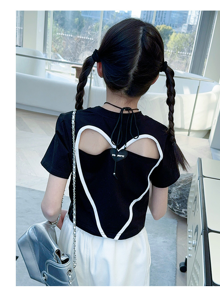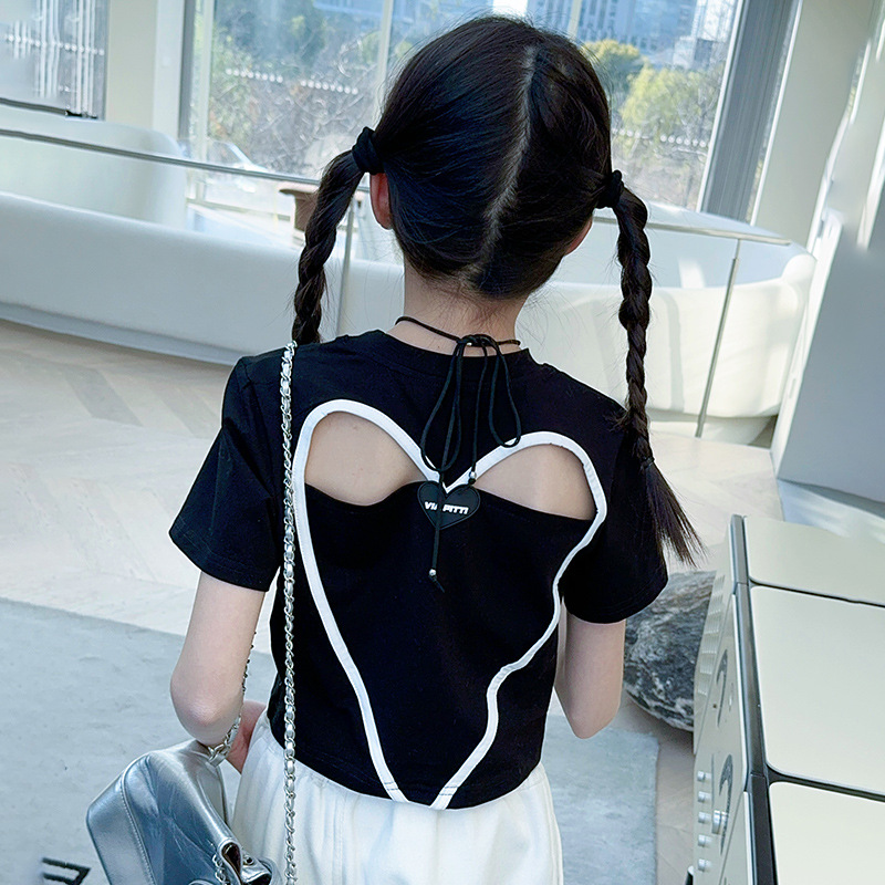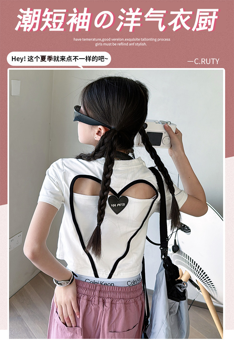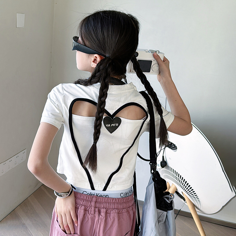 2024 새로운 속이 빈 사랑 반팔 티셔츠 소녀 패션 올 매치 서양식 탑 여름 유행 작은 셔츠 패션스토어 가기