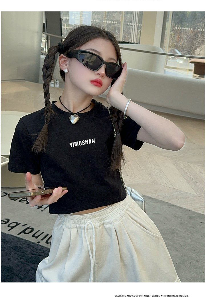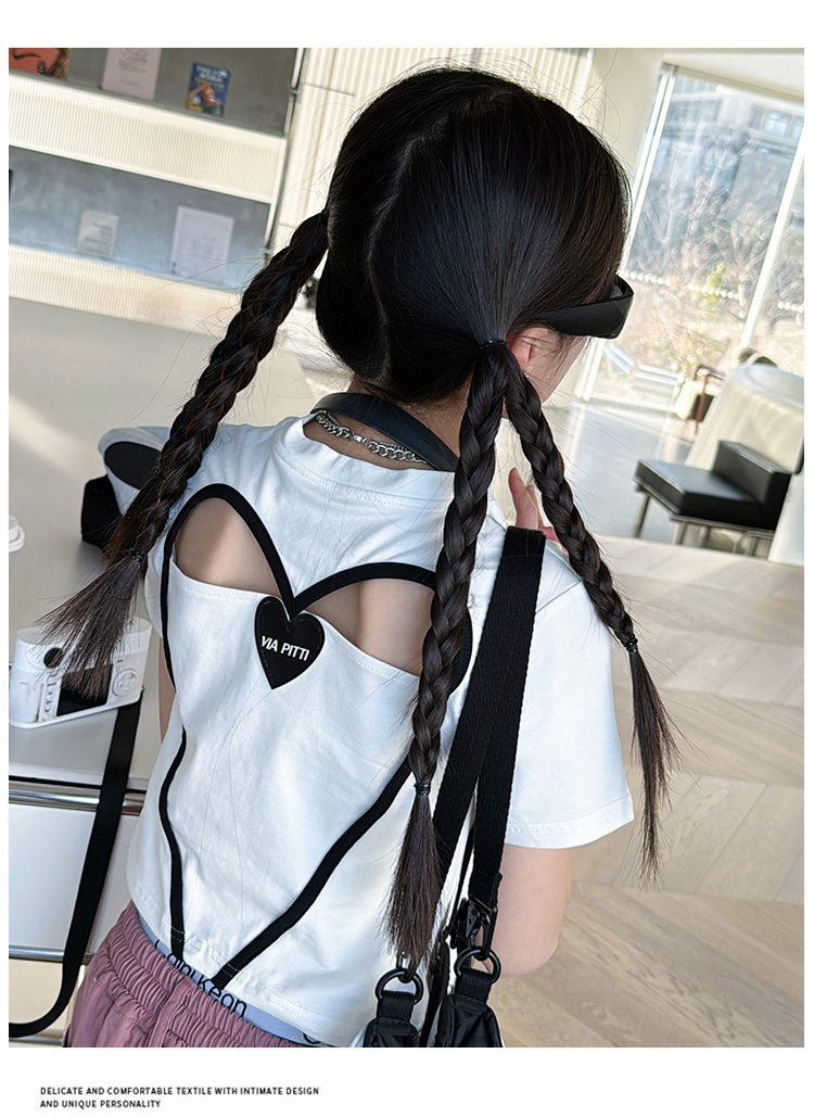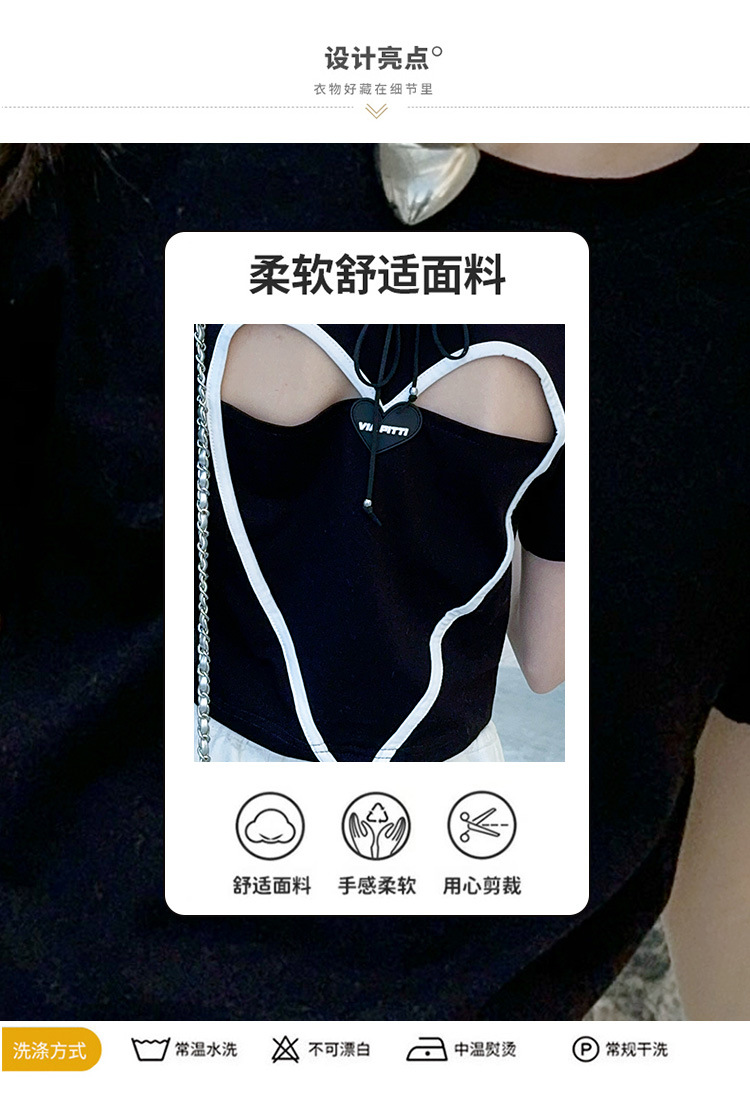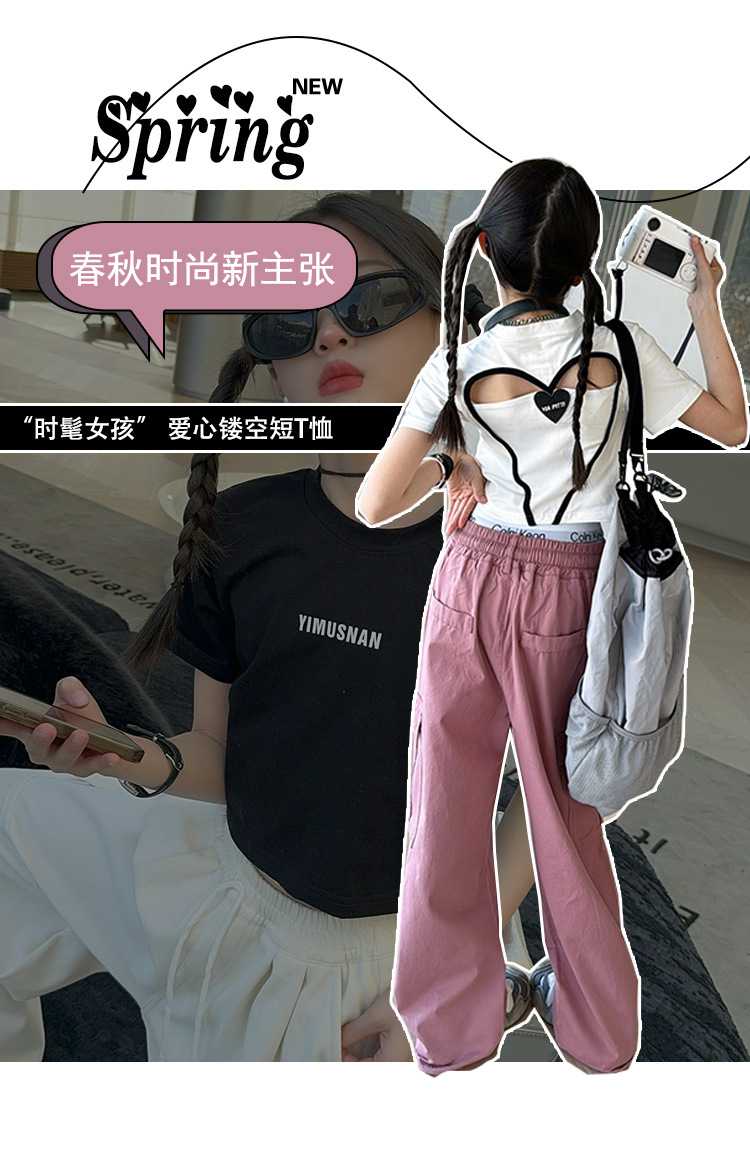 2024 새로운 속이 빈 사랑 반팔 티셔츠 소녀 패션 올 매치 서양식 탑 여름 유행 작은 셔츠 패션스토어 가기